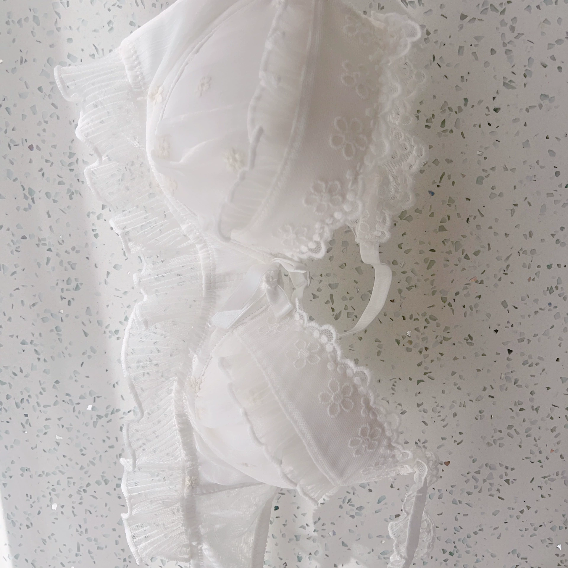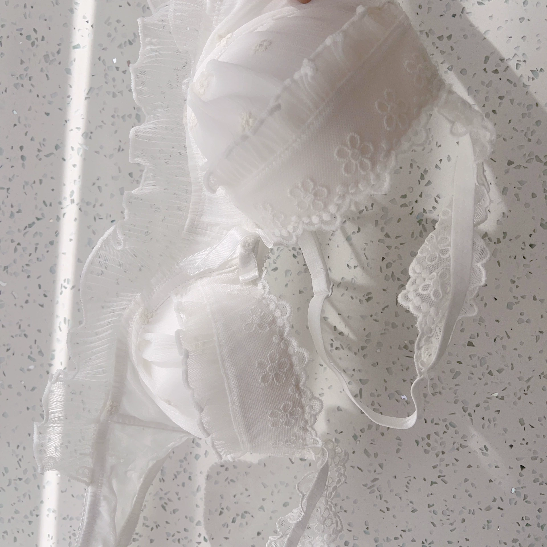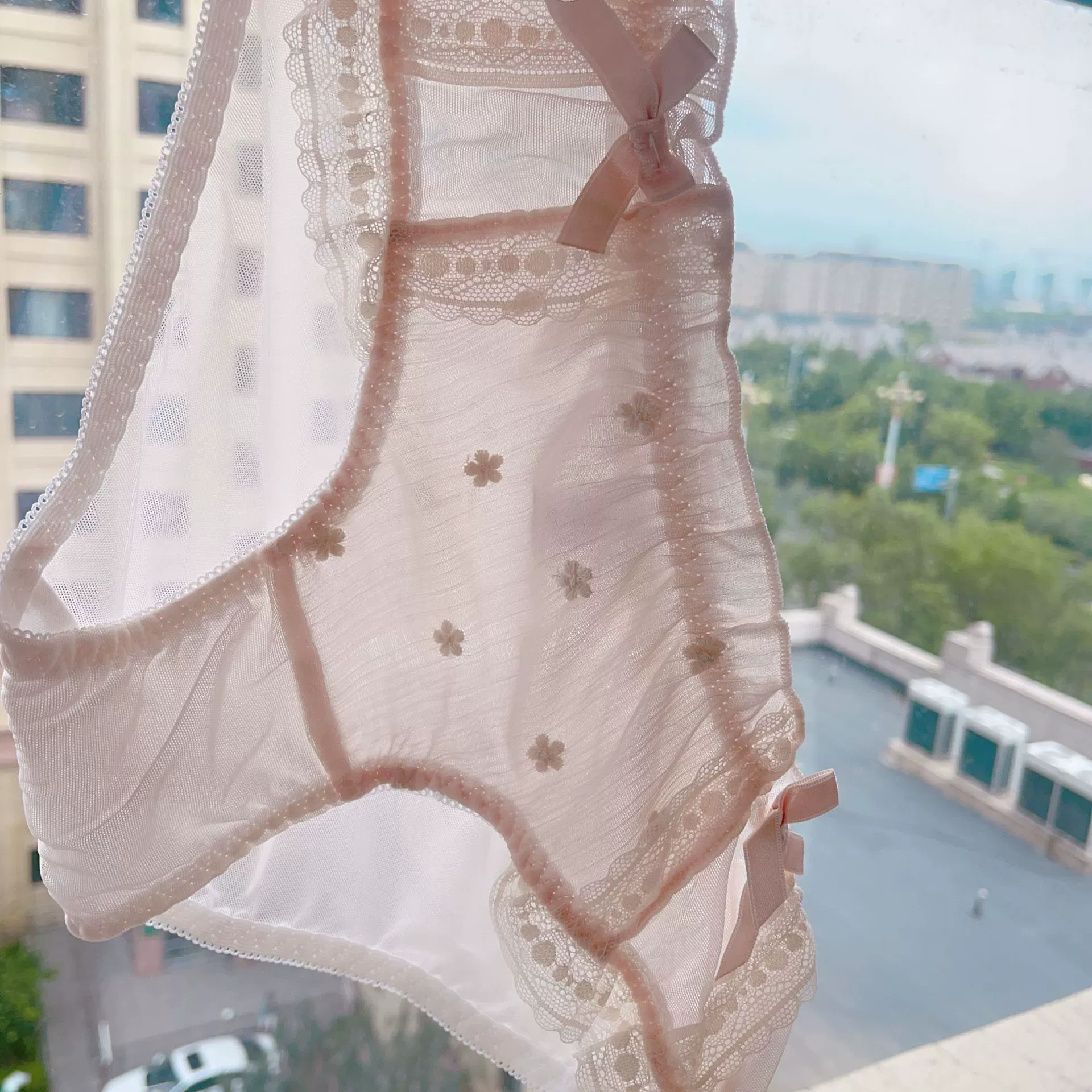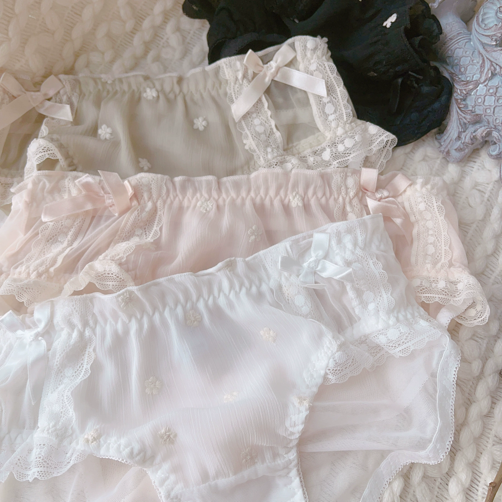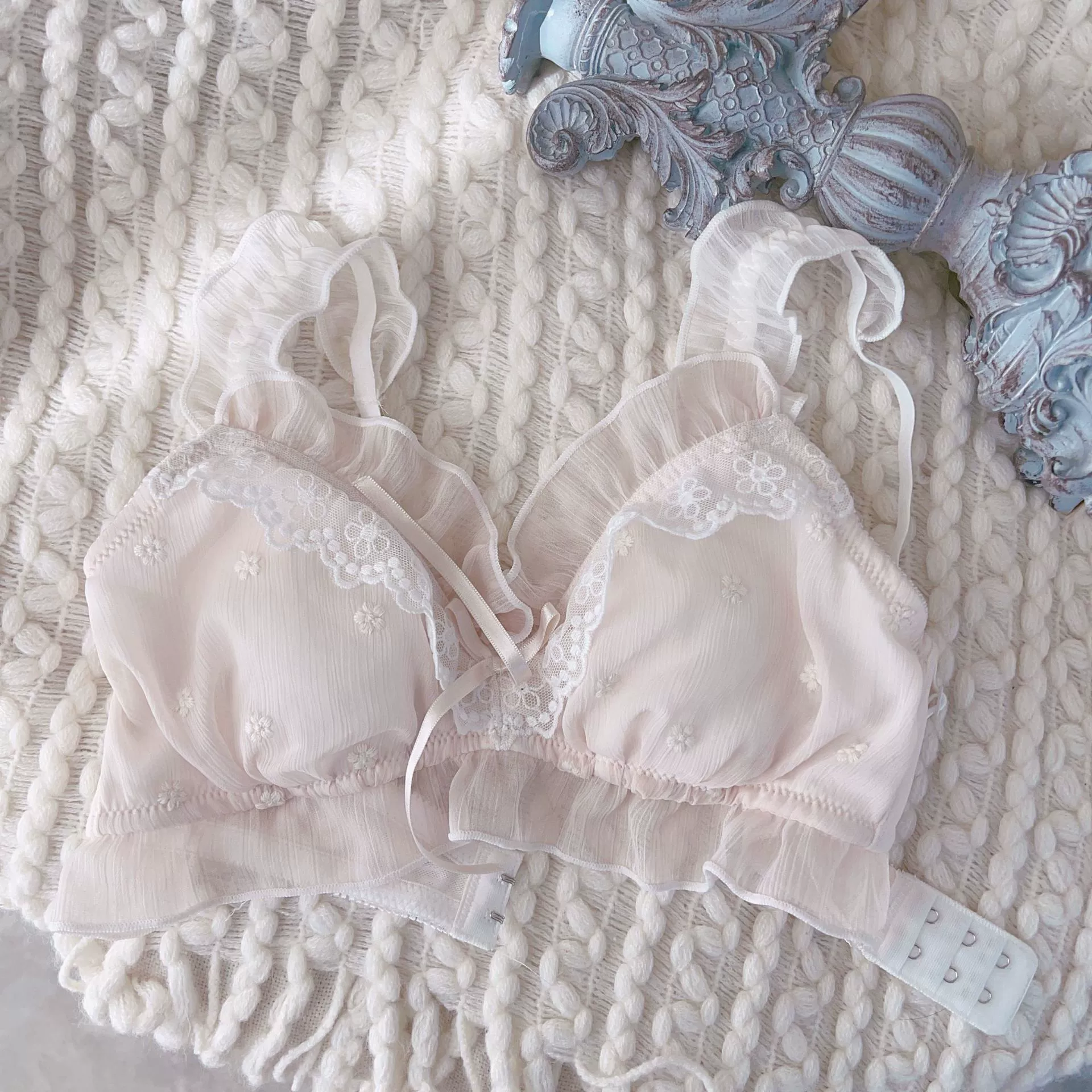 Japanese new bra set breathable mesh lace rabbit ear cup gather fungus edge underwear sweet and cute girl lingerie