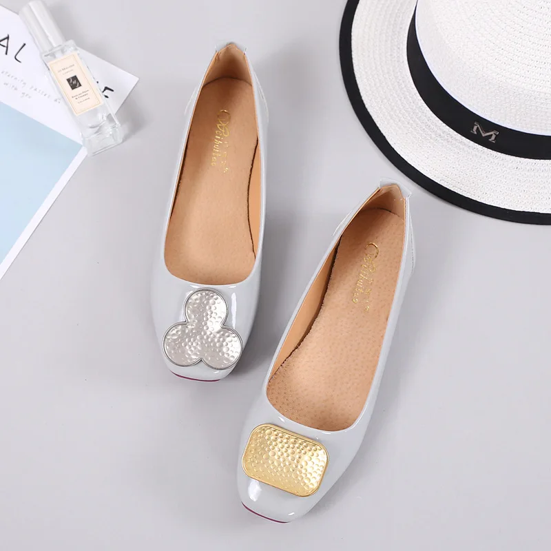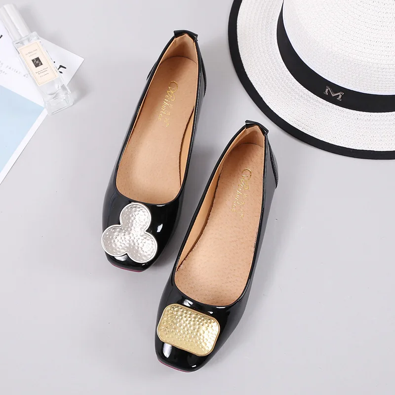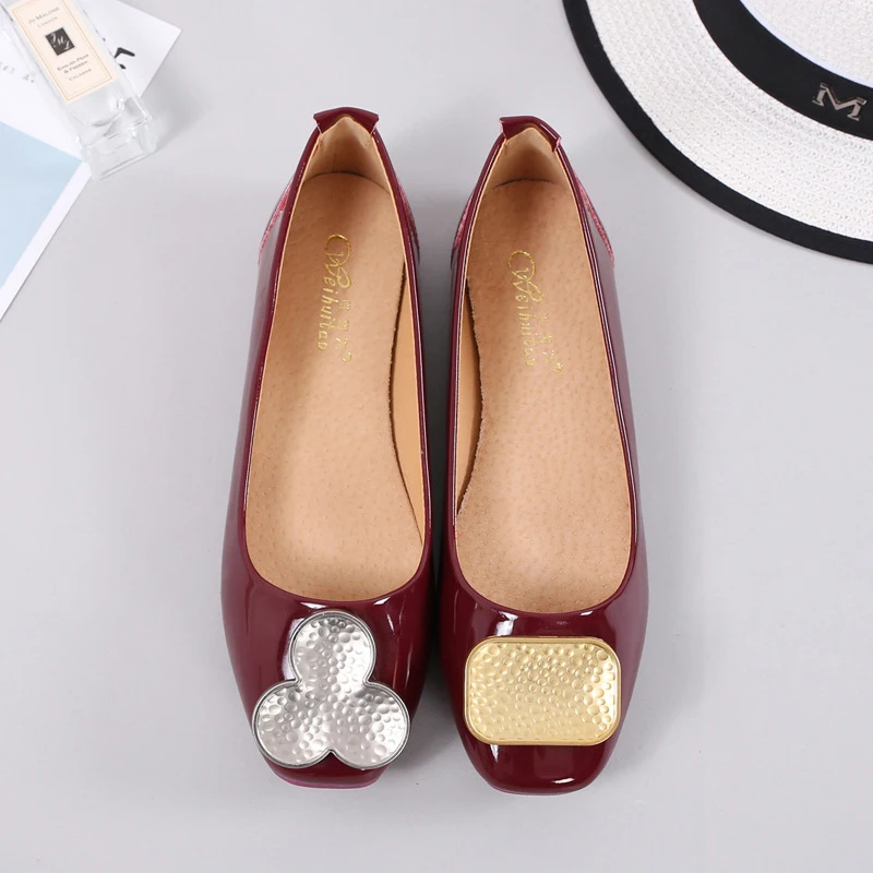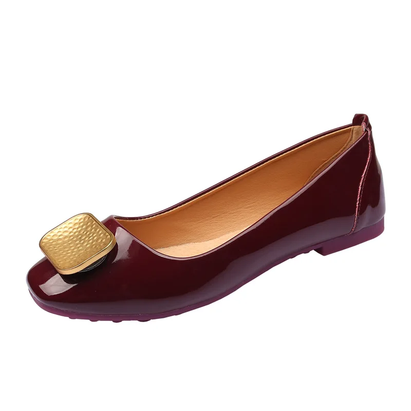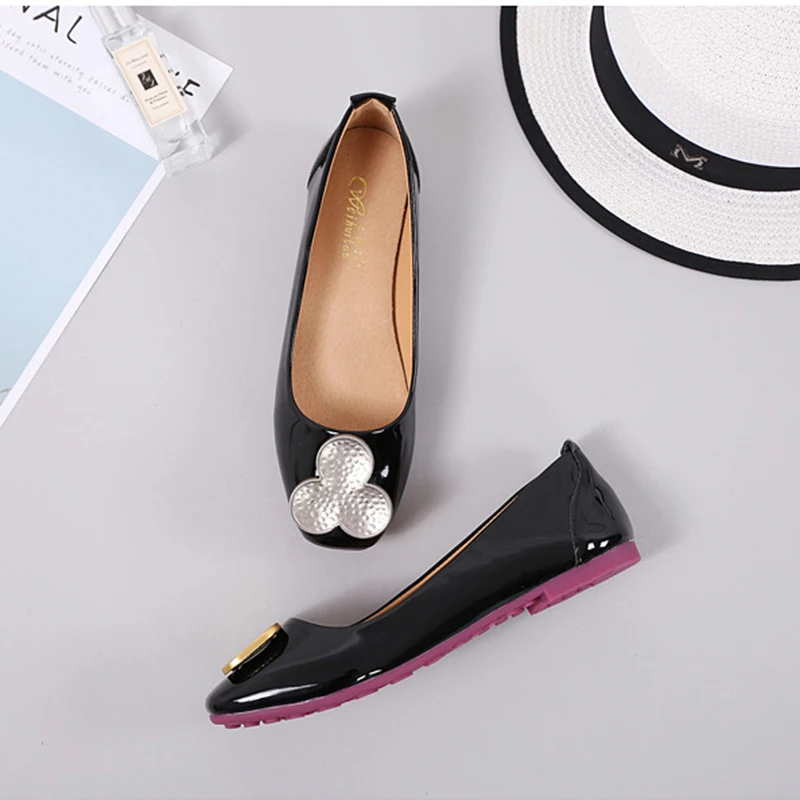 Casual Boat Shoes Woman Soft Patent Leather Ballet Flats