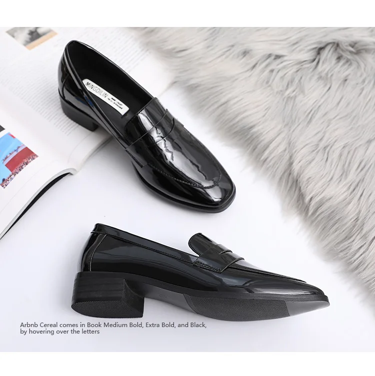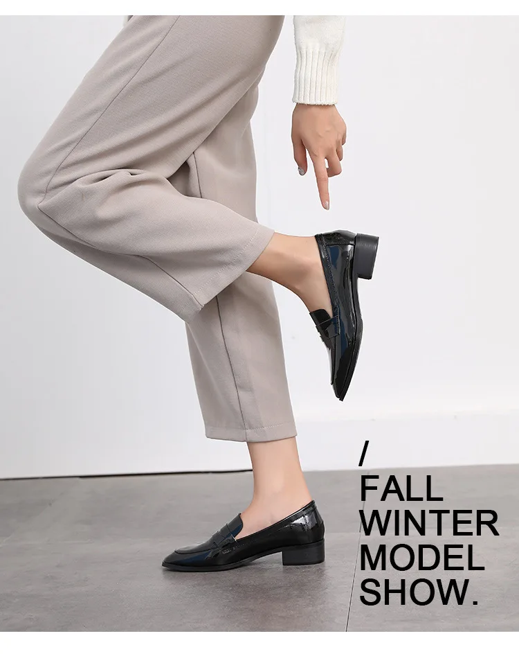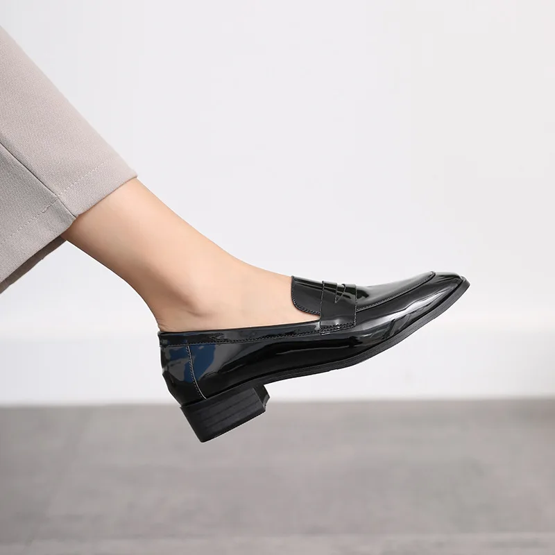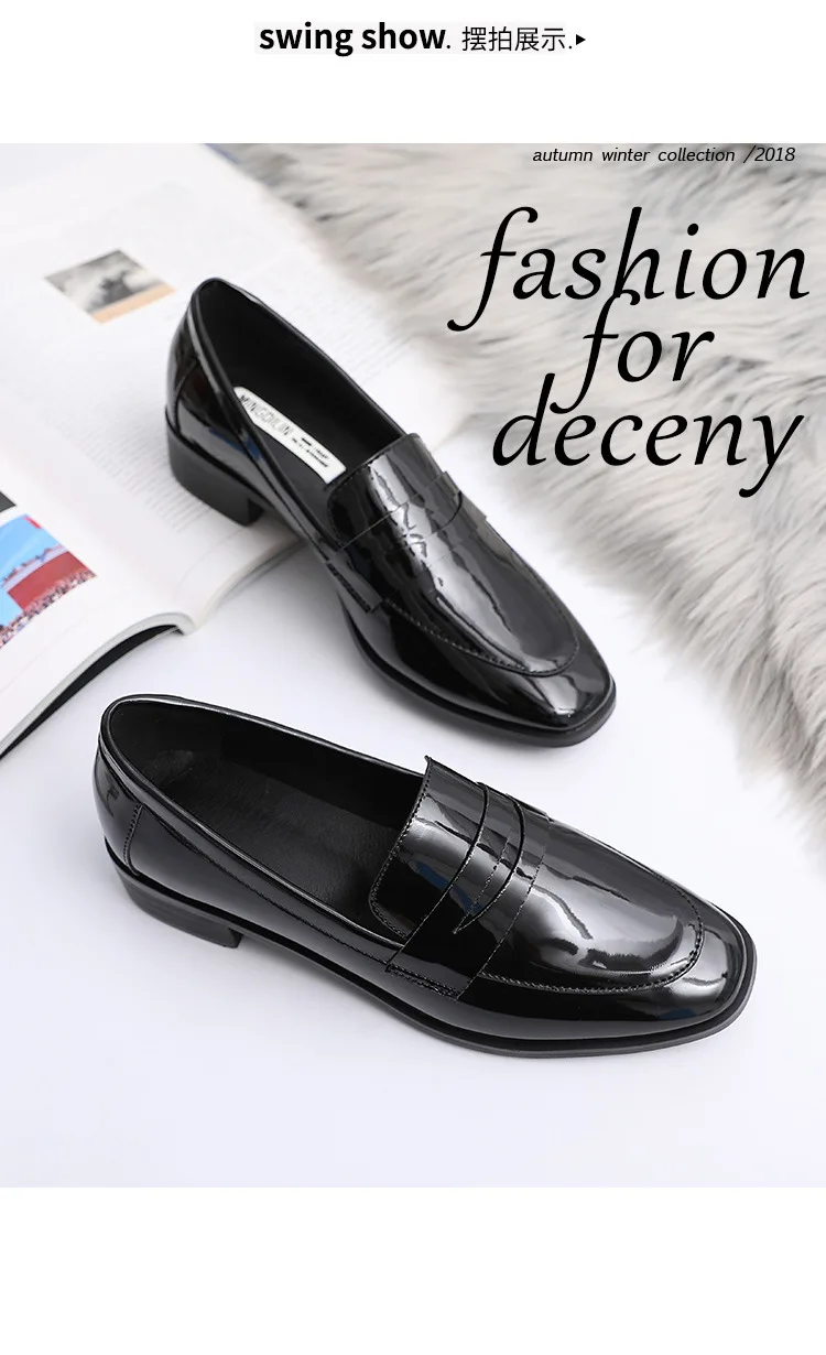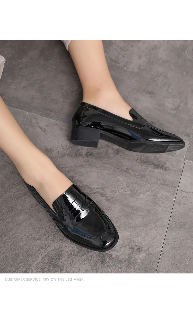 Japanned Leather Oxford Shoes Woman Brand Espadrilles Low Thick Heel Moccasins British Square Toe Loafers Women Flats Derby Shoe