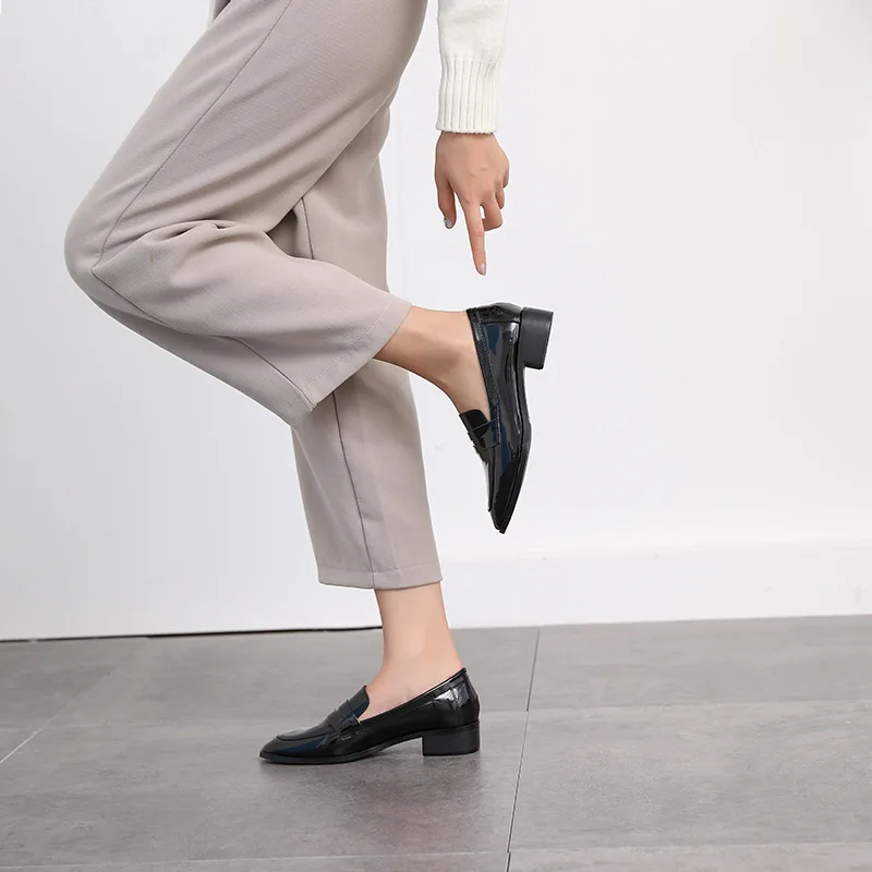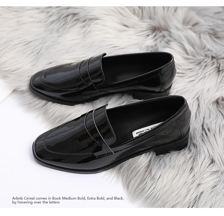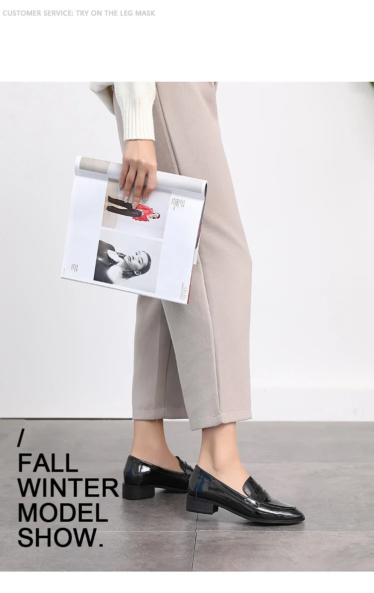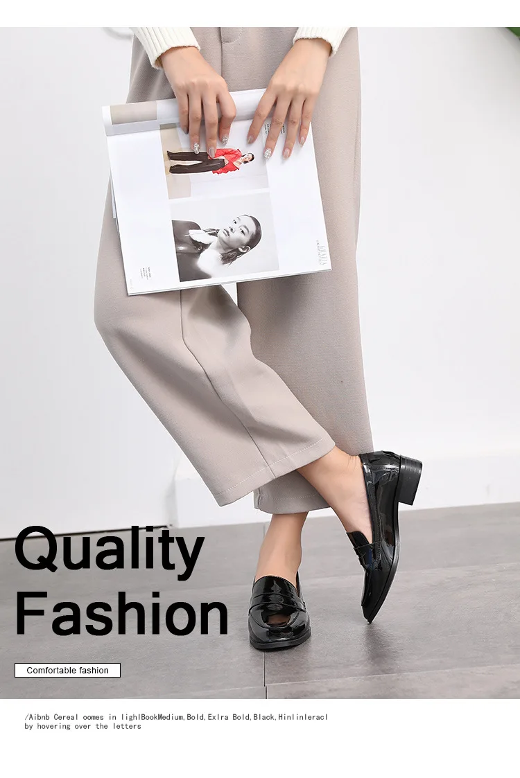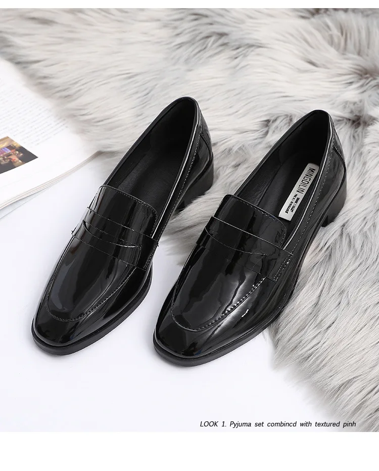 Japanned Leather Oxford Shoes Woman Brand Espadrilles Low Thick Heel Moccasins British Square Toe Loafers Women Flats Derby Shoe