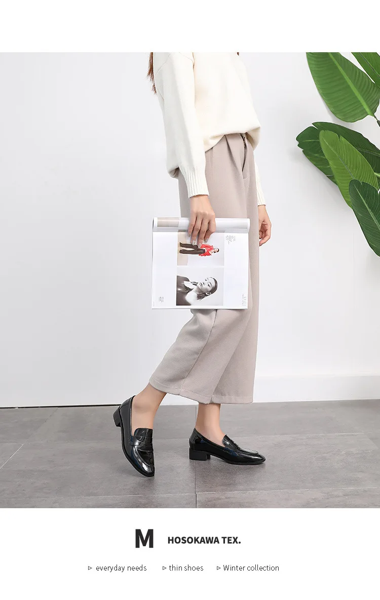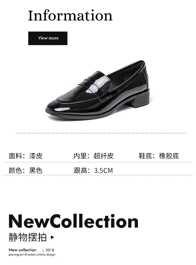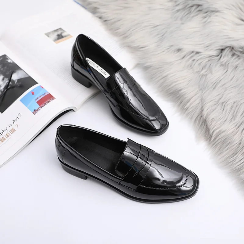 2019 Japanned Leather Oxford Shoes Woman Brand Espadrilles Low Thick Heels Moccasins British Square Toe Loafers Women Crepers