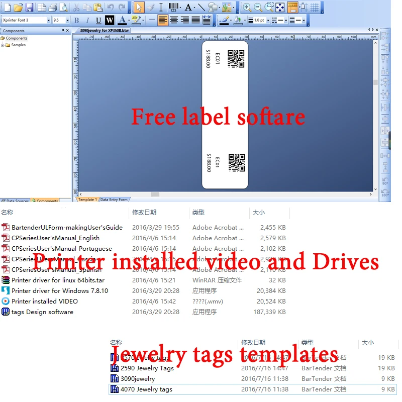 After you make the payment, we will send the drivers, installed video, Jewelry tags label templates to you,