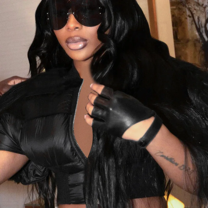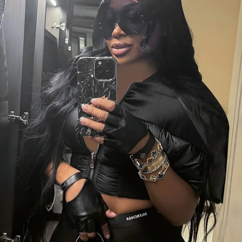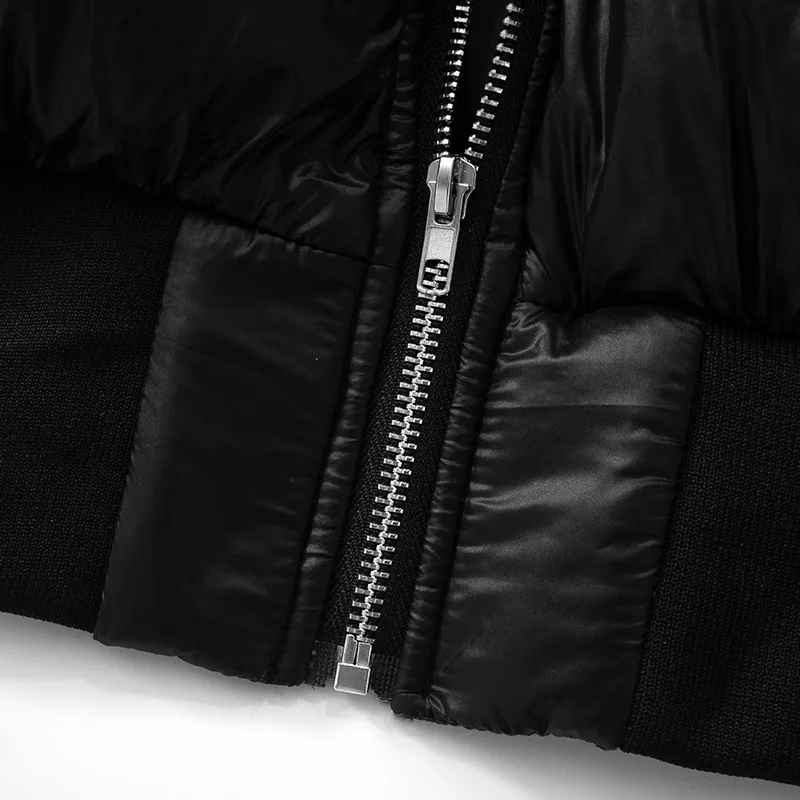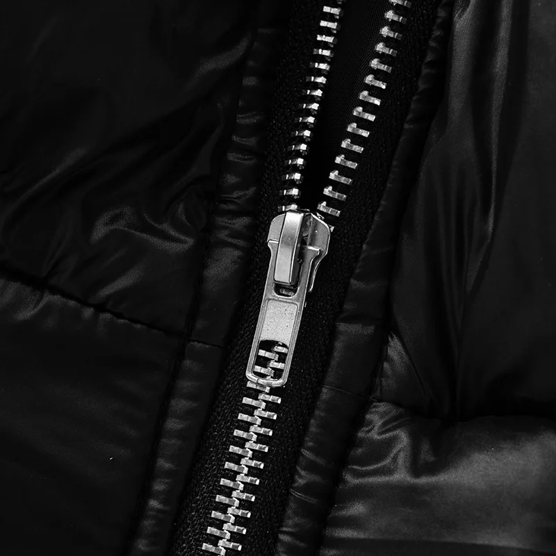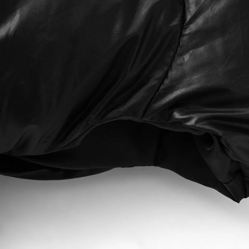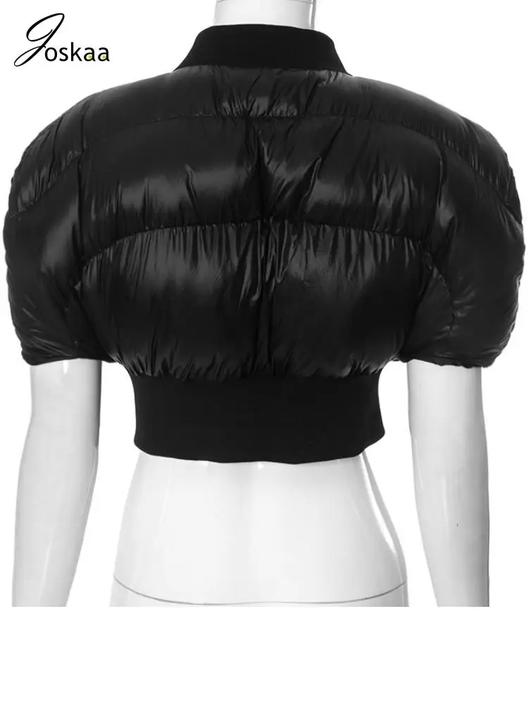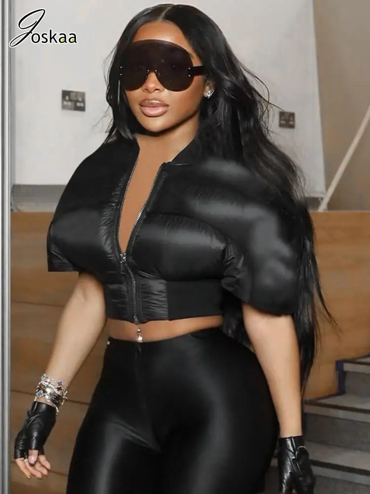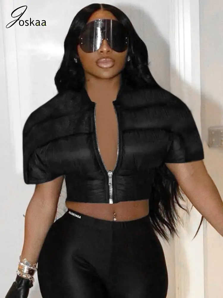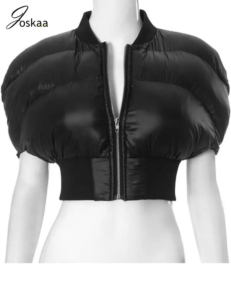 Joskaa Unique Black Parkas Women Hipster O-Neck Irregular Short Sleeve Zip-Up Padded Jacket Winter Ins Outerwear Streetwear