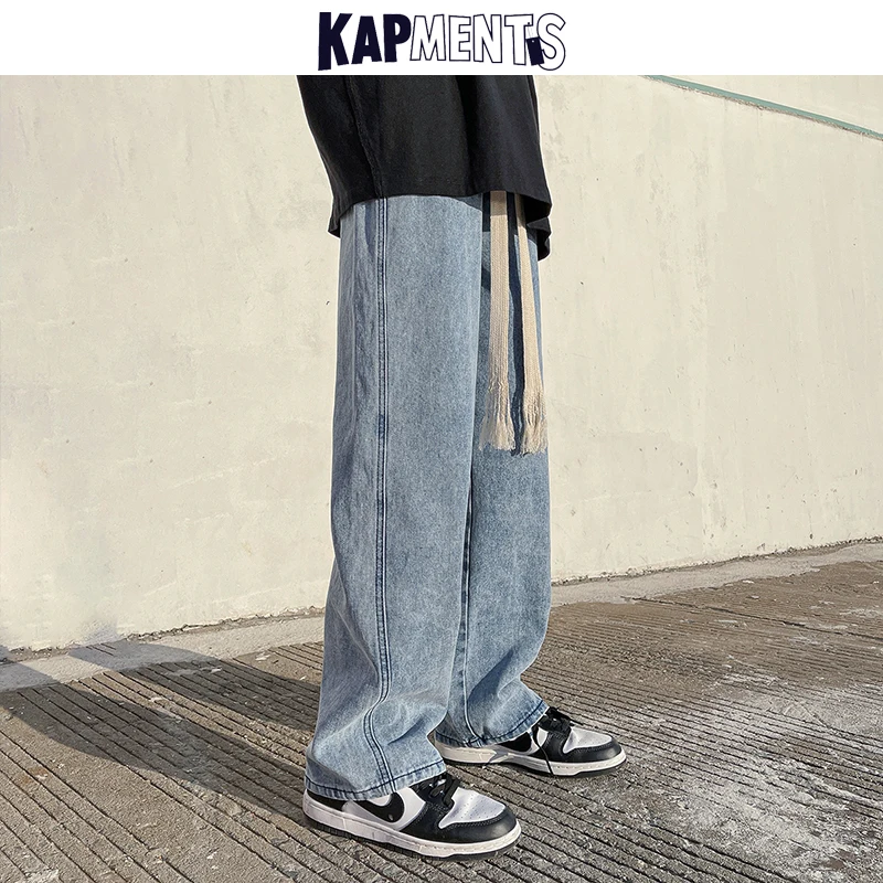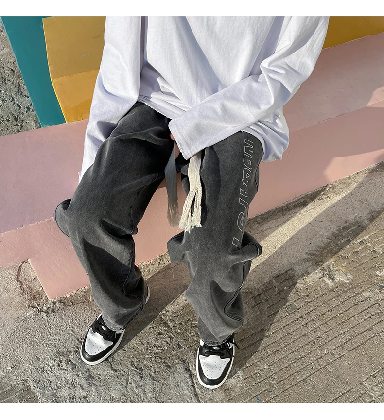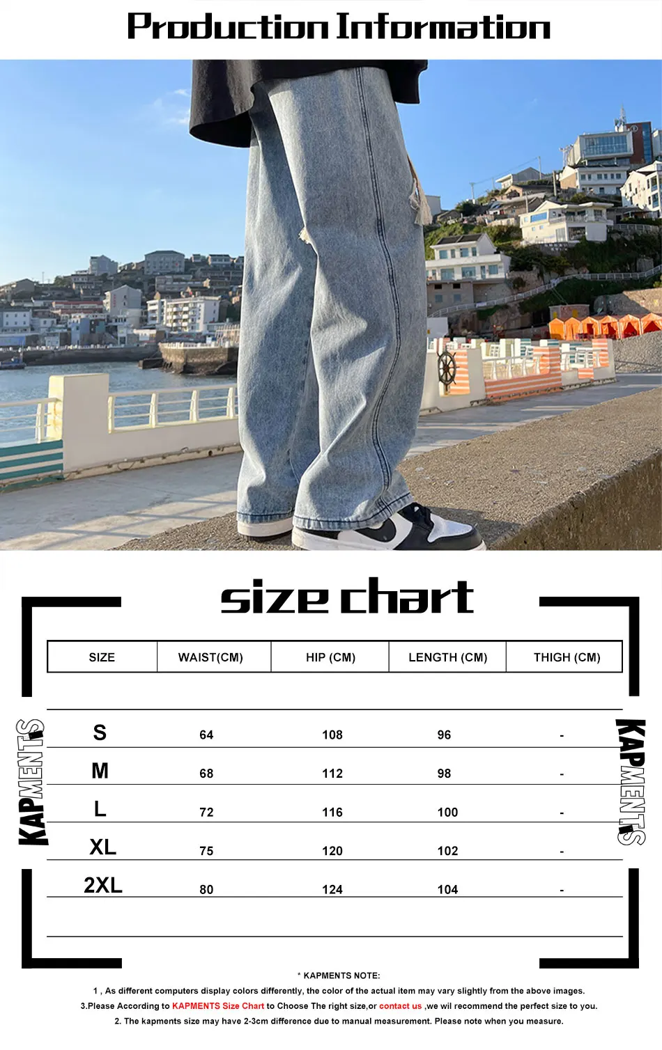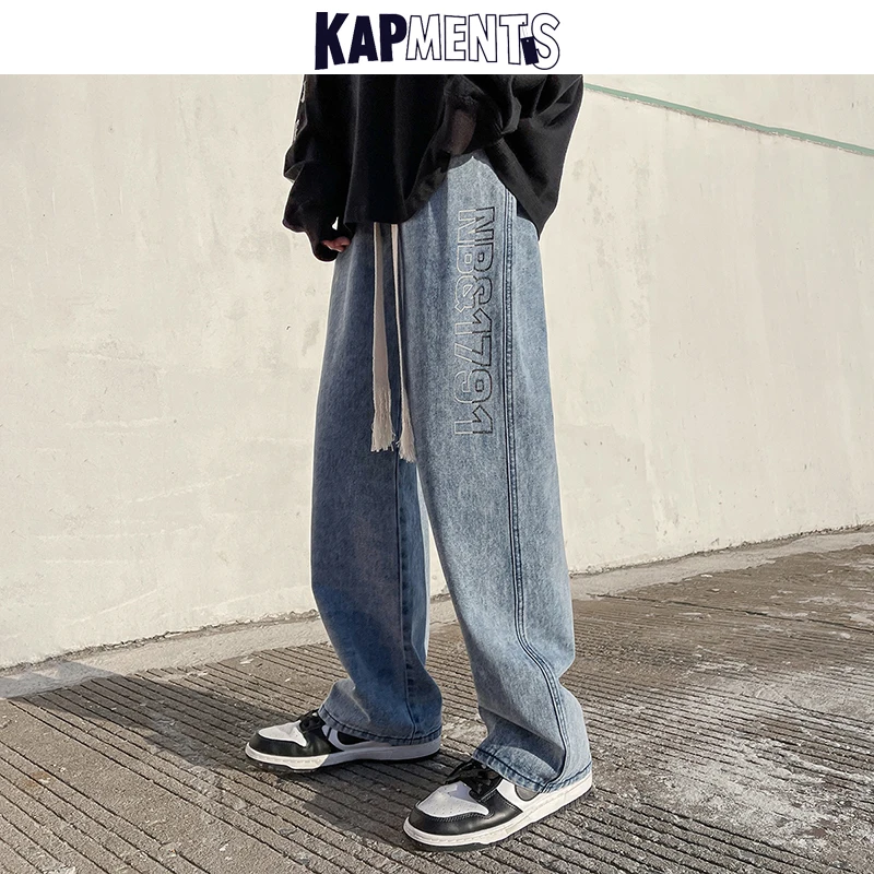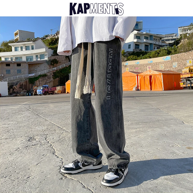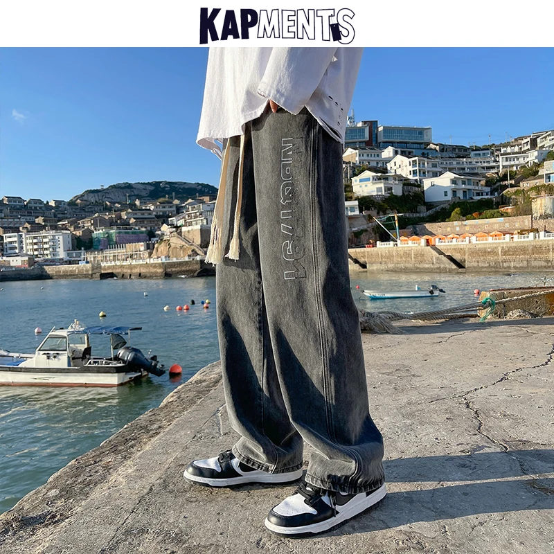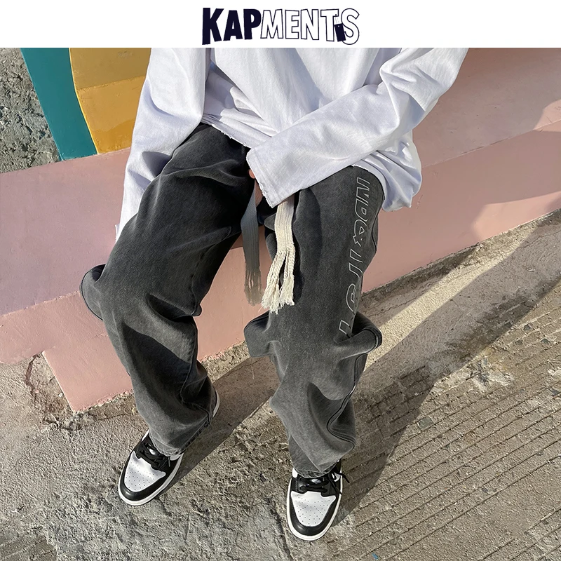 KAPMENTS Men Letter Baggy Streetwear Jeans Pants 2023 Mens Black Straight Graphic Denim Trousers Male Wide Leg Joggers Clothing