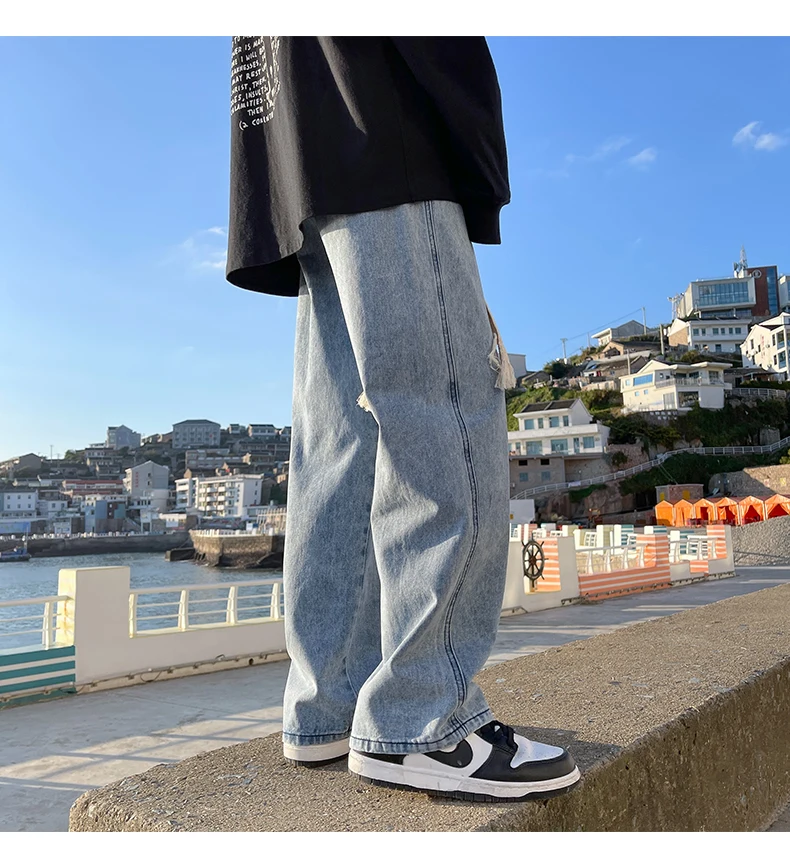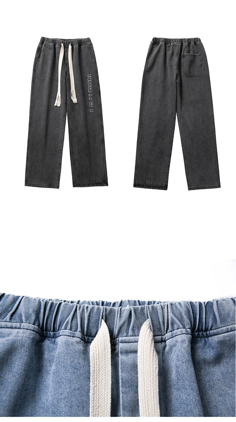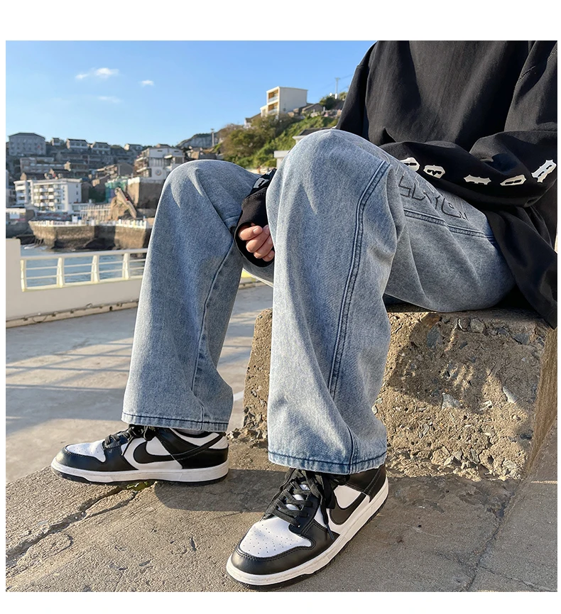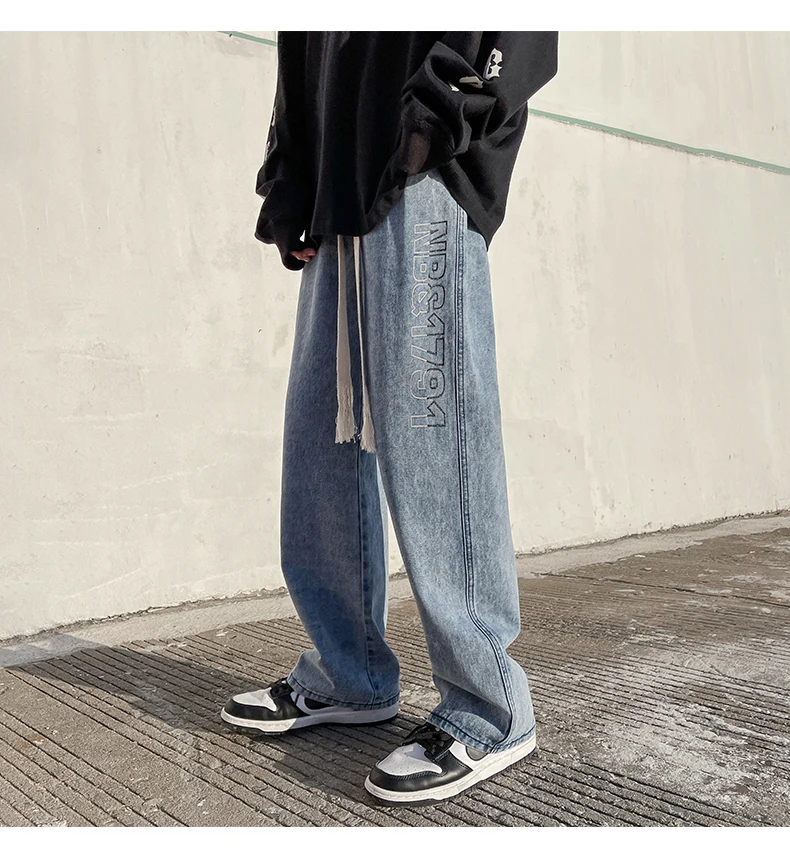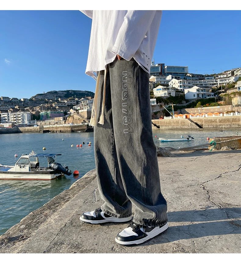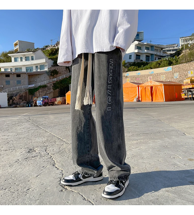 KAPMENTS Men Letter Baggy Streetwear Jeans Pants 2023 Mens Black Straight Graphic Denim Trousers Male Wide Leg Joggers Clothing