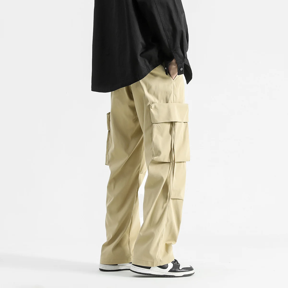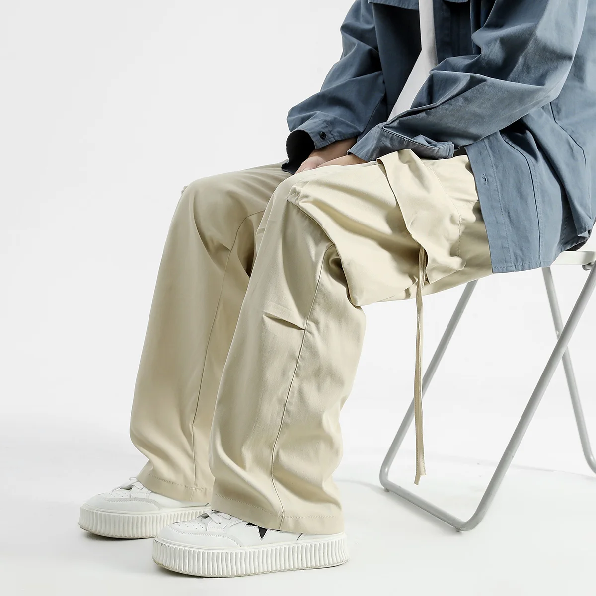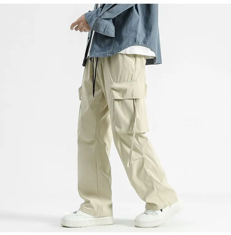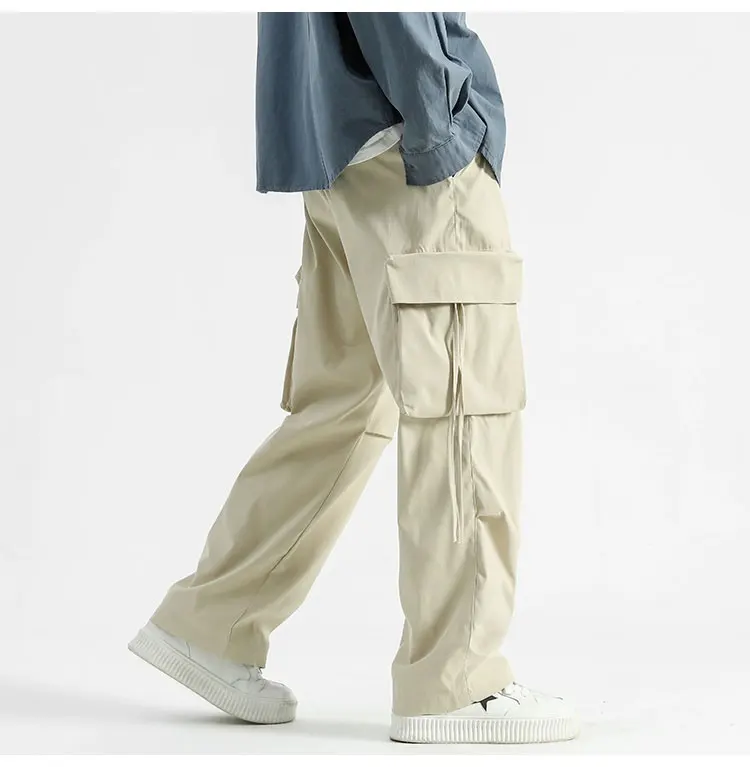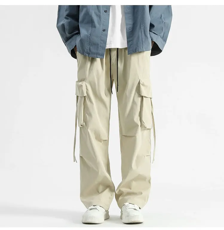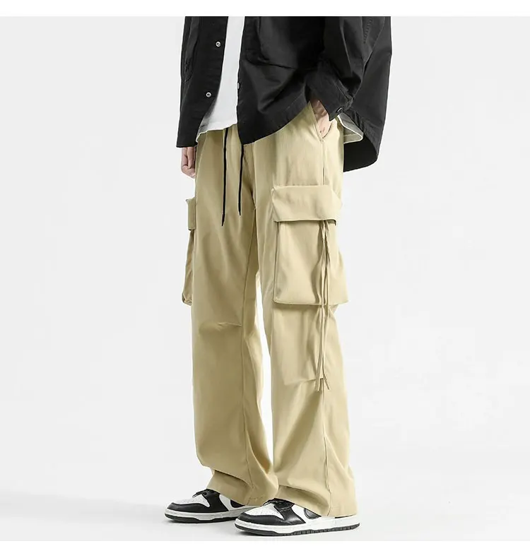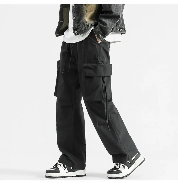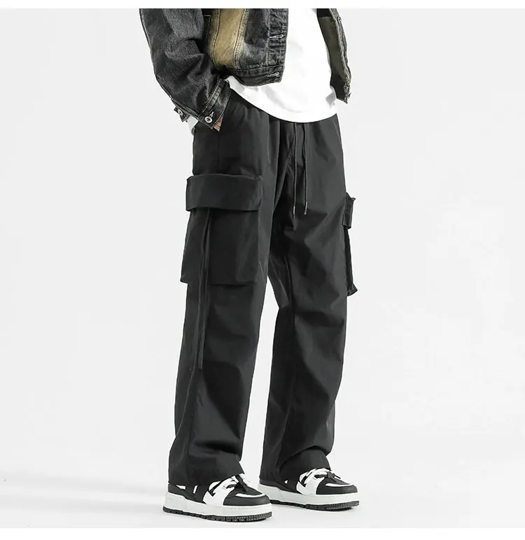 KAPMENTS Tracksuit Black Korean Fashion Tactical Pants Y2k Baggy Ribbons Cargo Pants Men Casual Pockets Stacked Joggers Pants