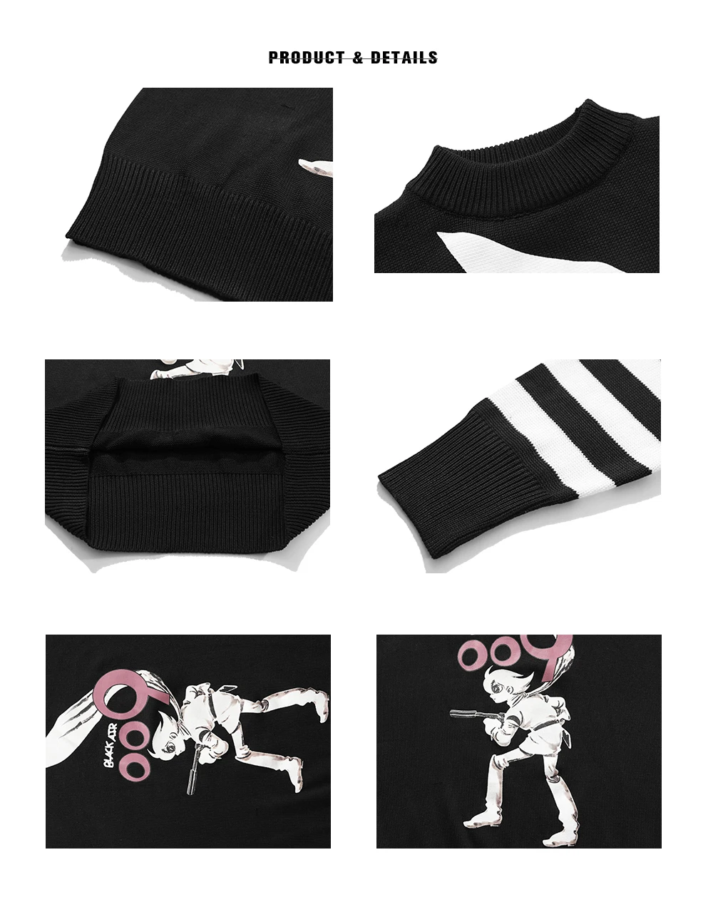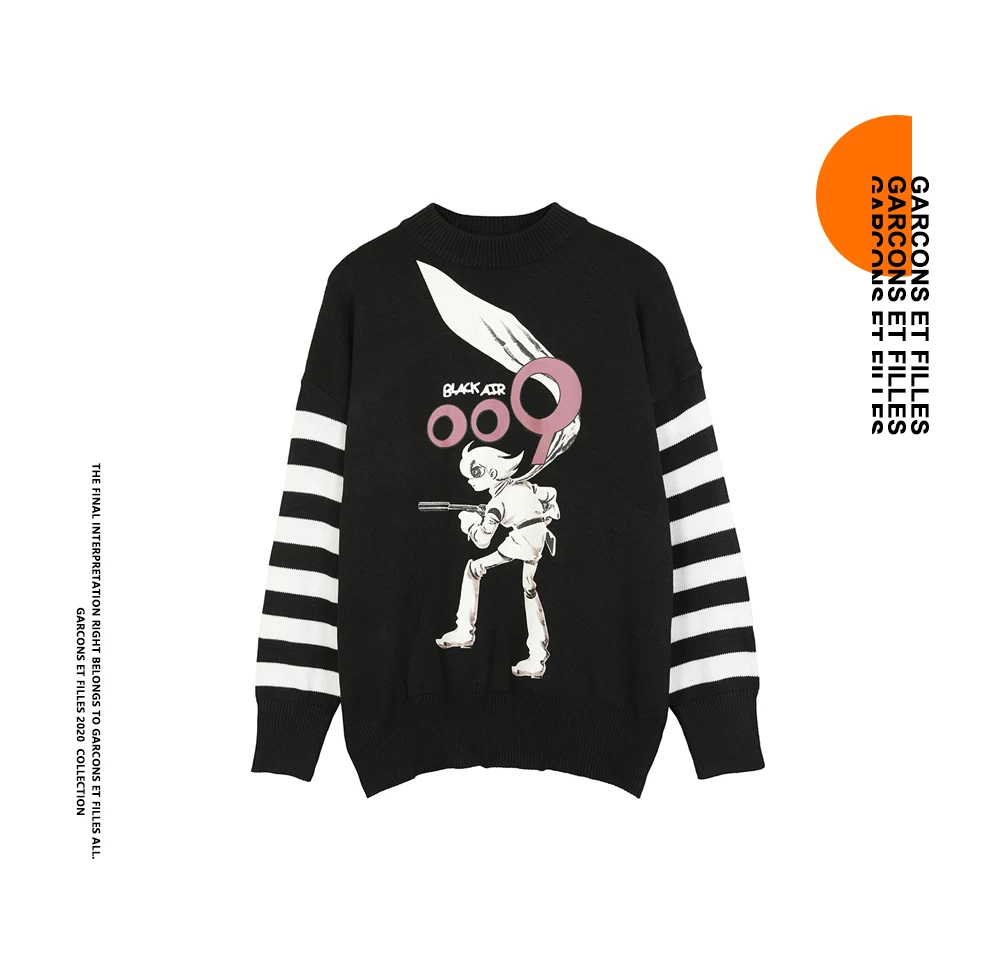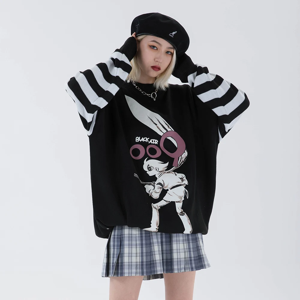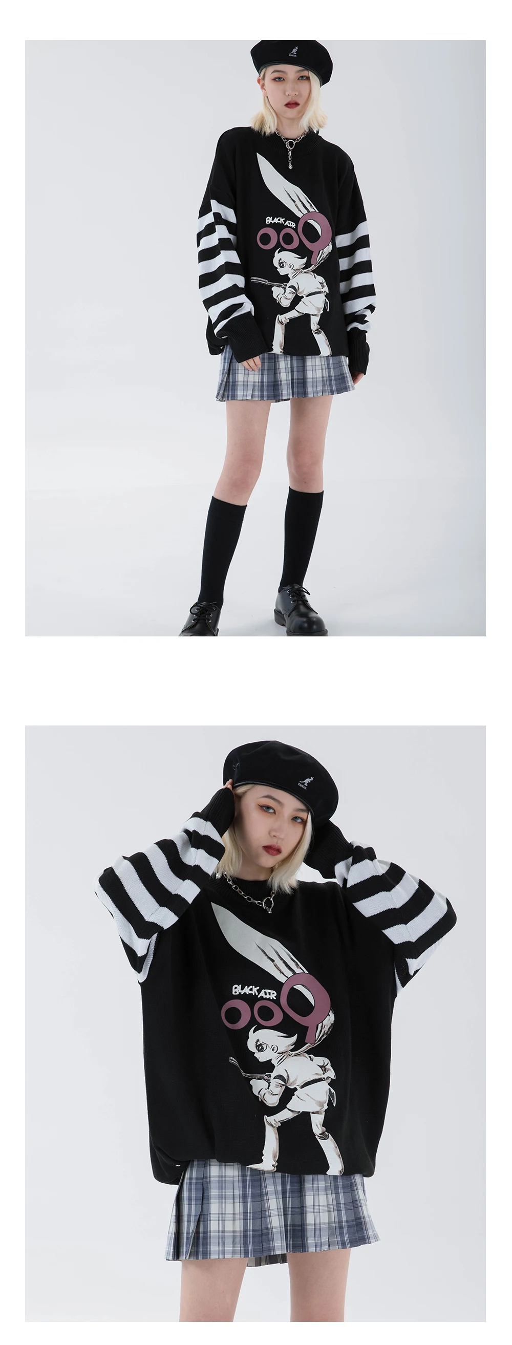 Kawaii Cute Striped Design Cartoon Knitted Unisex Couple Clothes Oversized Harajuku Men Clothing Streetwear Sweater Fashion New