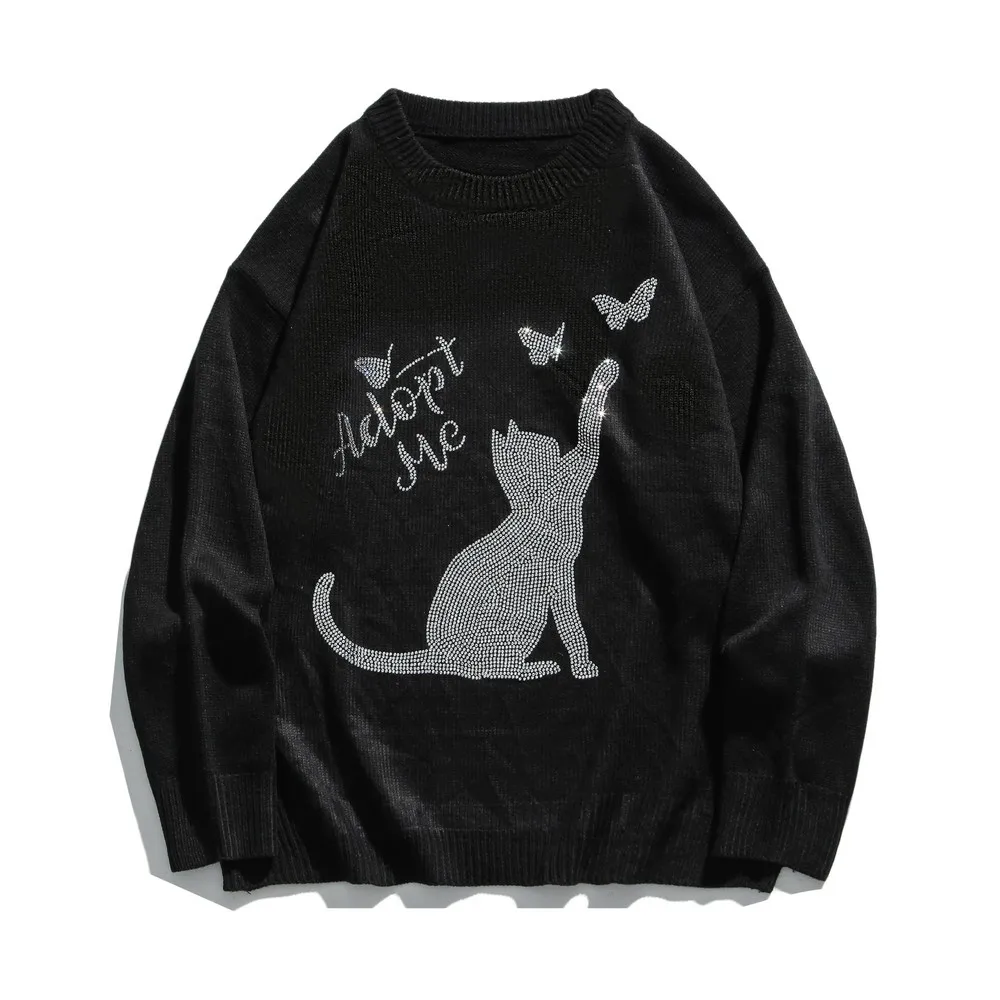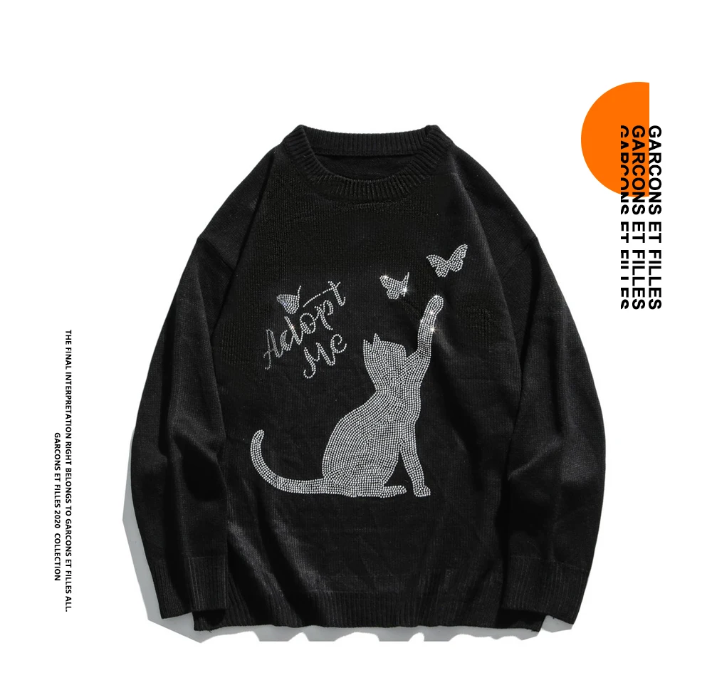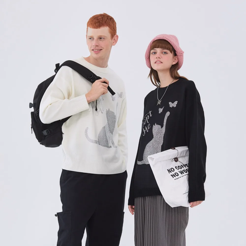Kawaii Funny Couple Clothes Vintage Clothes Knitted Retro Sweater Harajuku Men Clothing Pull Homme Tops Nice Pullover Sweter