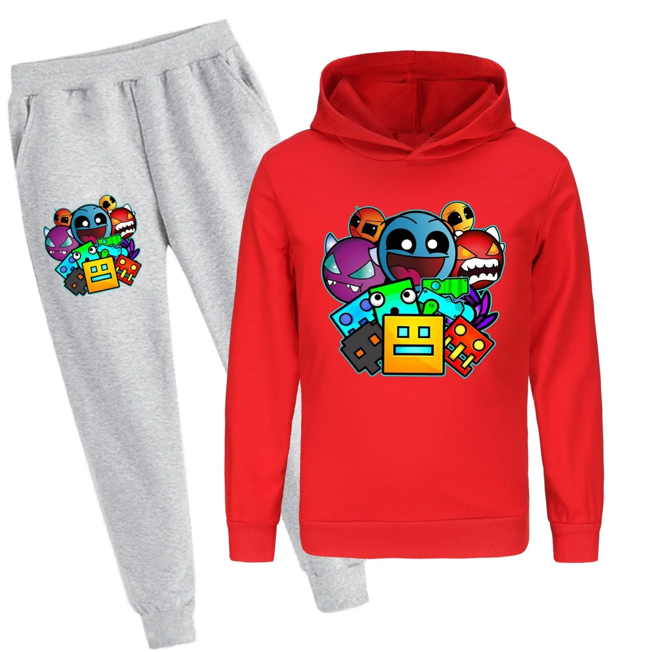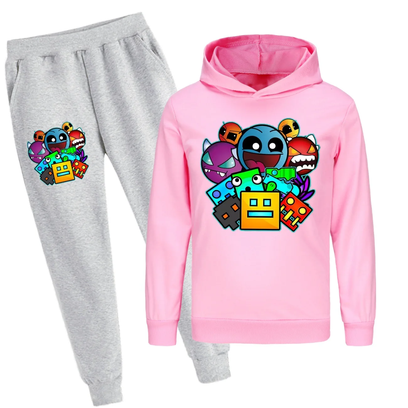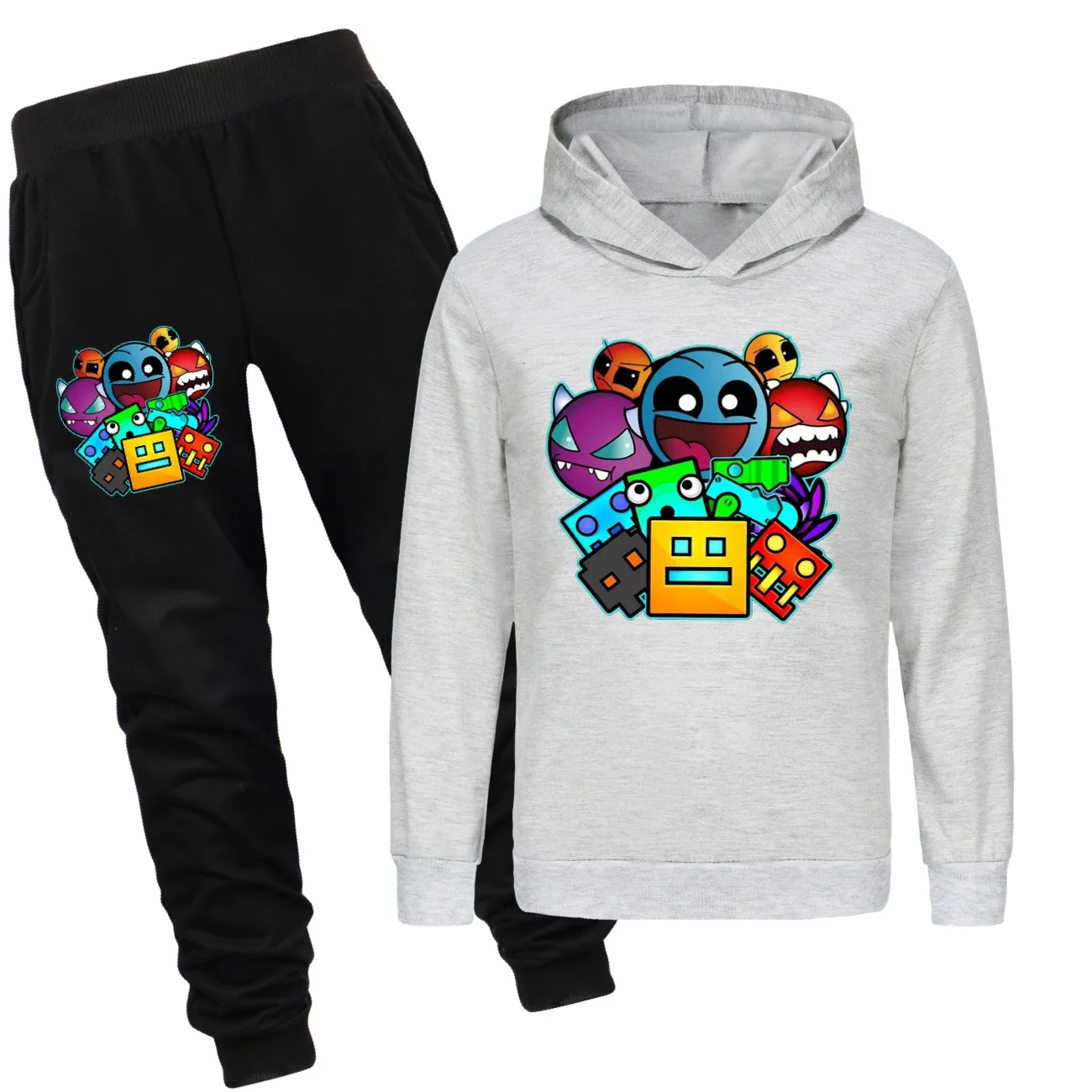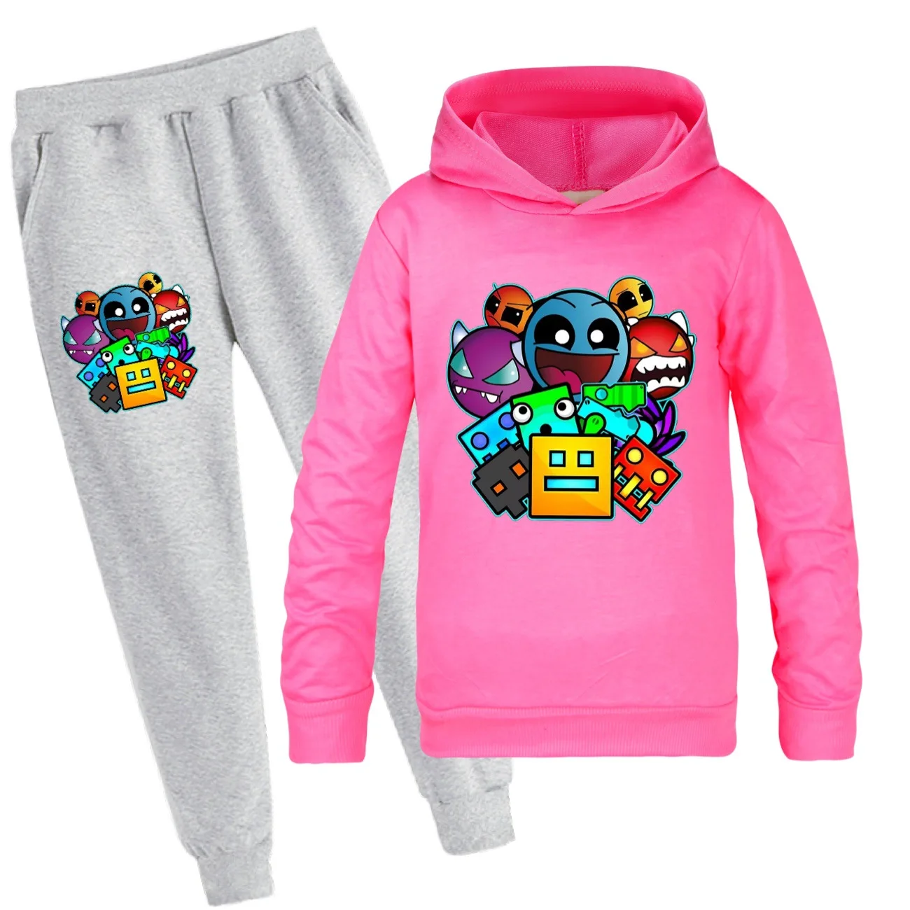 Kids Geometry Dash Clothing Sets Children Spring Tracksuit Little Girls Hooded Shirt Teens Clothes Cotton Baby Boys Tops 4 6 8T