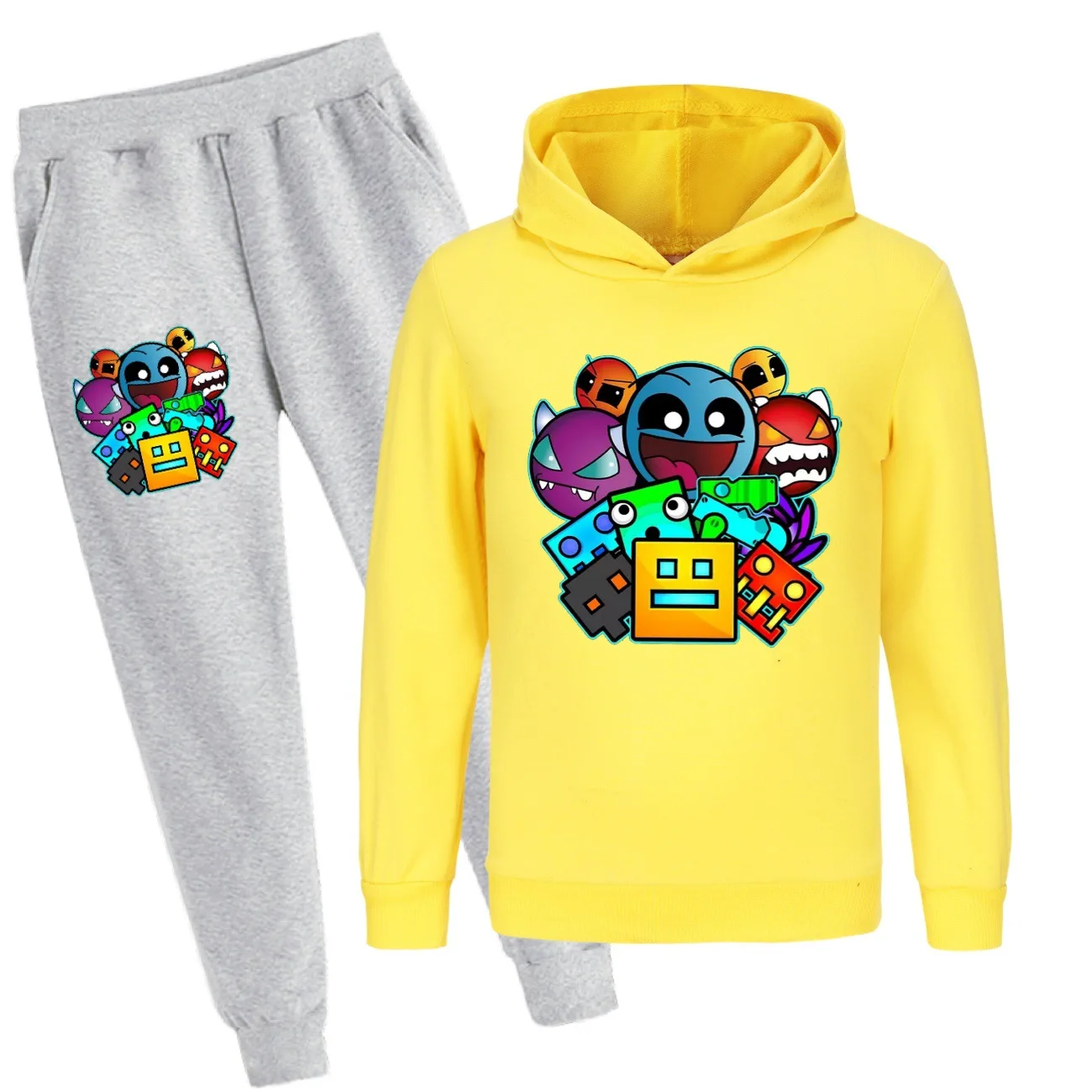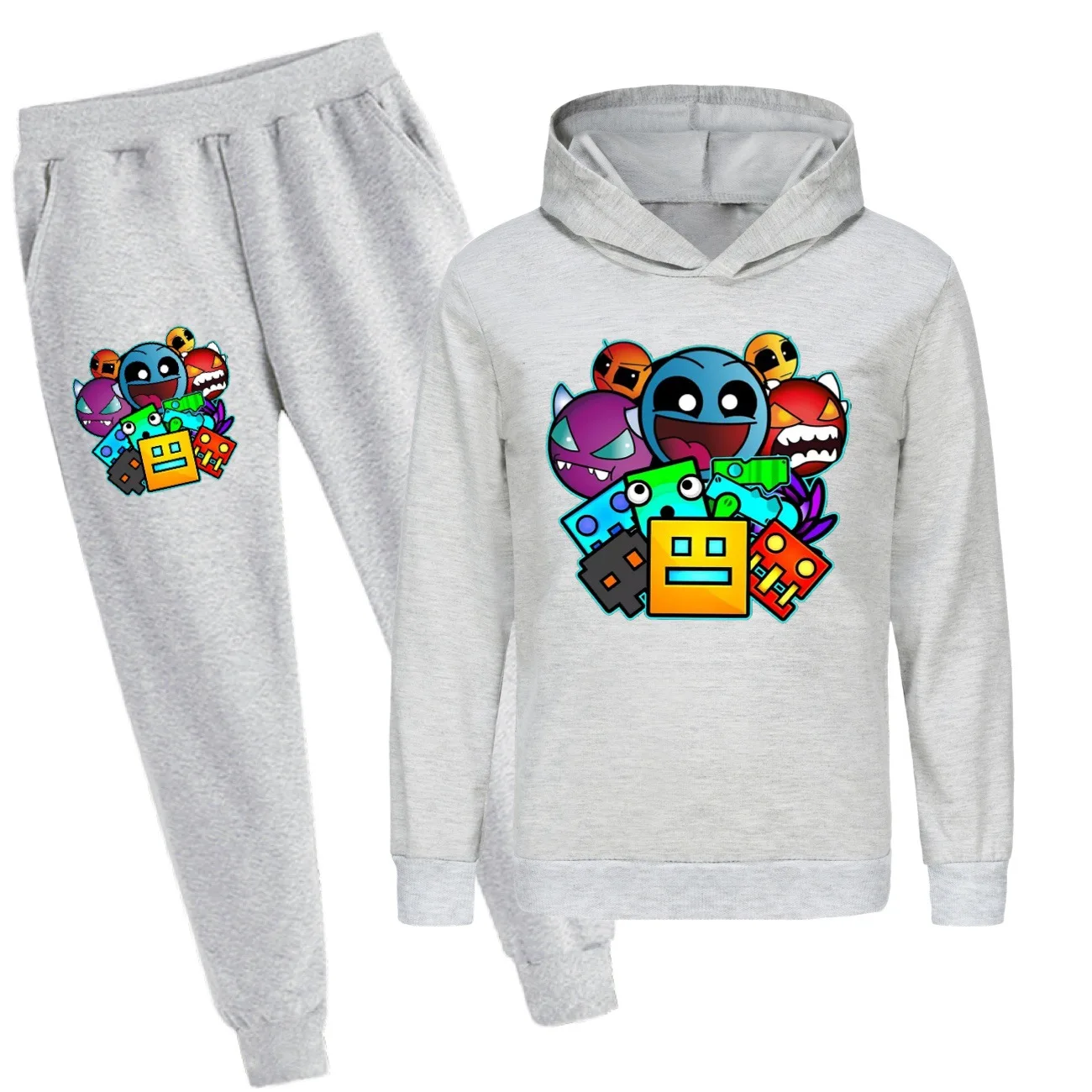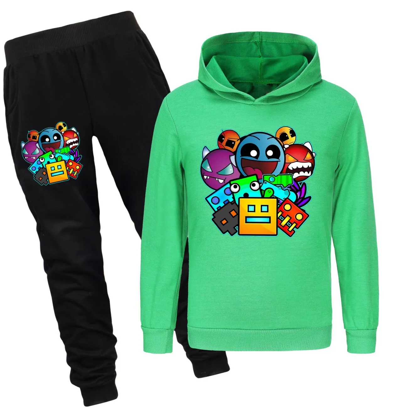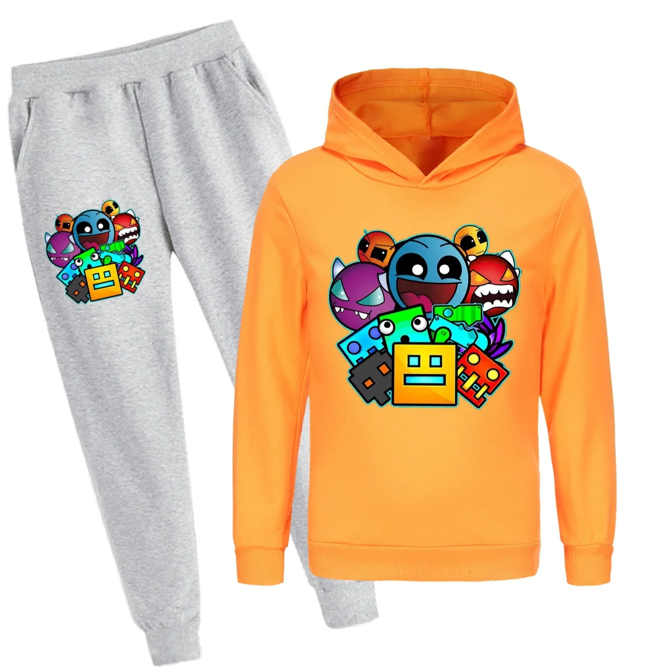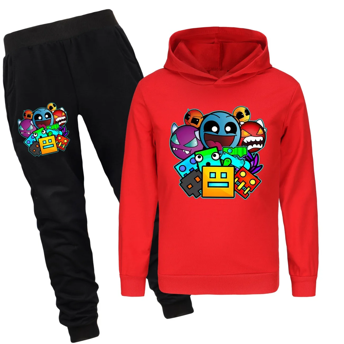 Kids Geometry Dash Clothing Sets Children Spring Tracksuit Little Girls Hooded Shirt Teens Clothes Cotton Baby Boys Tops 4 6 8T