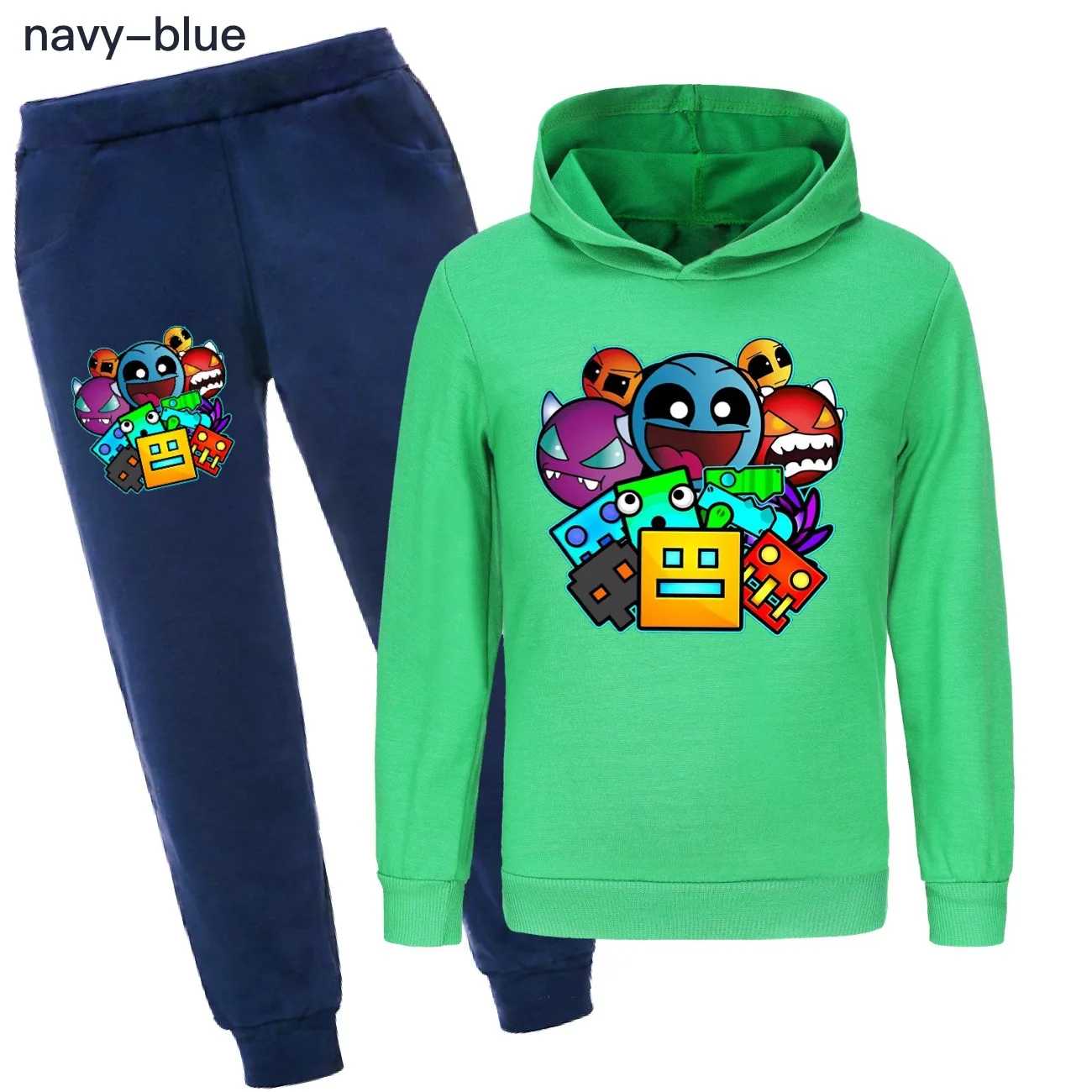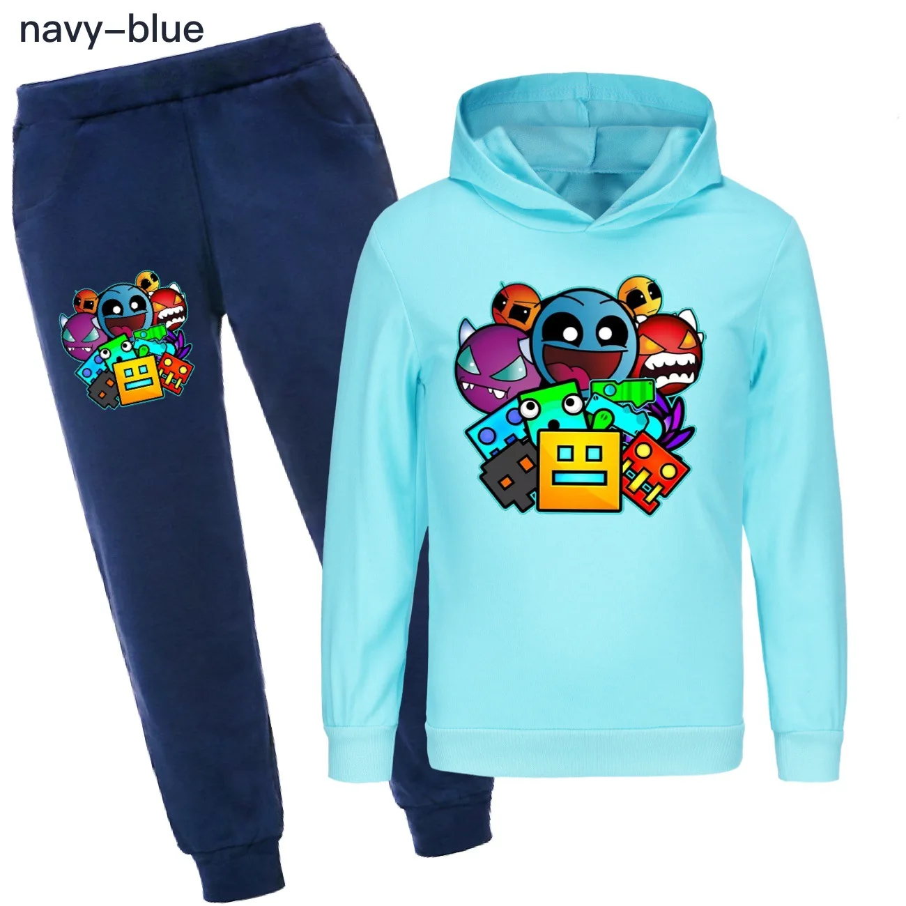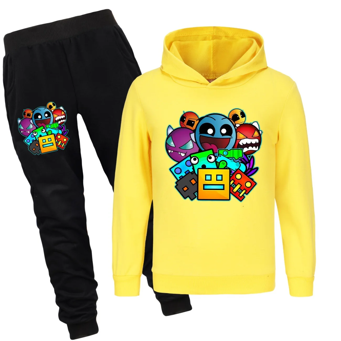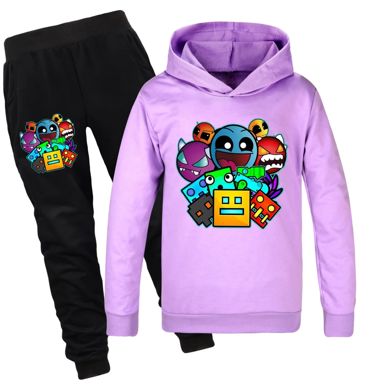 Kids Geometry Dash Clothing Sets Children Spring Tracksuit Little Girls Hooded Shirt Teens Clothes Cotton Baby Boys Tops 4 6 8T