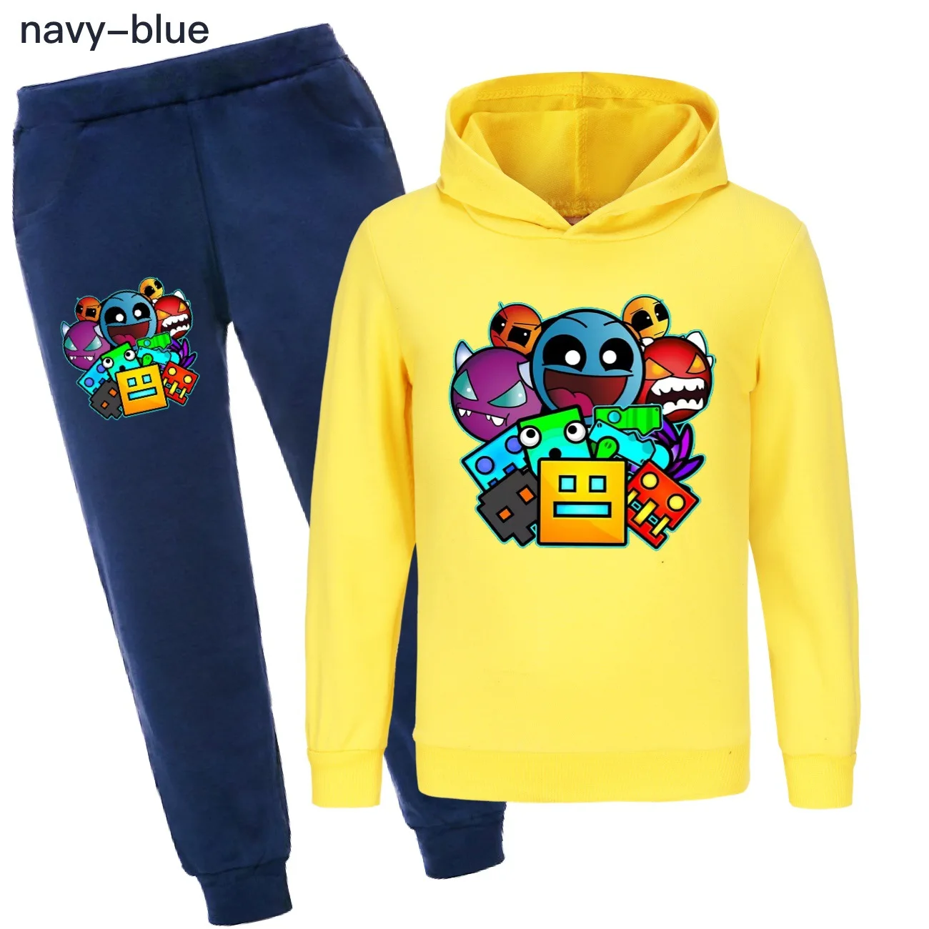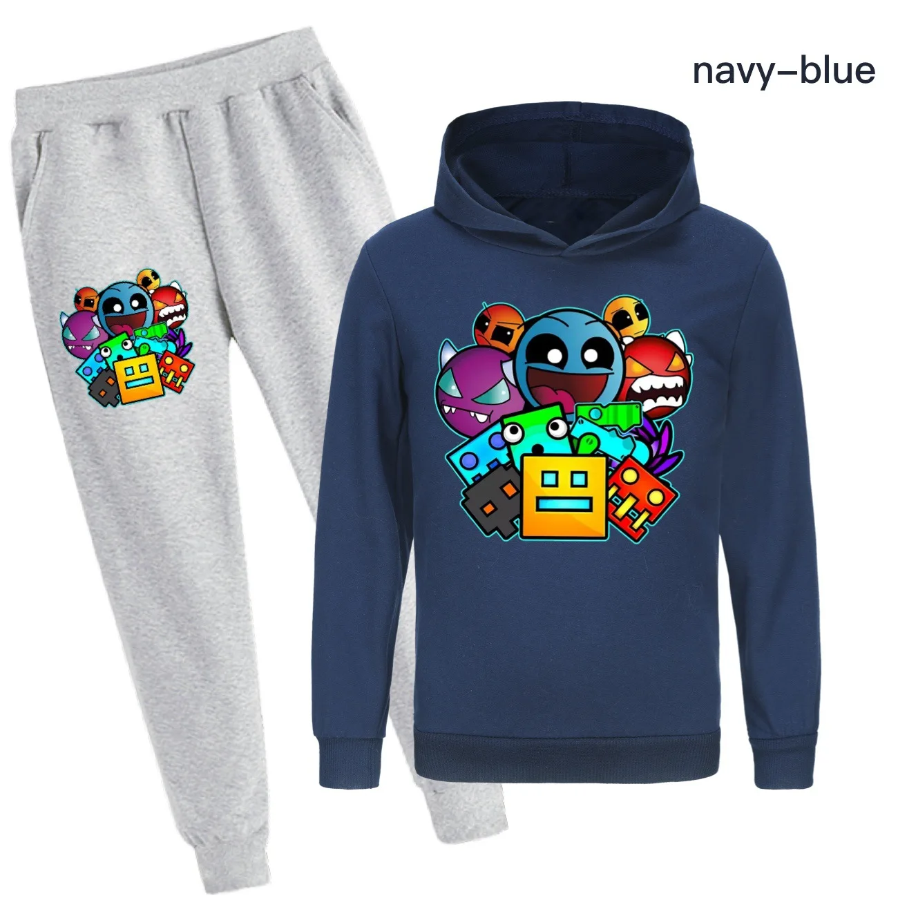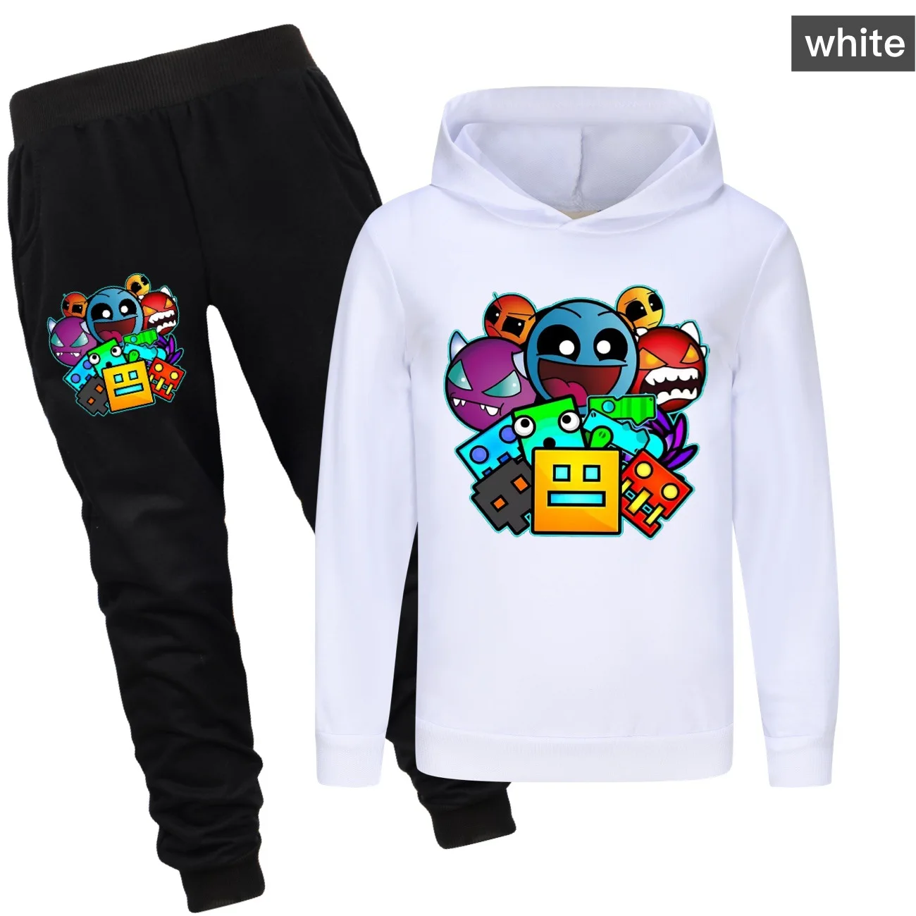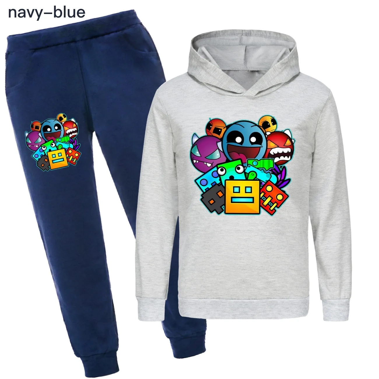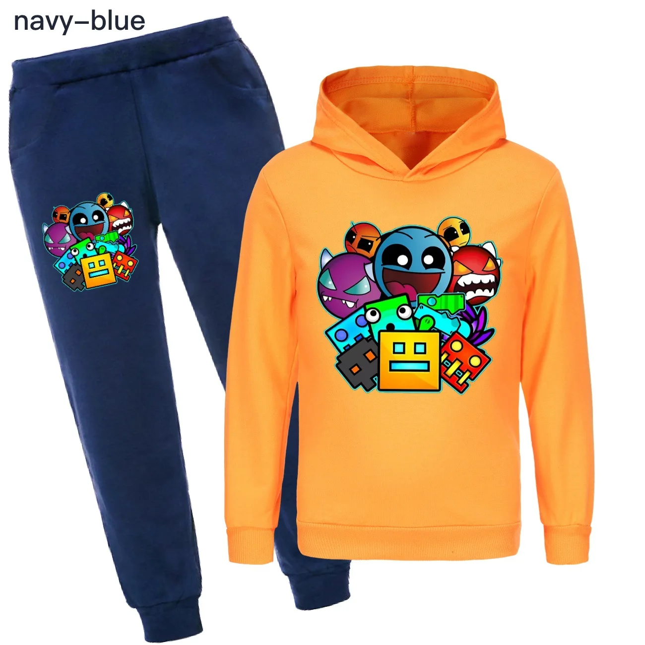 Kids Geometry Dash Clothing Sets Children Spring Tracksuit Little Girls Hooded Shirt Teens Clothes Cotton Baby Boys Tops 4 6 8T