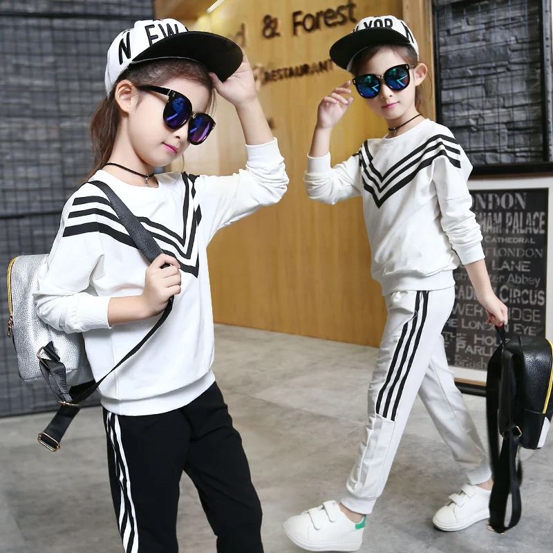 Kids Girls Clothing Sets Spring Autumn Long Sleeve Pullover Sweatshirt+Pants 2pcs Sport Suit School Uniform for Girls 8 10 Year