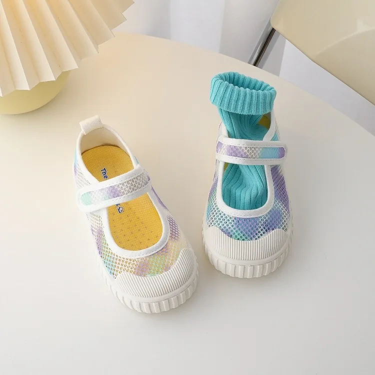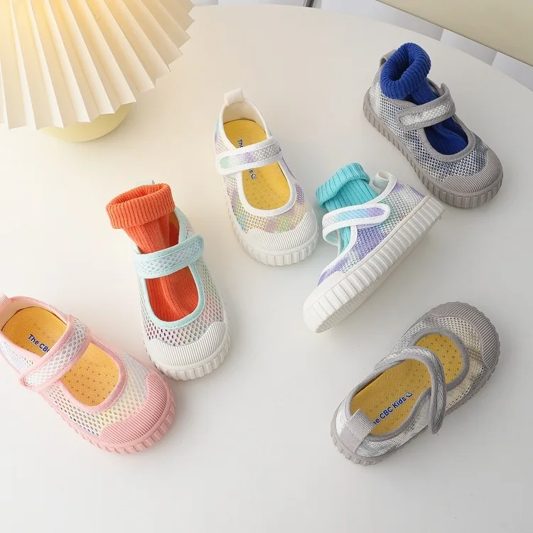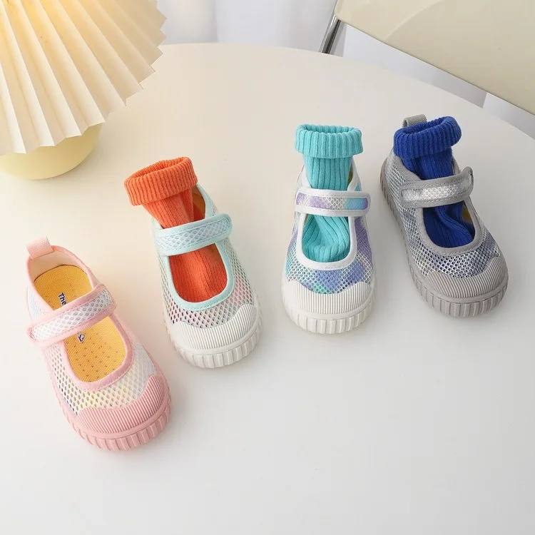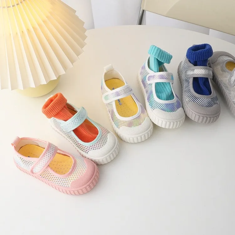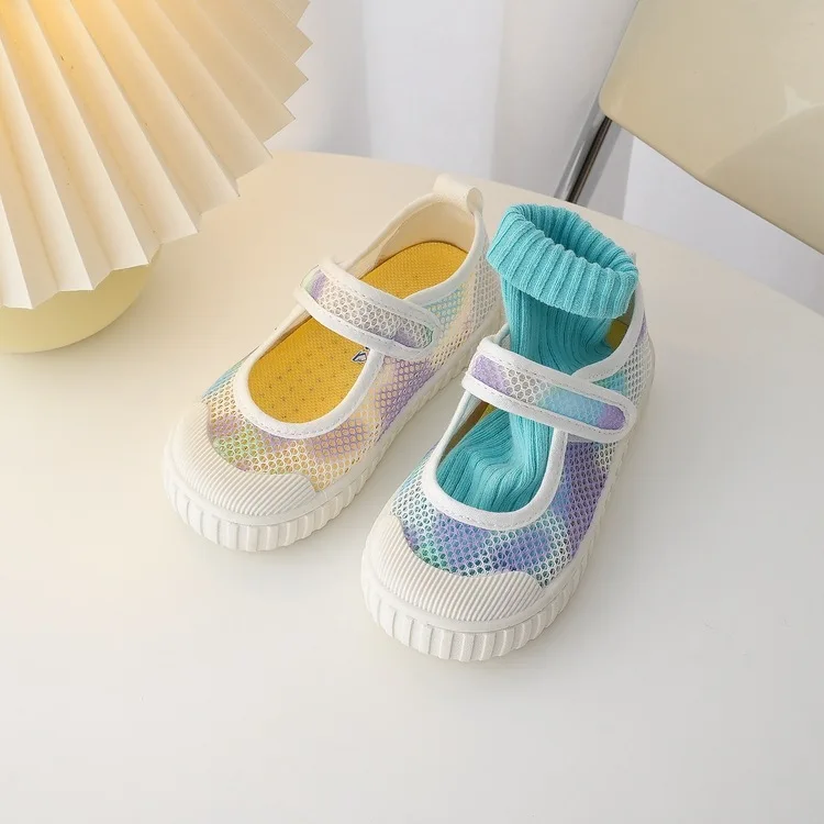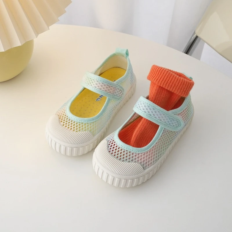 Kids Summer Sneakers Hook Loop Boys Mesh Shoes Breathable Children Shoes Colorful Boys Girls Casual Sneakers Soft Bottom Flats