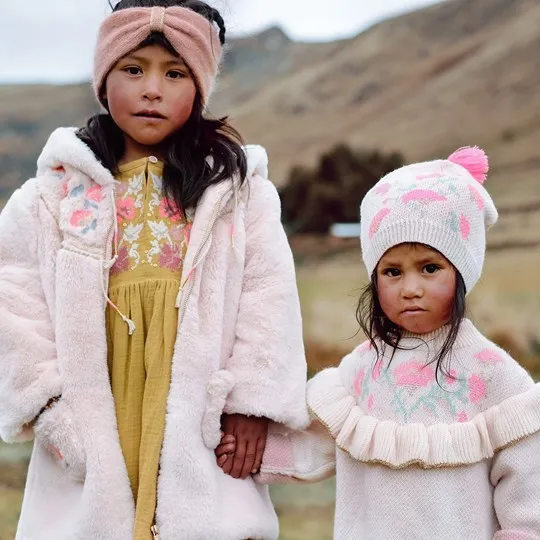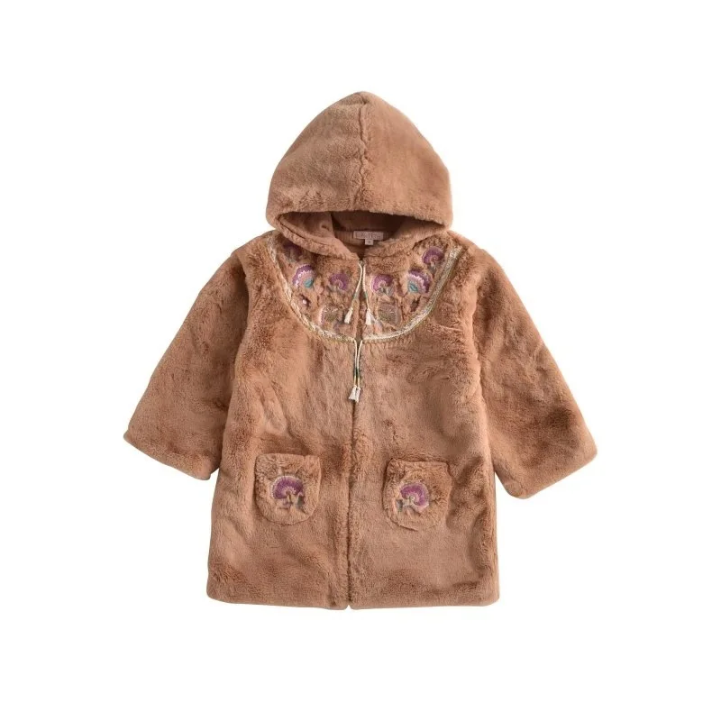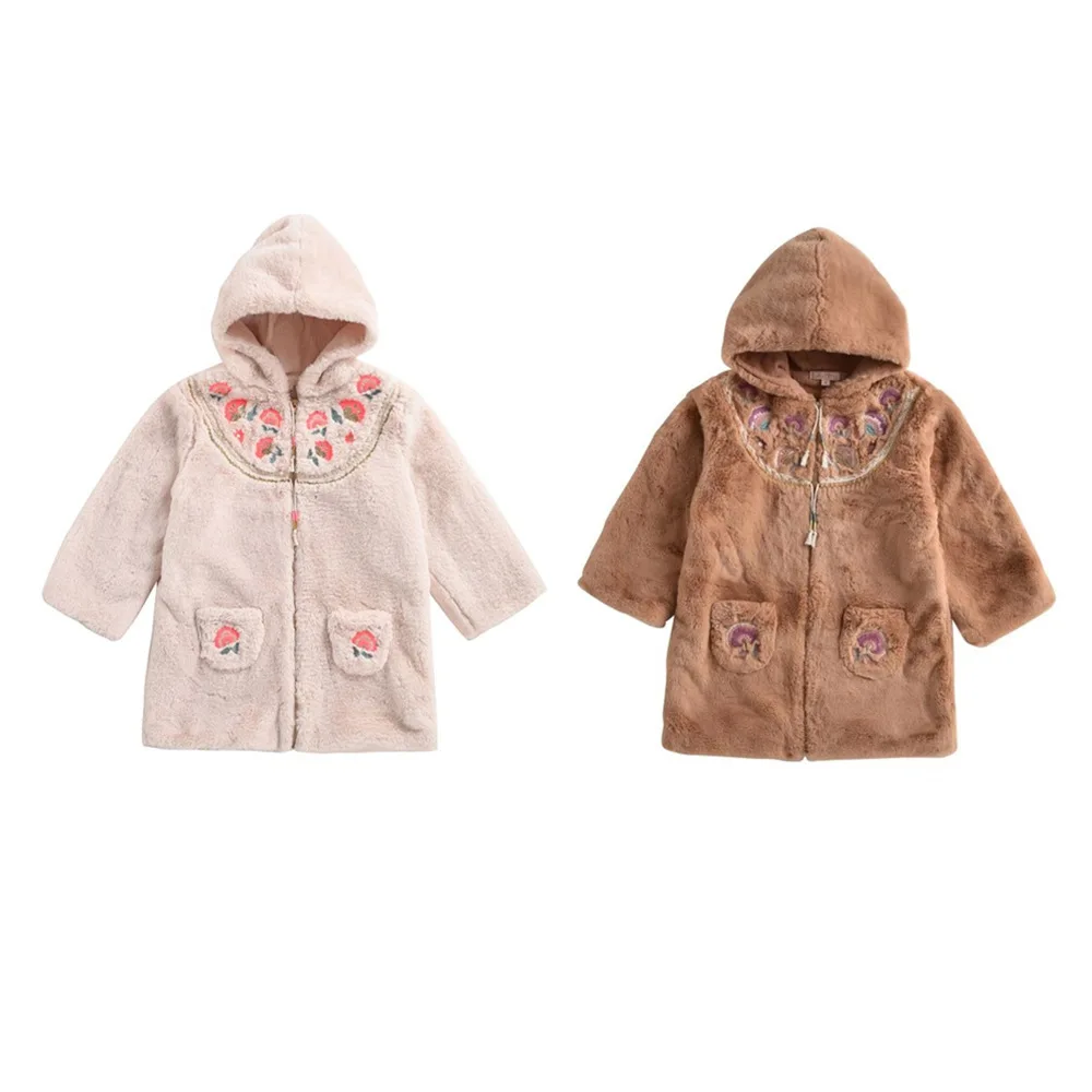 Kids Velvet Jacket L&M Brand New Autumn Winter Girls Knit Embroidery Flower Print Warm Hooded Coat Baby Child Outwear