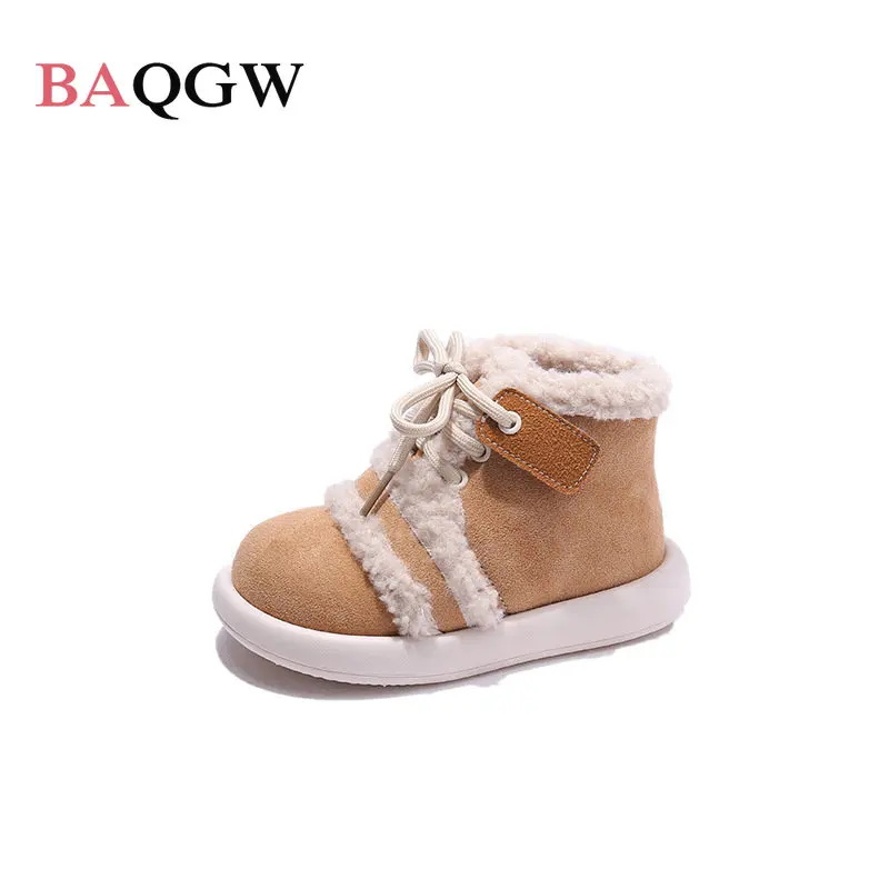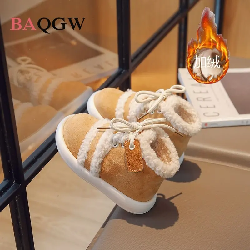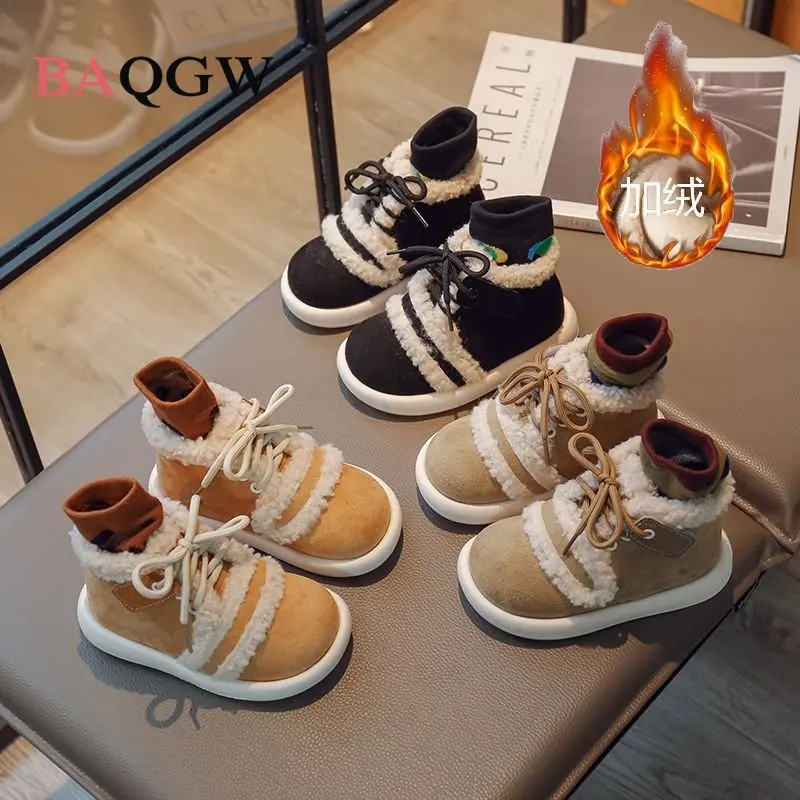 Kids Winter Plush Lamb Wool Boots High Top Warm Children’s Fashion Shoes Anti-slippery Soft Bottom Cotton Shoes Boy Girl Boots