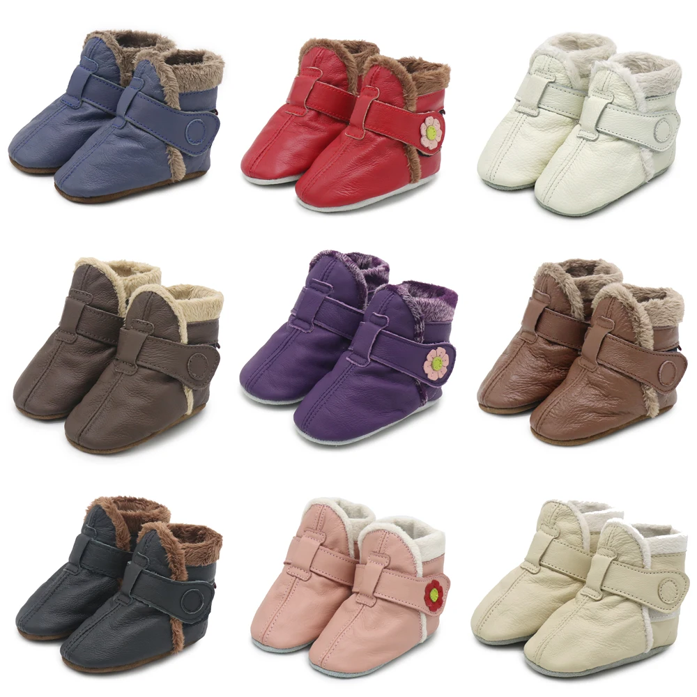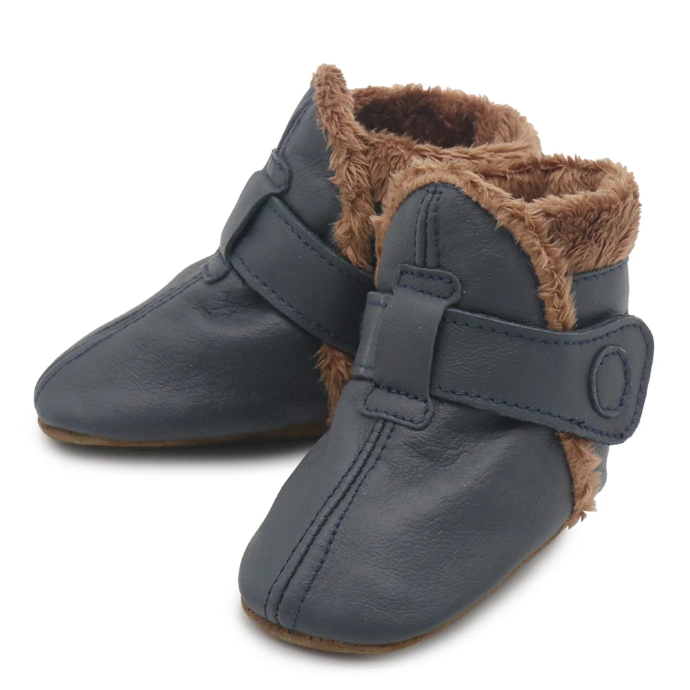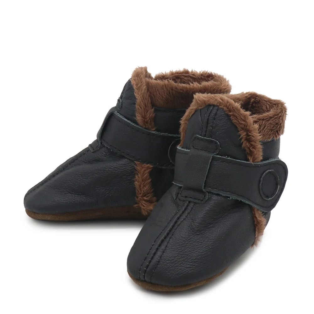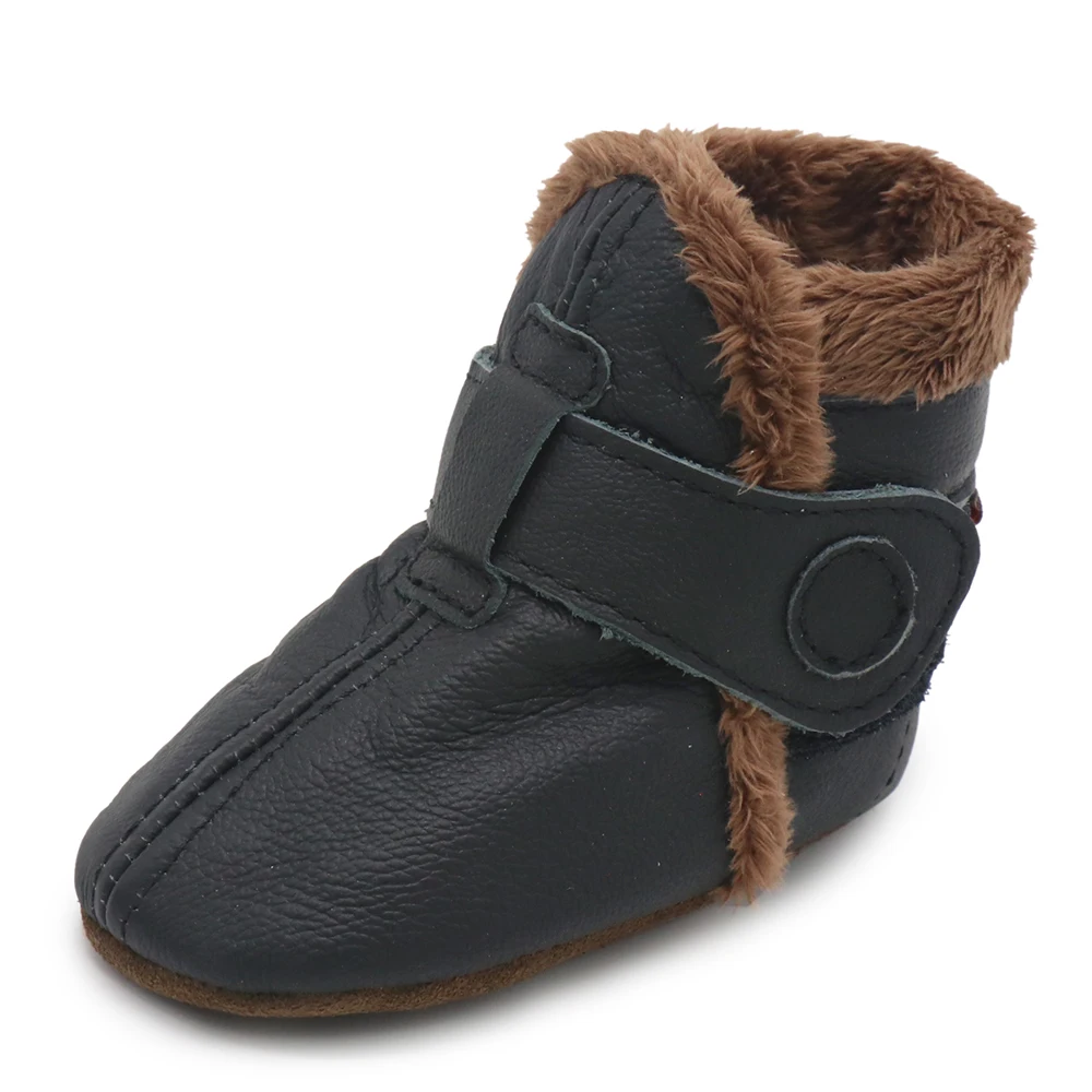 Kids winter shoes children Genuine Leather boots indoor shoes girls plush shoes boys black ankle boots 0-4 years