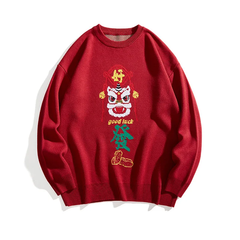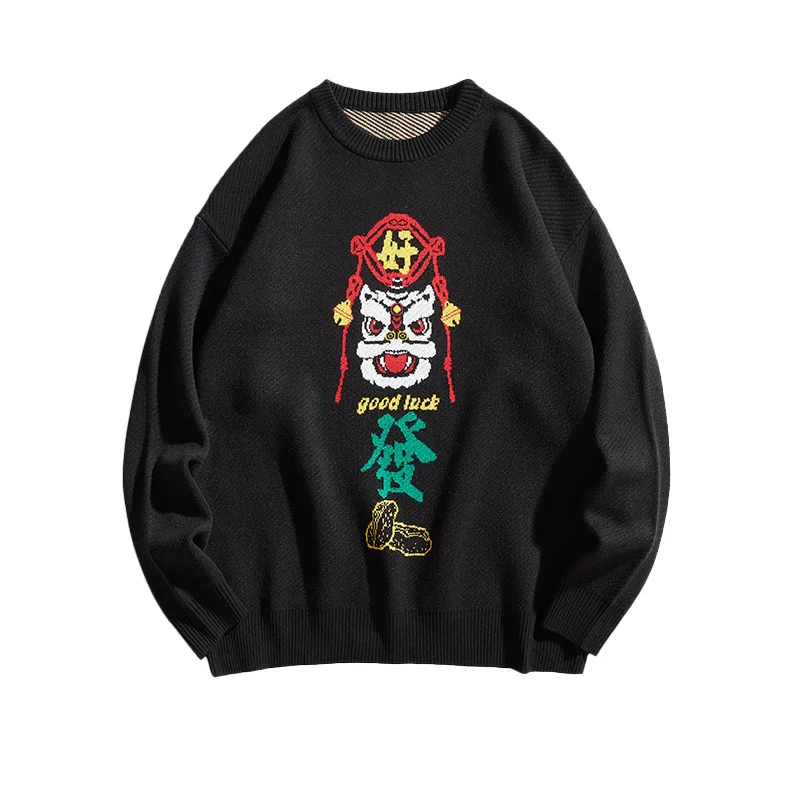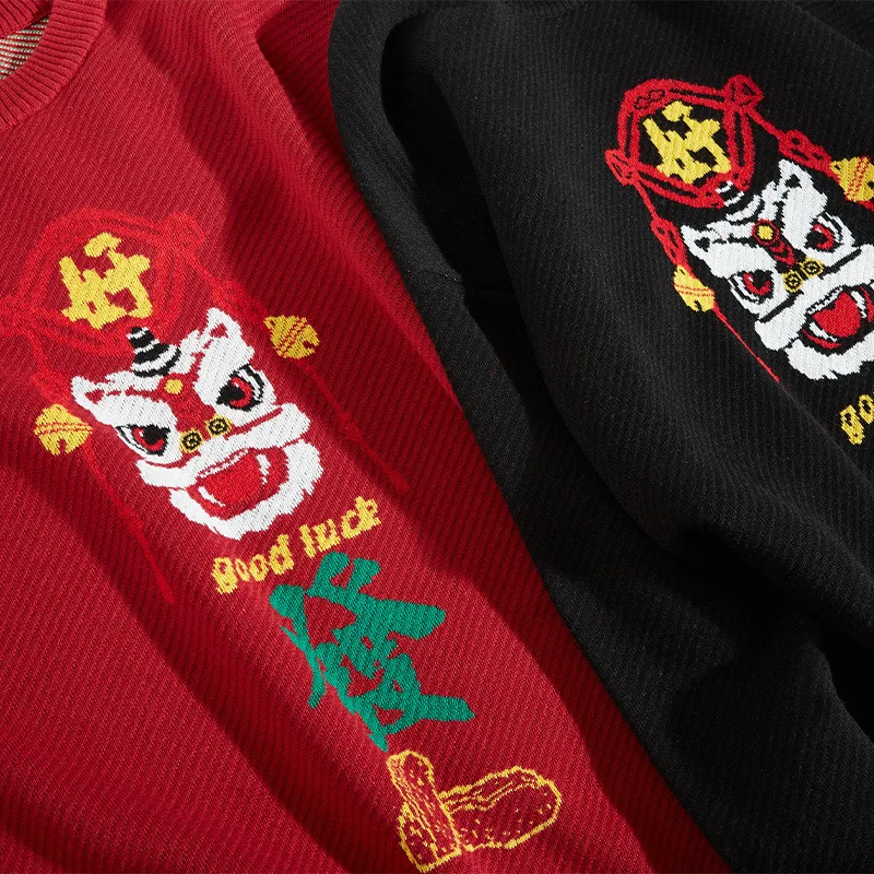 Knitted Sweater Men Fashion Casual Animal Sweater Chinese Lion Knitwear Jacquard Couple Pullover Men Women 2021 Spring Autumn