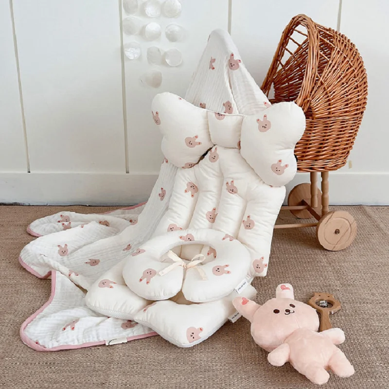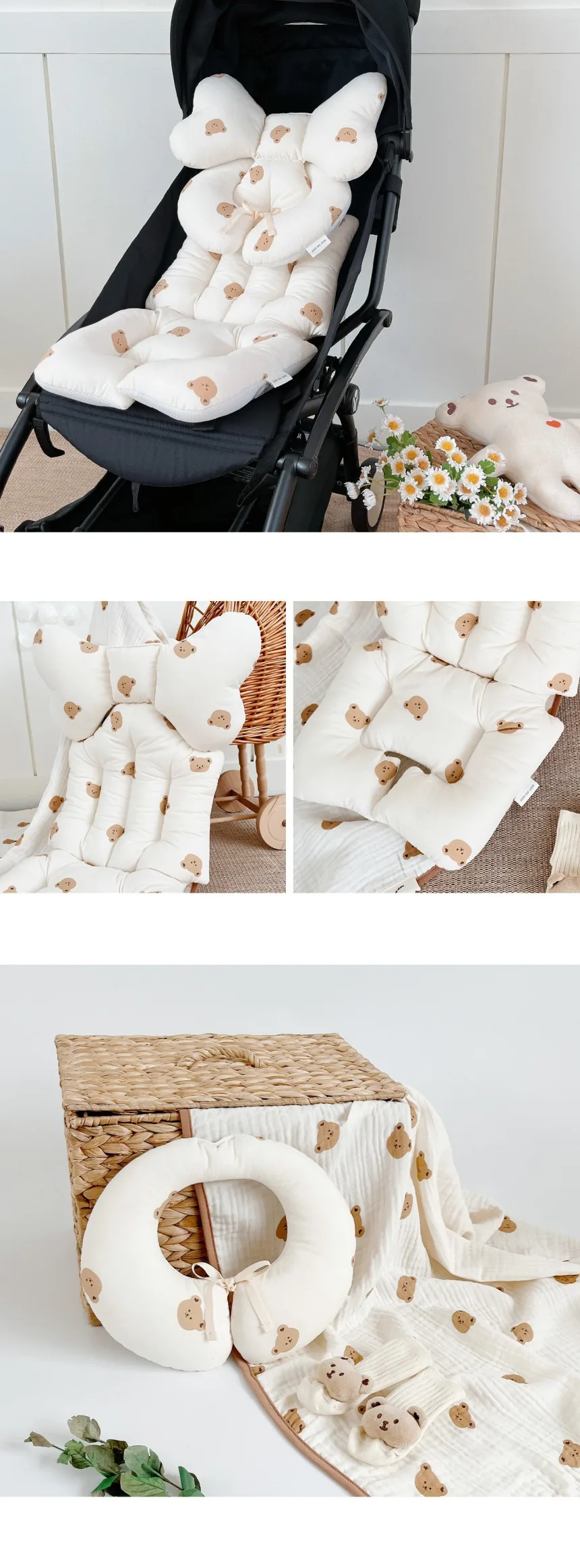 Korean Baby Stroller Cushion Pad Thick Warm Cartoon Print Cotton Car High Chair Seat Liner Mat Cover Protector Pram Accessories