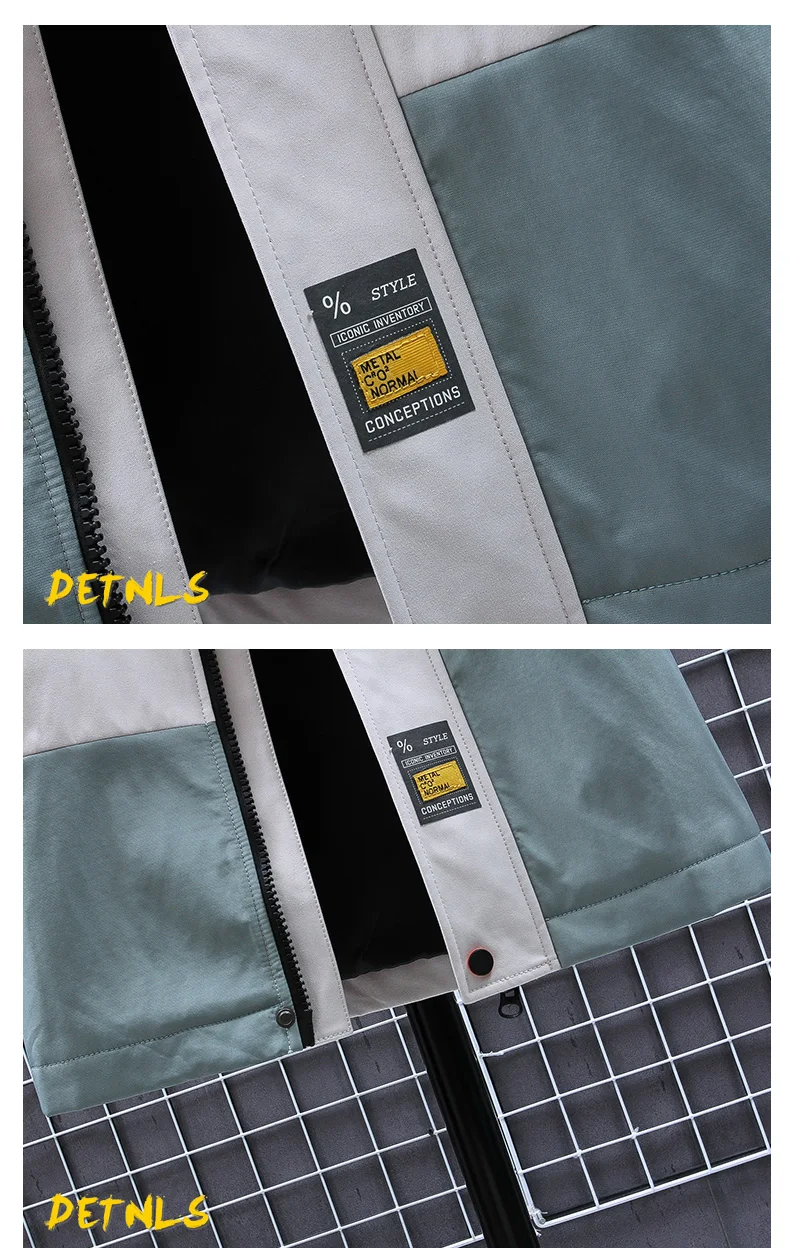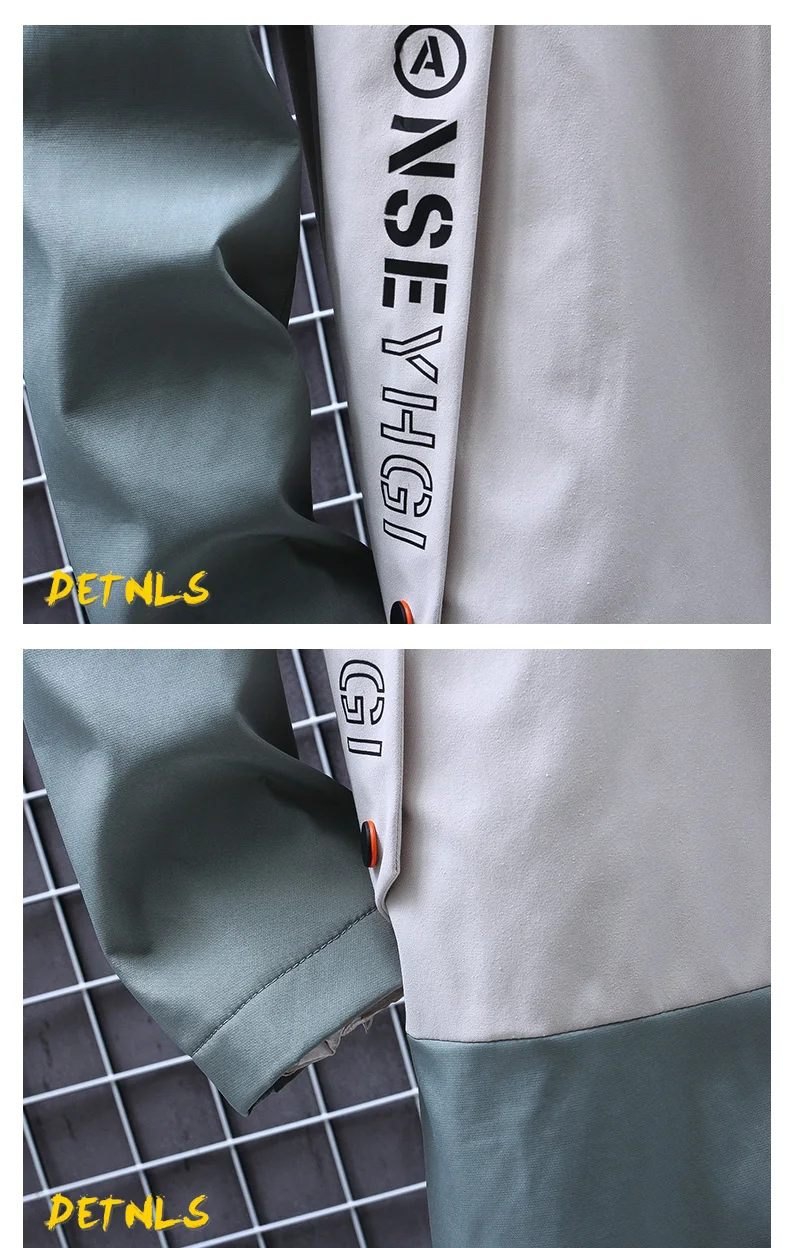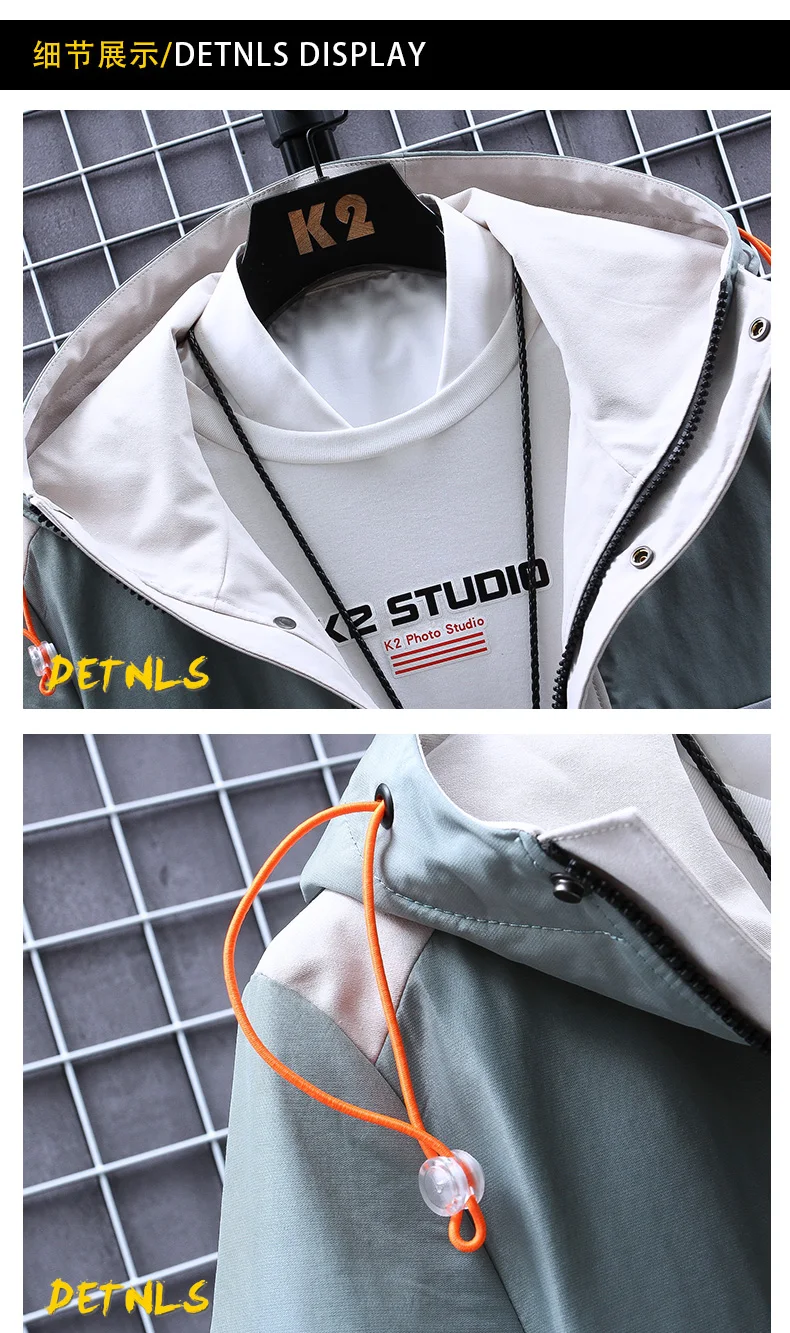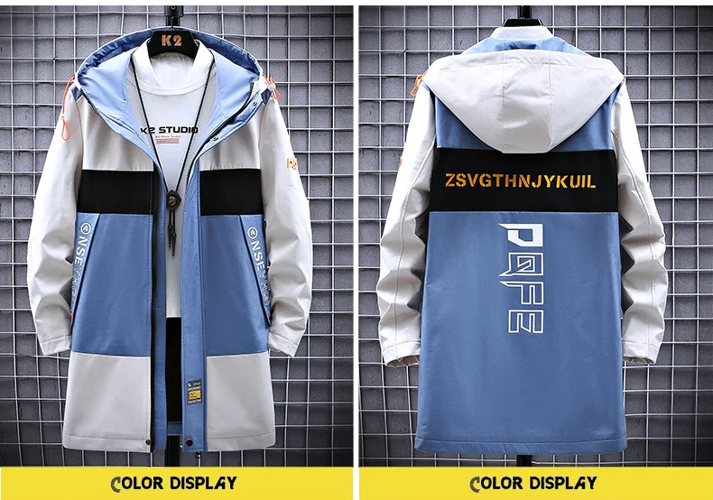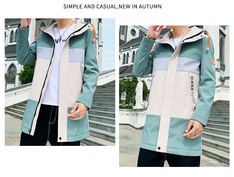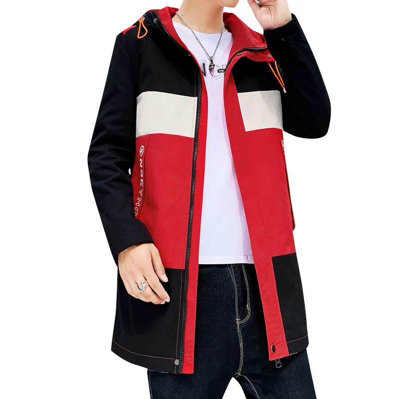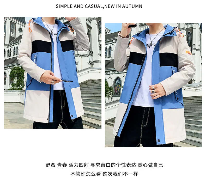 Korean Men’s Windbreaker Jackets Men Long Trench Coat Printed Cardigan Casual Hooded Coats Male 3 Color M-3XL