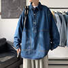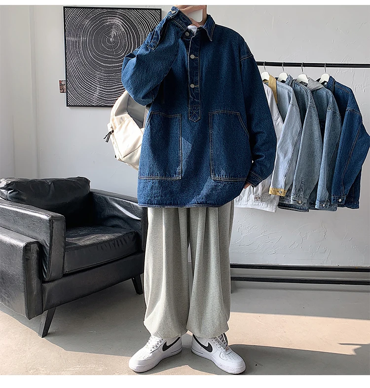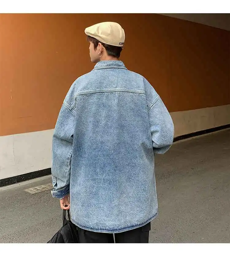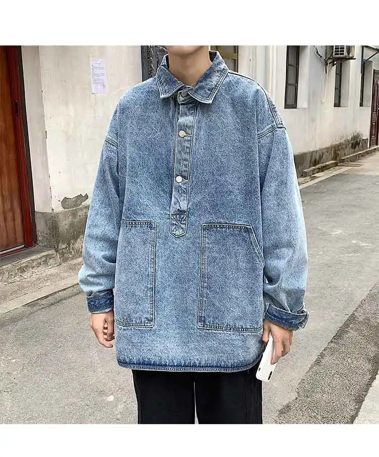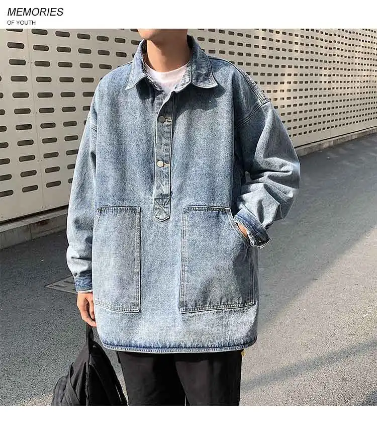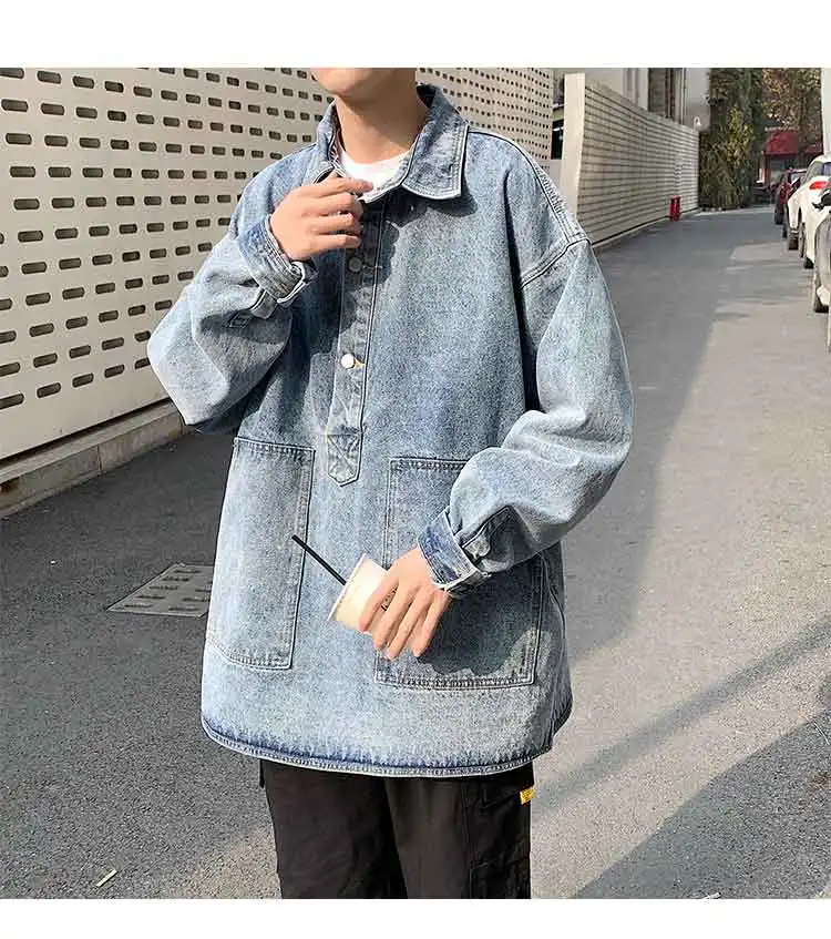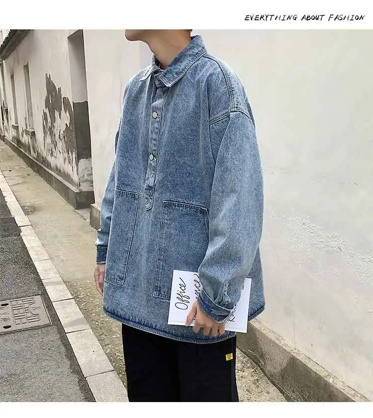 Korean Pullover Denim Jacket Men’s Fashion Retro Pocket Denim Jackets Mens Streetwear Loose Hip-hop Bomber Jacket Men S-2XL