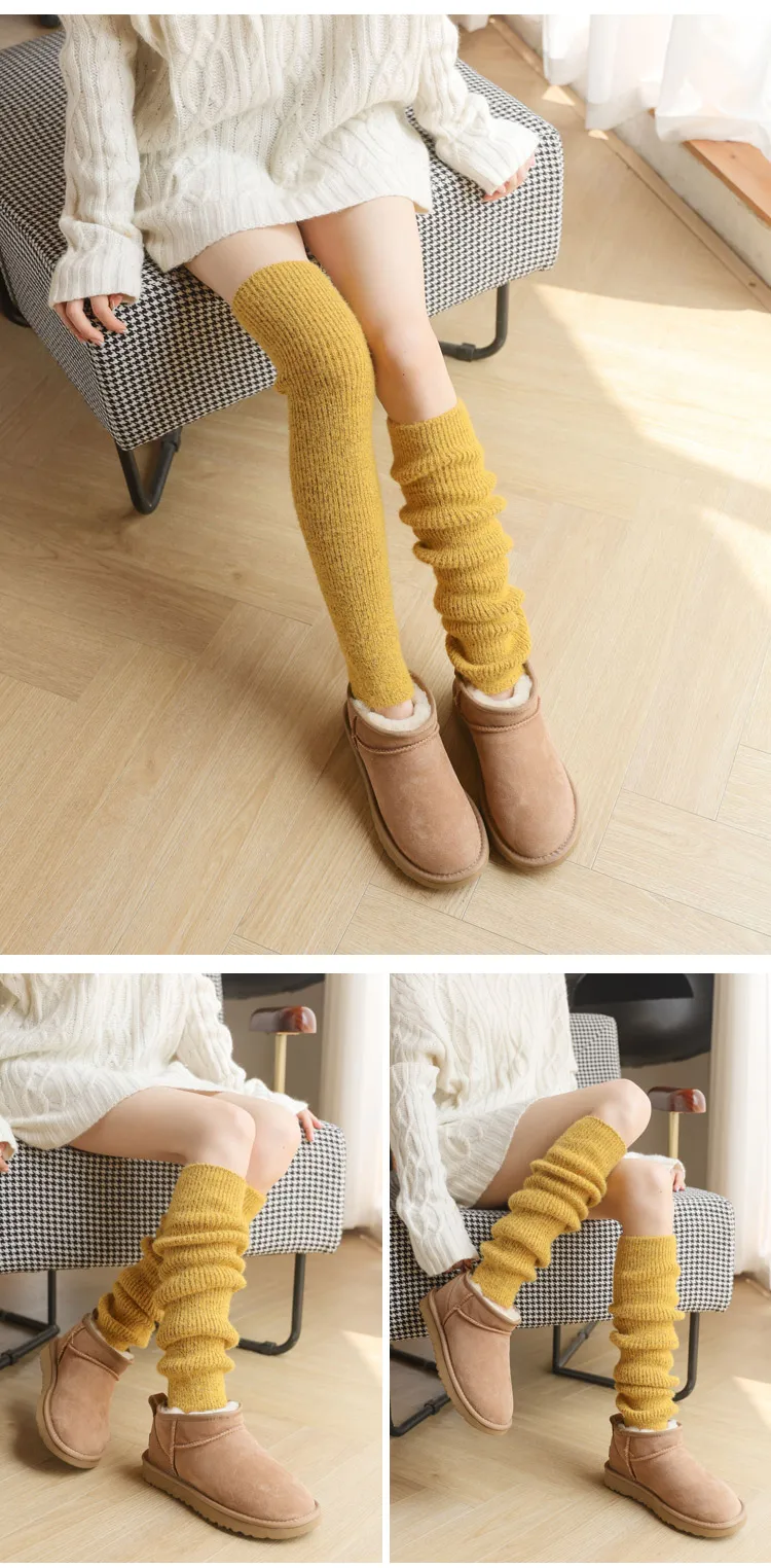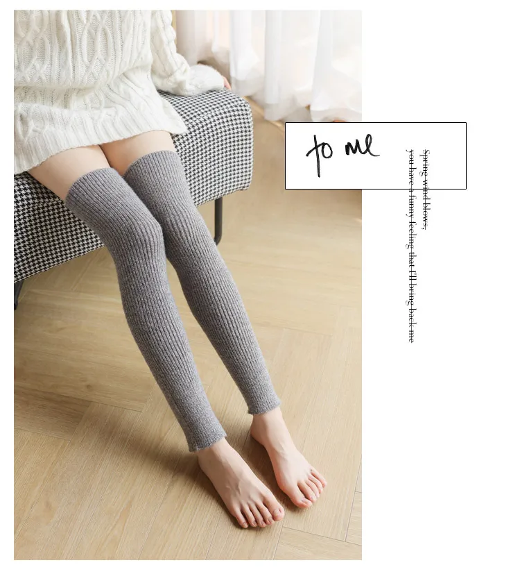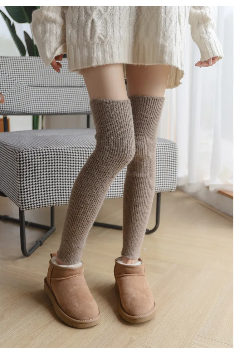 Korean Style Autumn And Winter Wool Over-the-knee Stockings Women’s Thickened Warm Leg Protecting Socks Stamping Footwear 2023