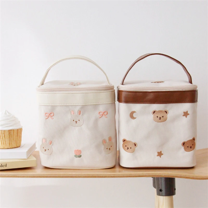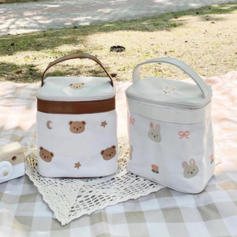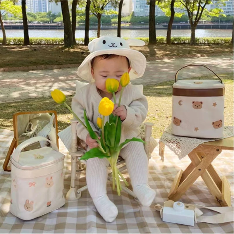 Korean Style Baby Lunch Bags Children Food Cooler Insulation Bag for School Canvas Mommy Portable Picnic Bag Thermal Box Outdoor