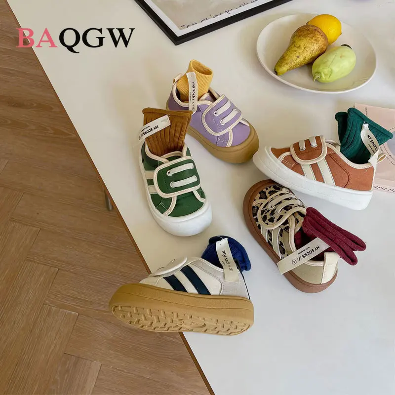 Korean Style Kids Spring Autumn Casual Shoes Soft Bottom Canvas Shoes Anti-slippery Lightweight Slip-On Children’s Flat Shoes