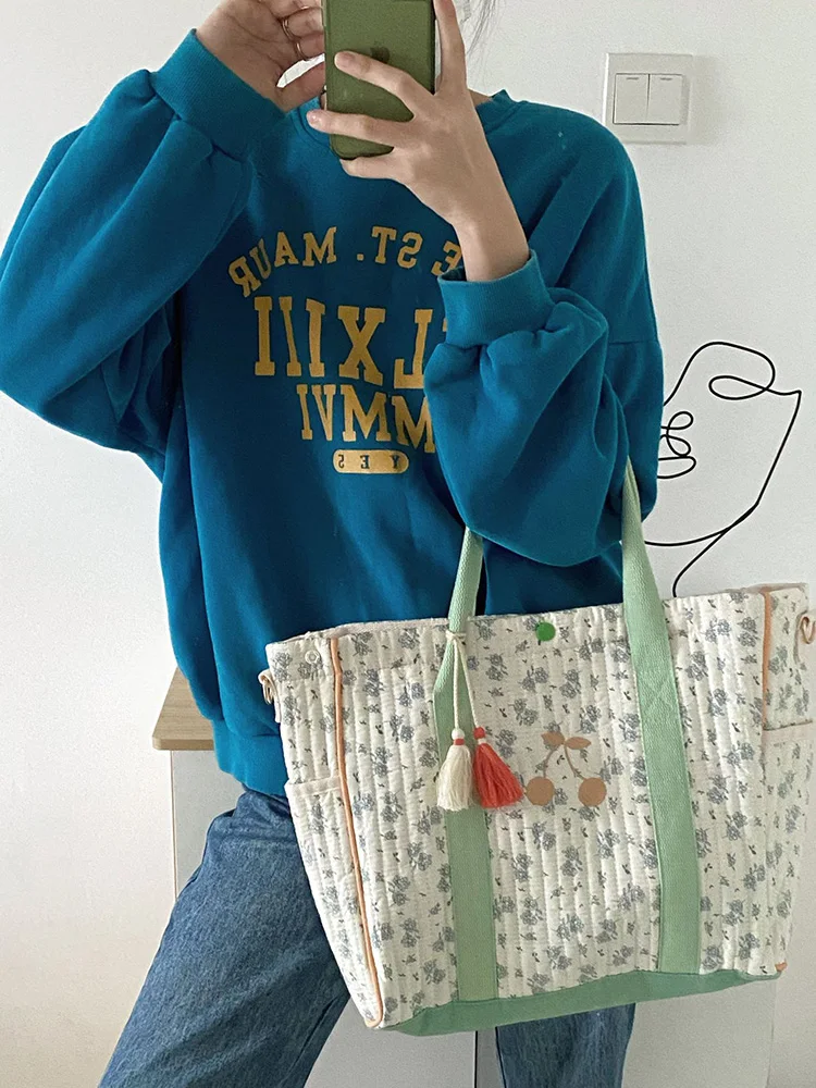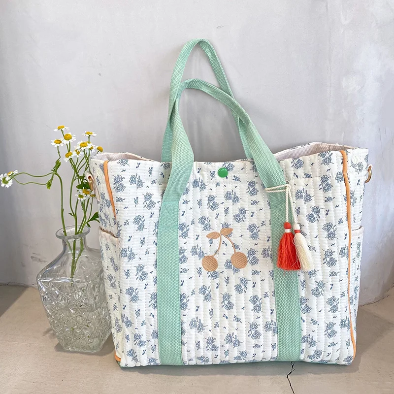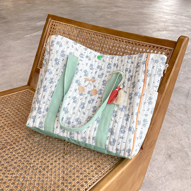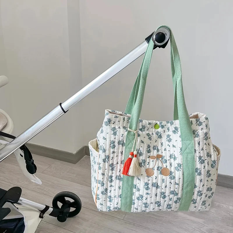 Korean Style Mommy Shoulder Bag Baby Care Diaper Bag Maternity Nappy Storage Organizer For Stroller Cotton Quilted Messenger Bag