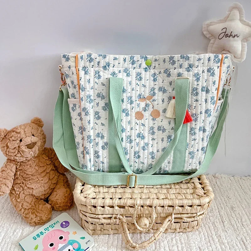 South Korea’s new 2022 zipper exquisitely embroidered mommy bag baby stroller bag diaper bag! The fabric, workmanship, and embroidery are all very delicate. All diapers and baby bottles can be stuffed in, a great bag.