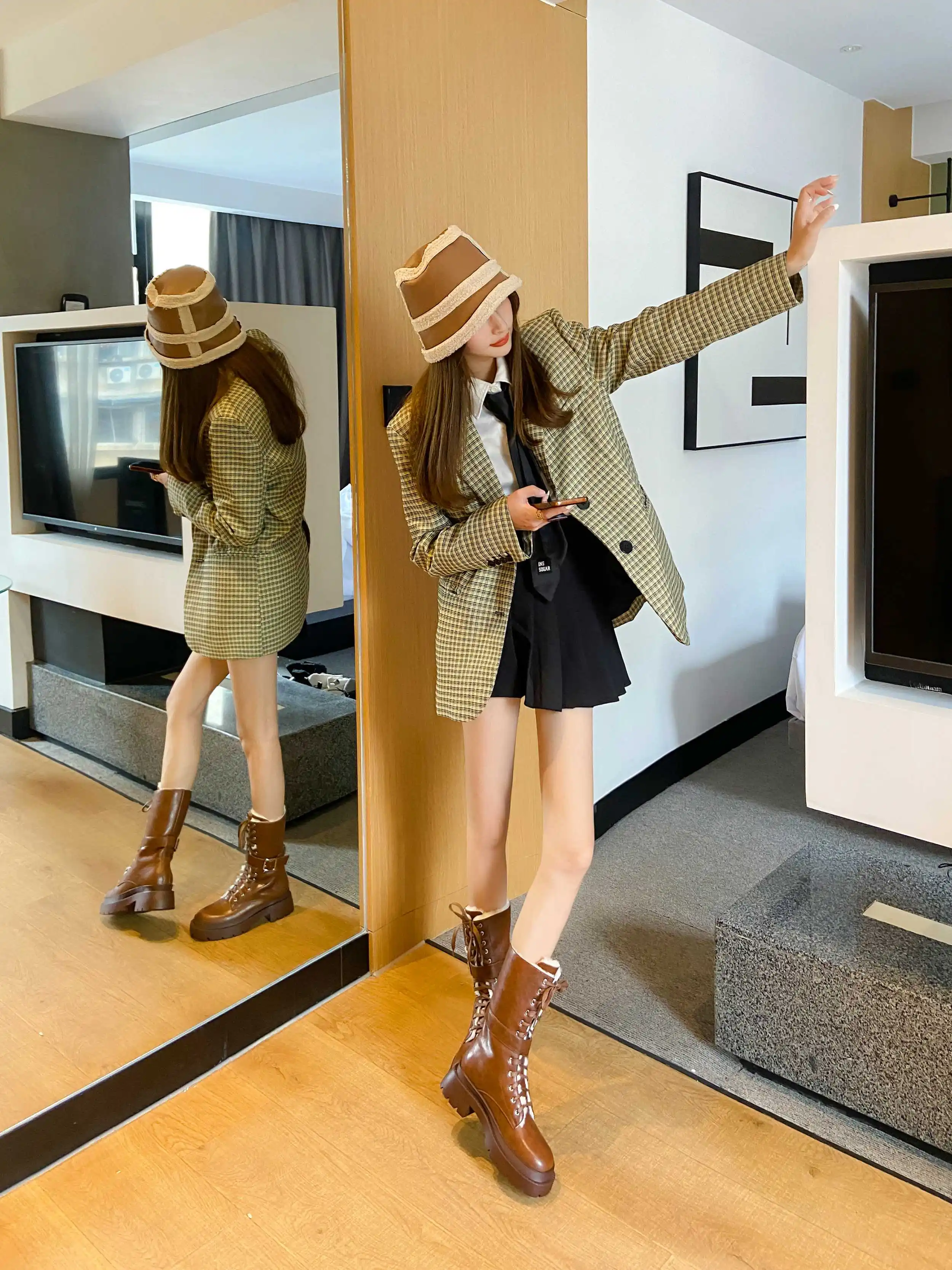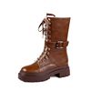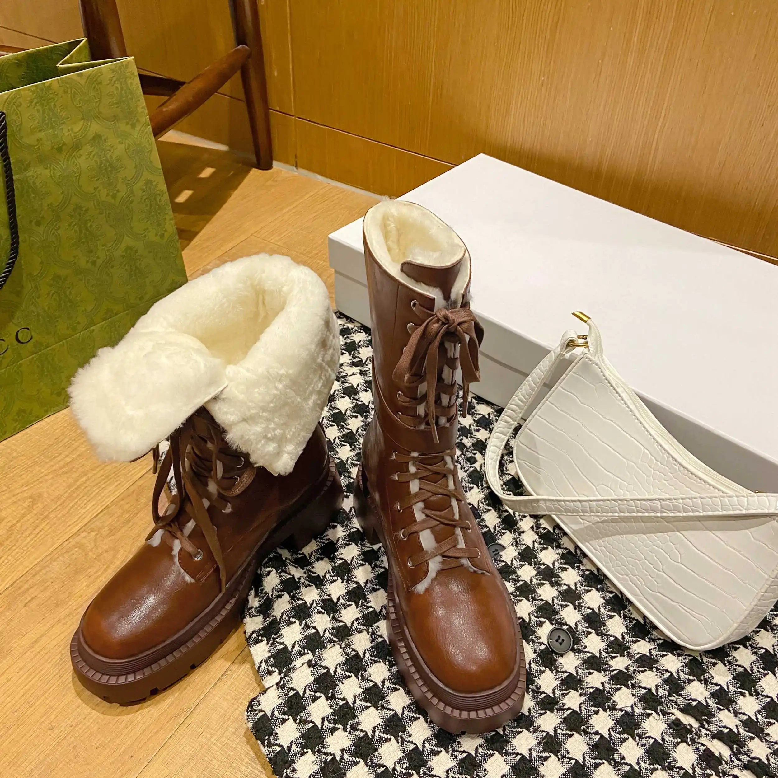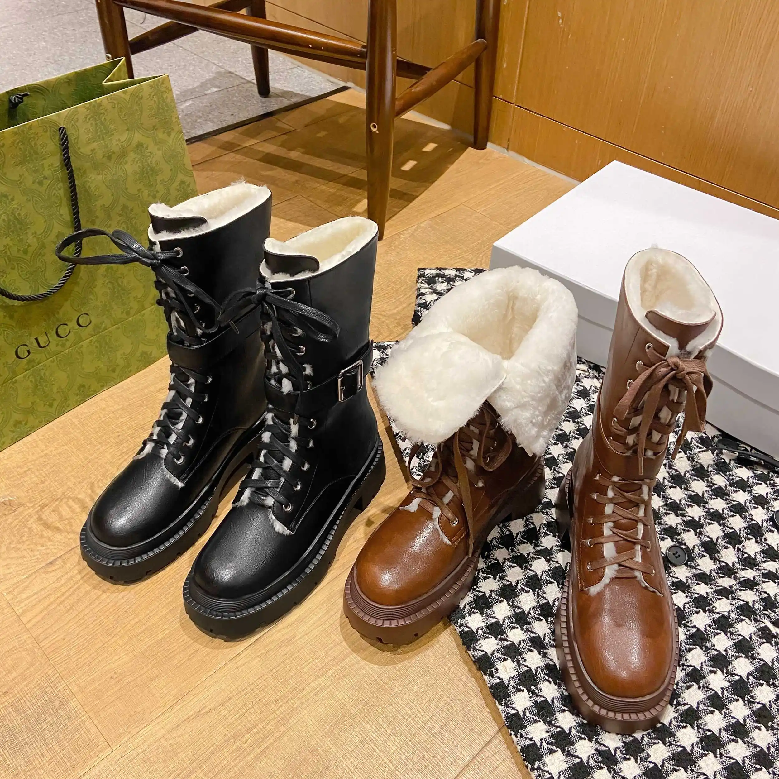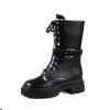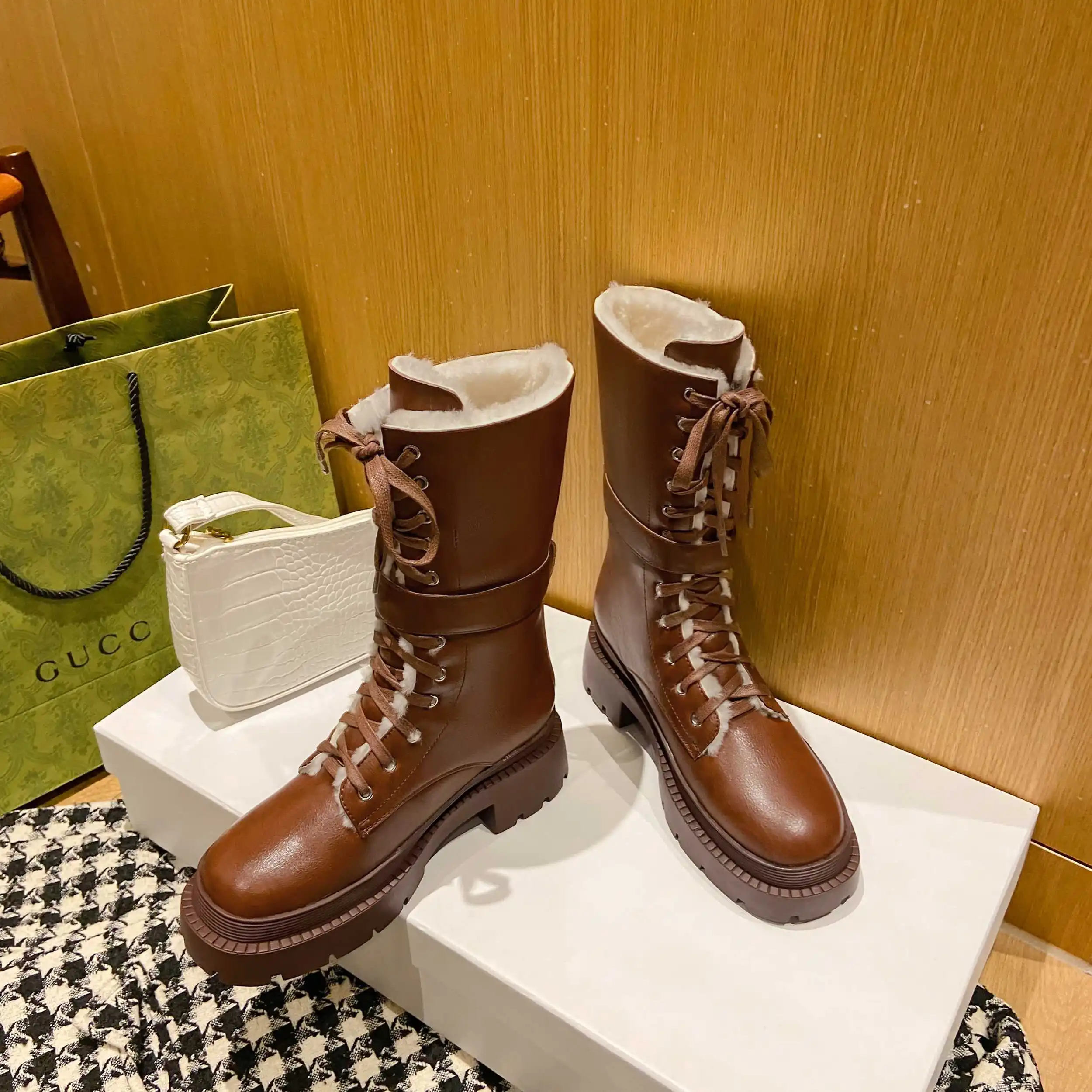 Krazing Pot Cold-resistant Cow Split Leather Round Toe Thick Bottom Snow Boots Punk Winter Keep Warm Fur Fashion Mid-calf Boots