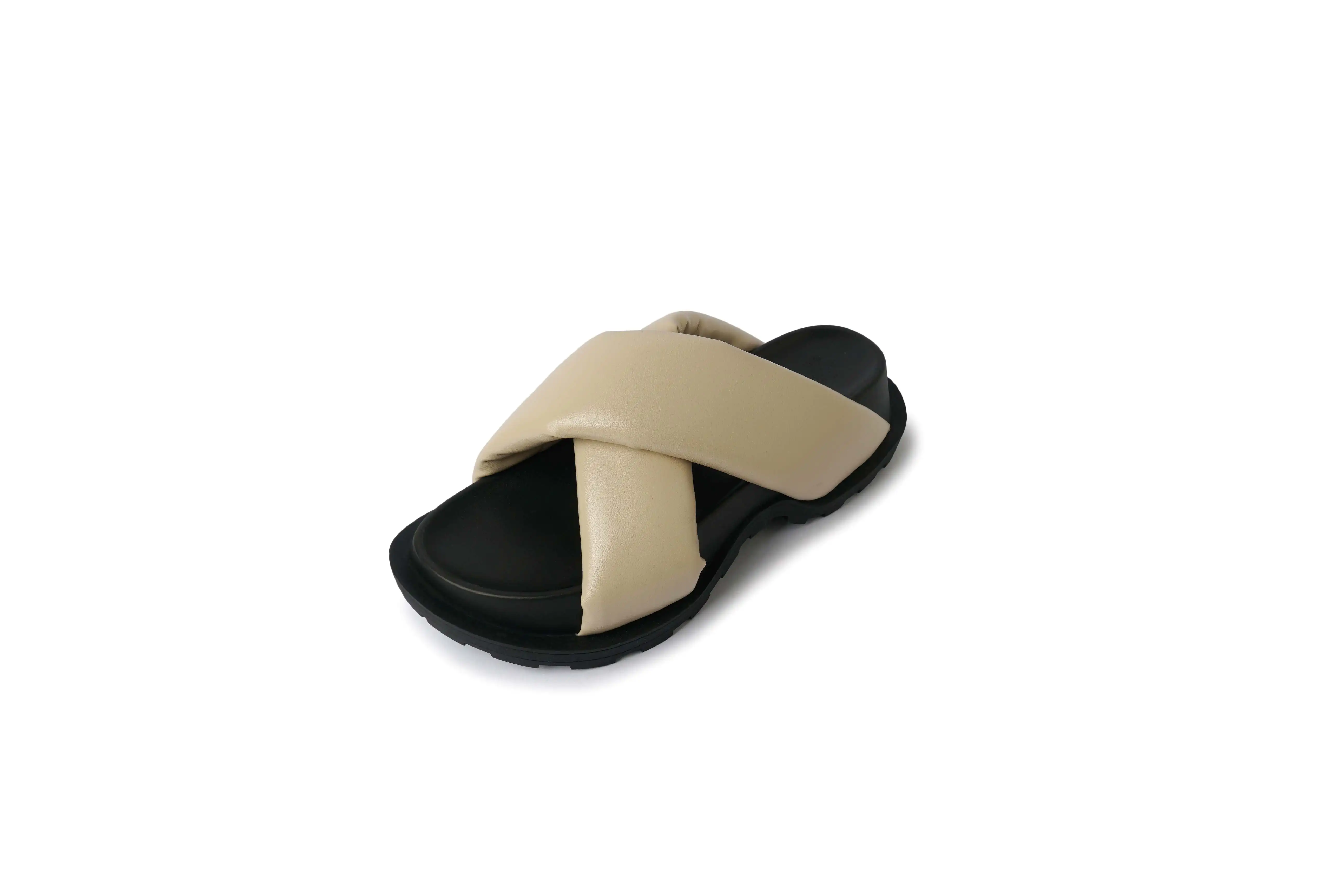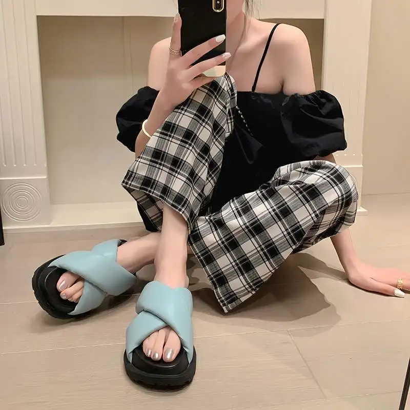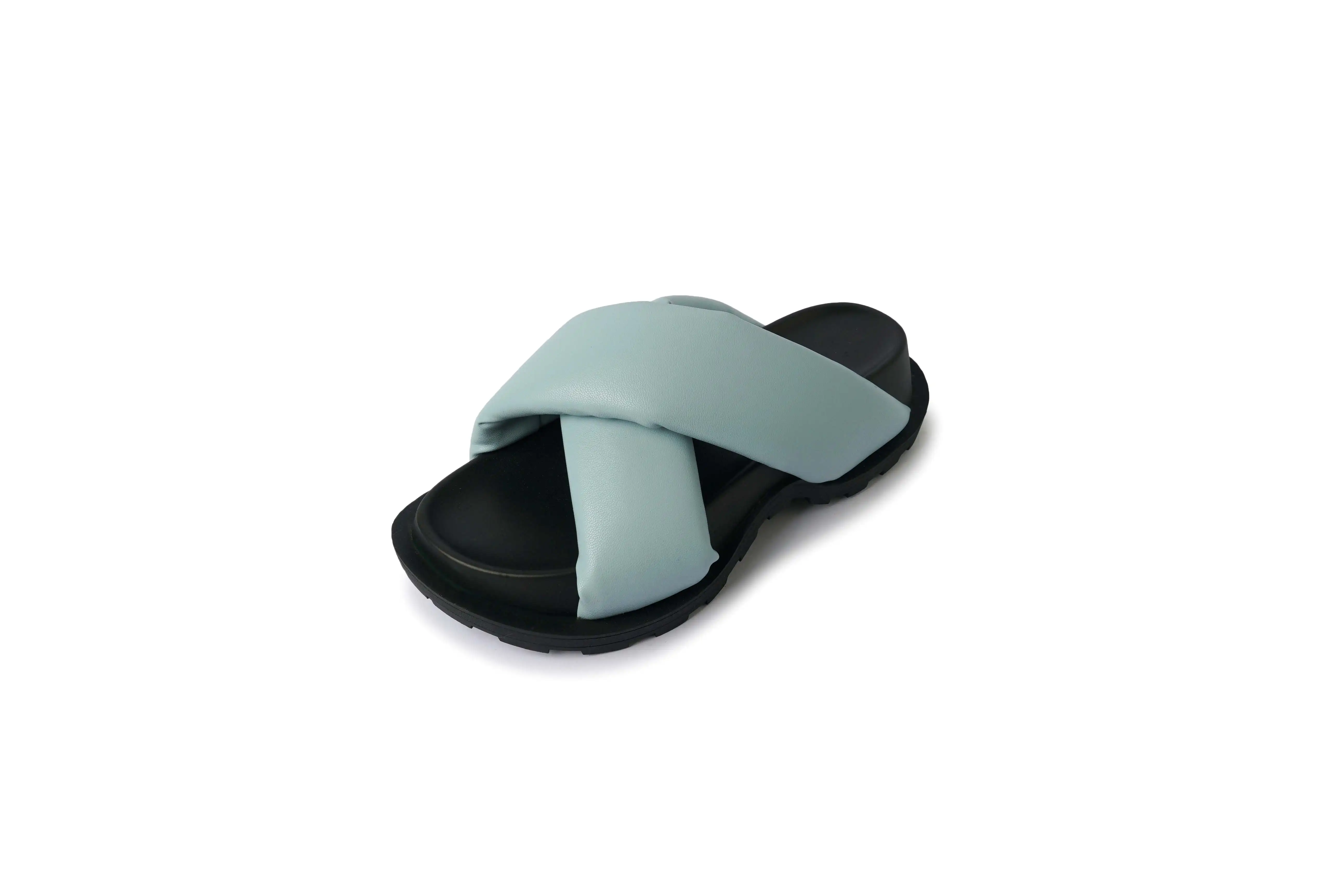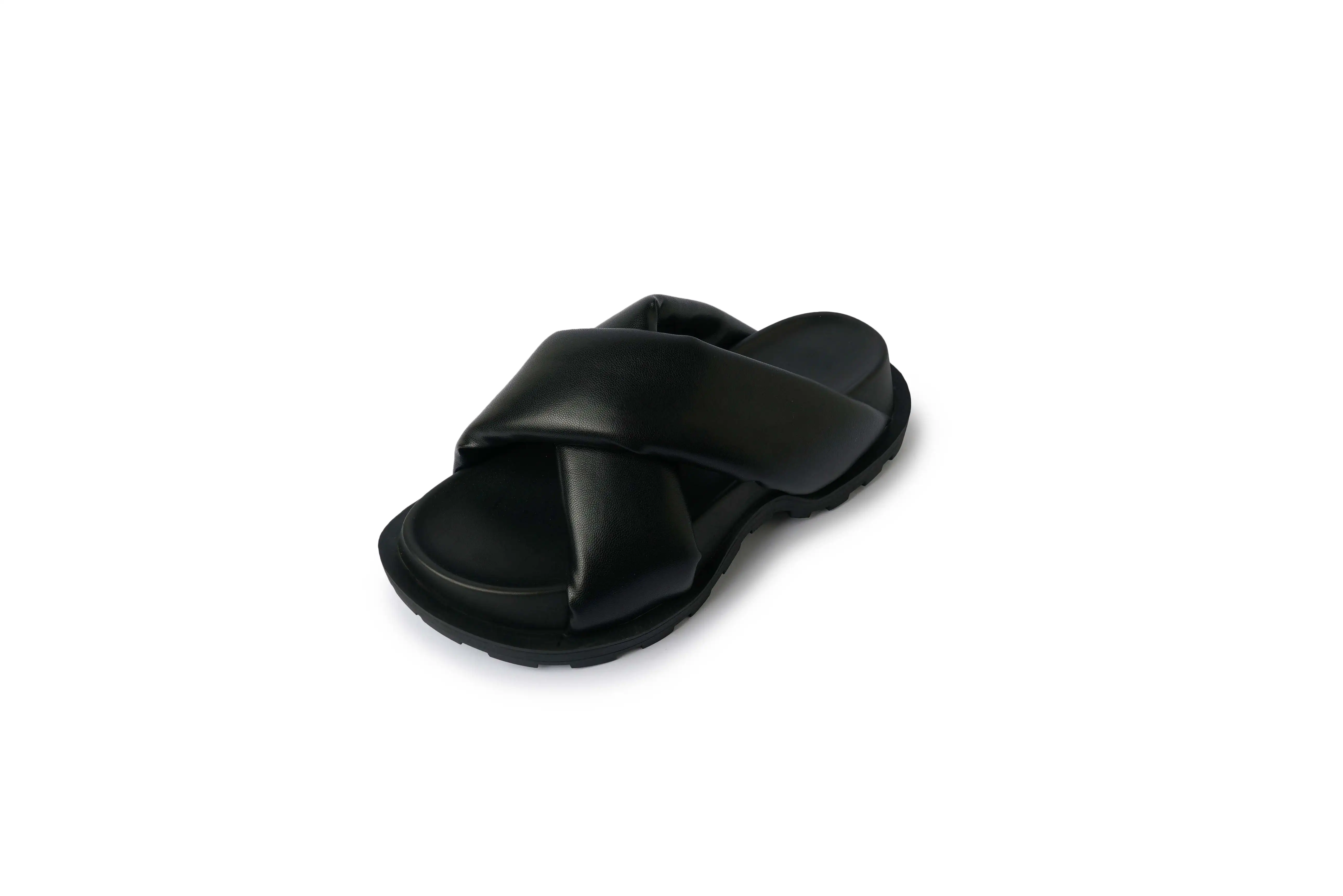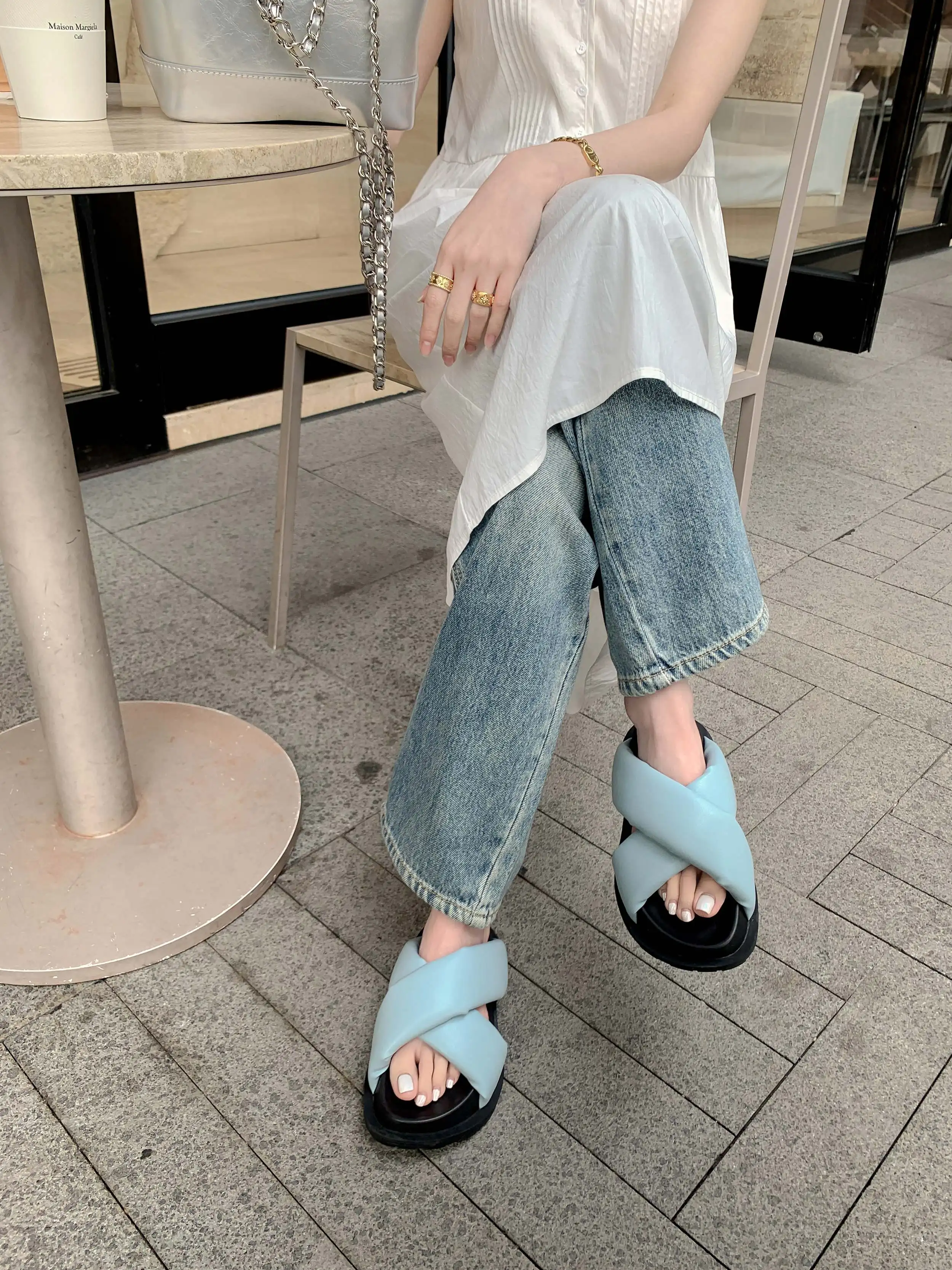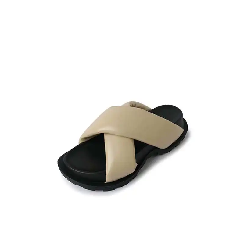Krazing Pot Fashion Sheep Leather Med Heels Mules Flat Platform Slingback Summer Beach Shoes Dating Women Cozy Outside Slippers