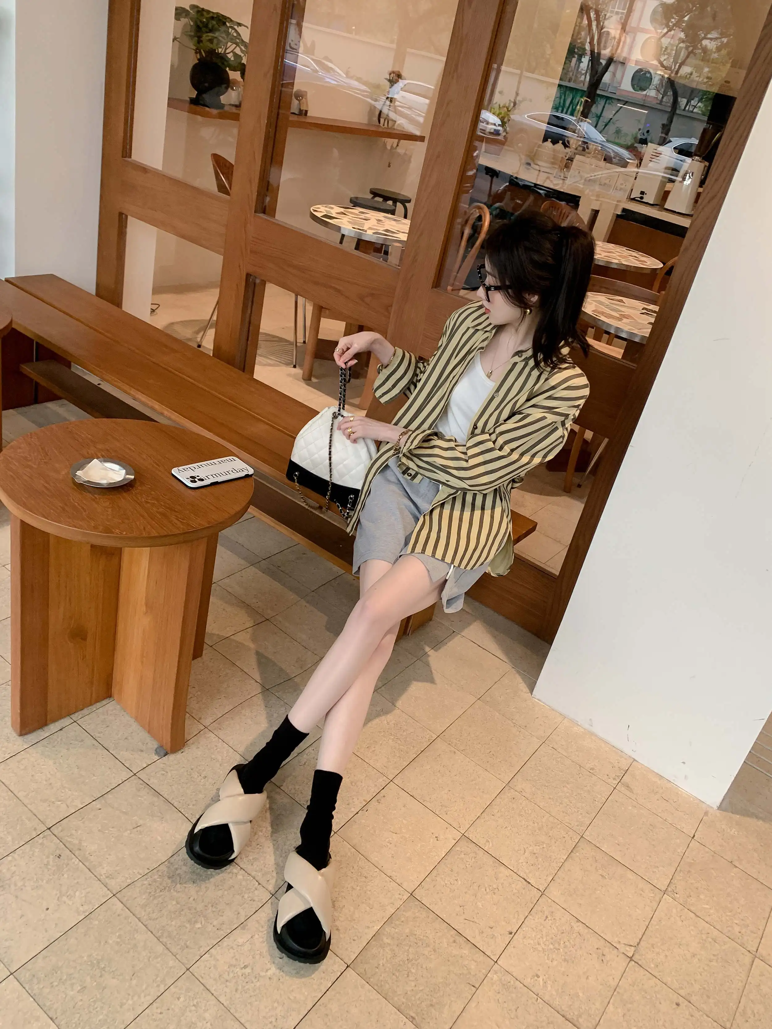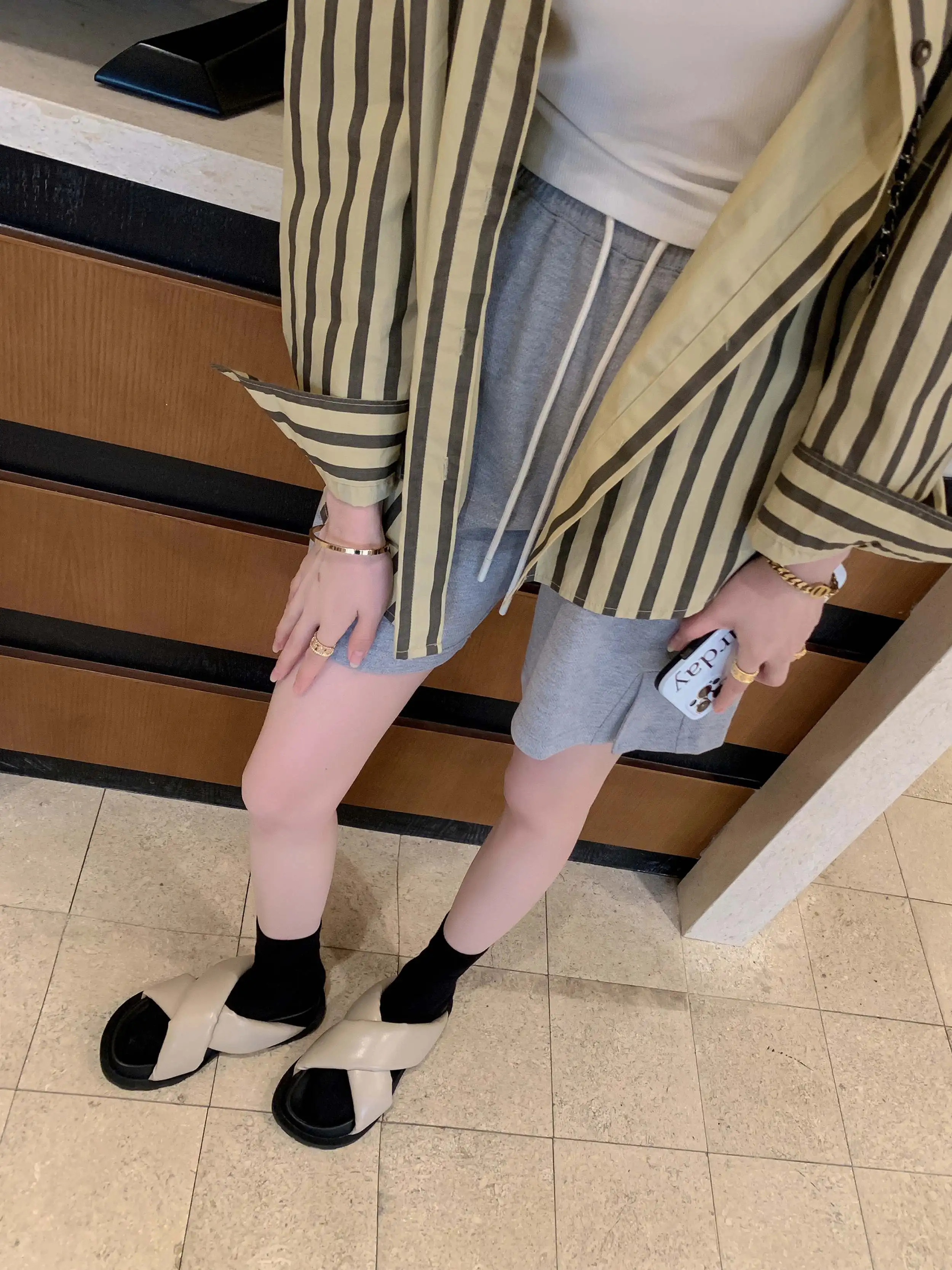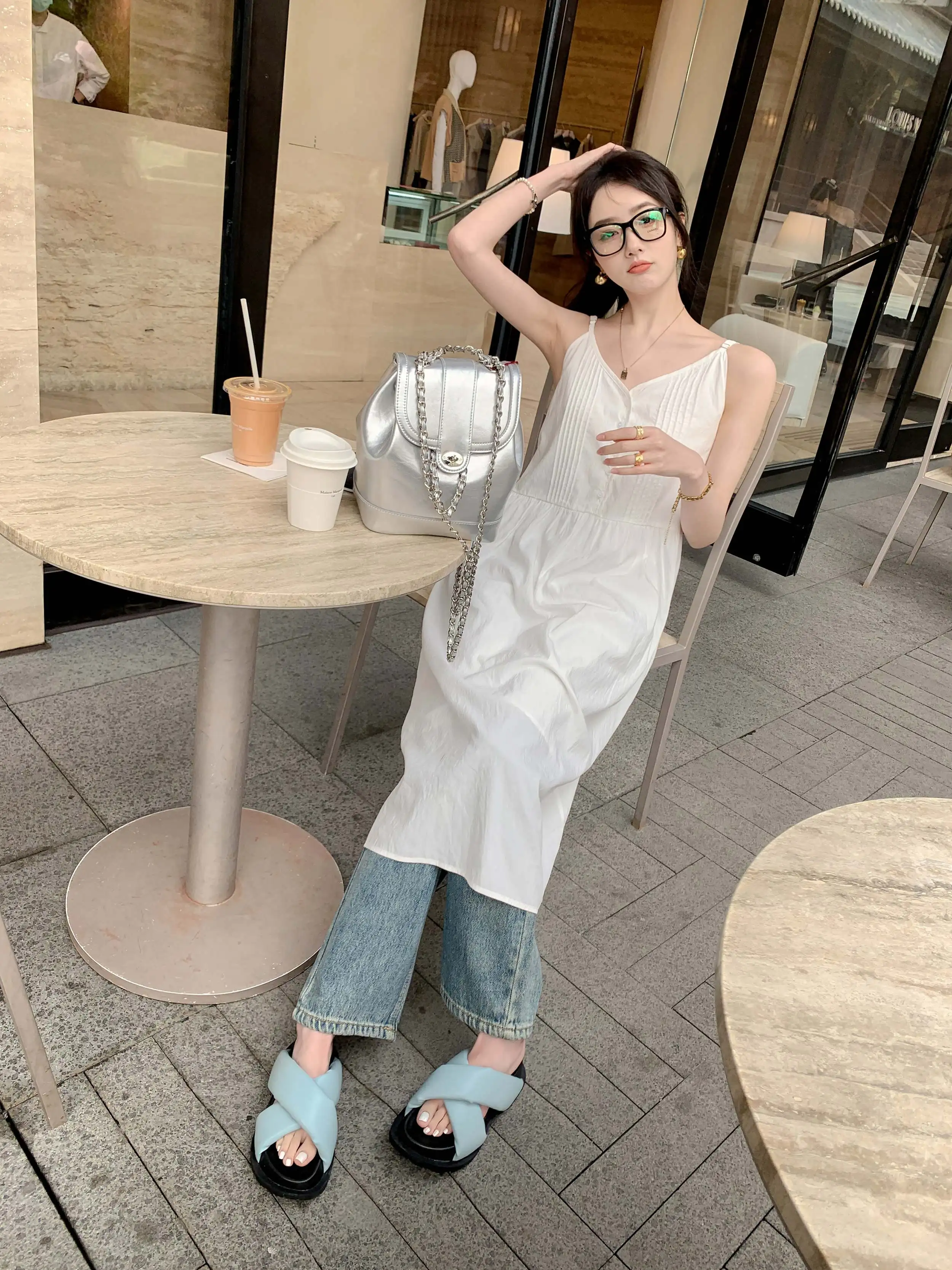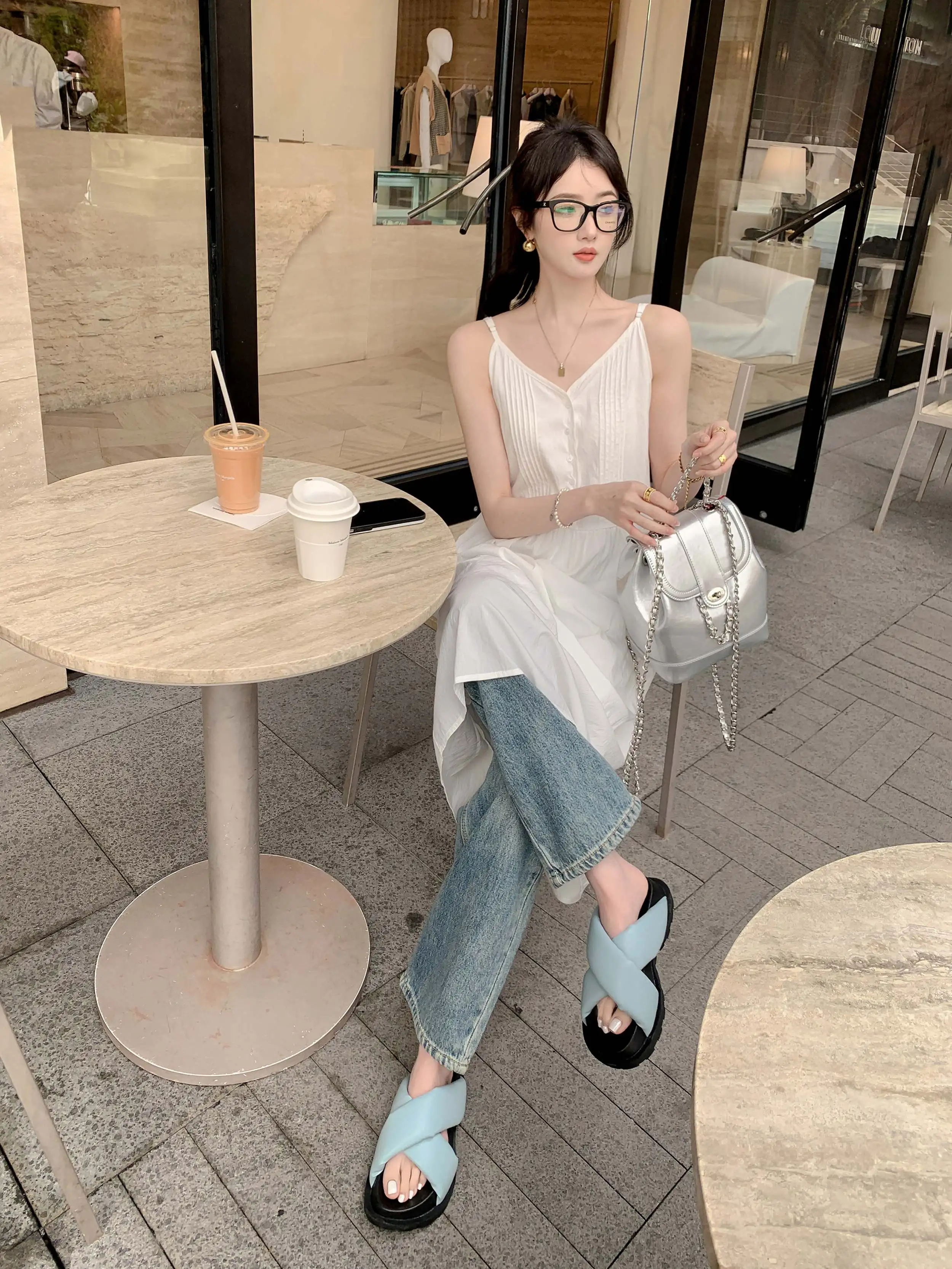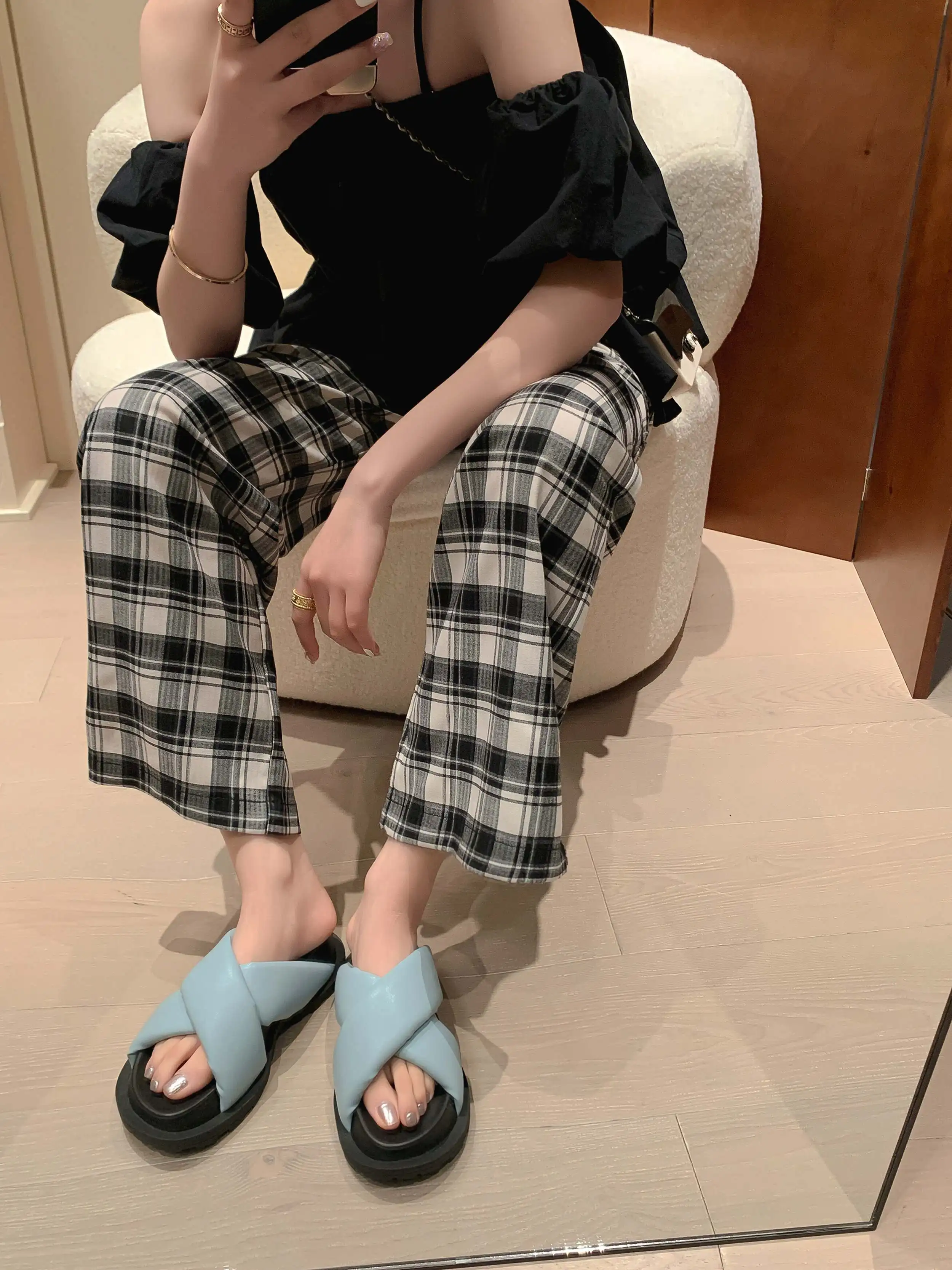 Krazing Pot Fashion Sheep Leather Med Heels Mules Flat Platform Slingback Summer Beach Shoes Dating Women Cozy Outside Slippers