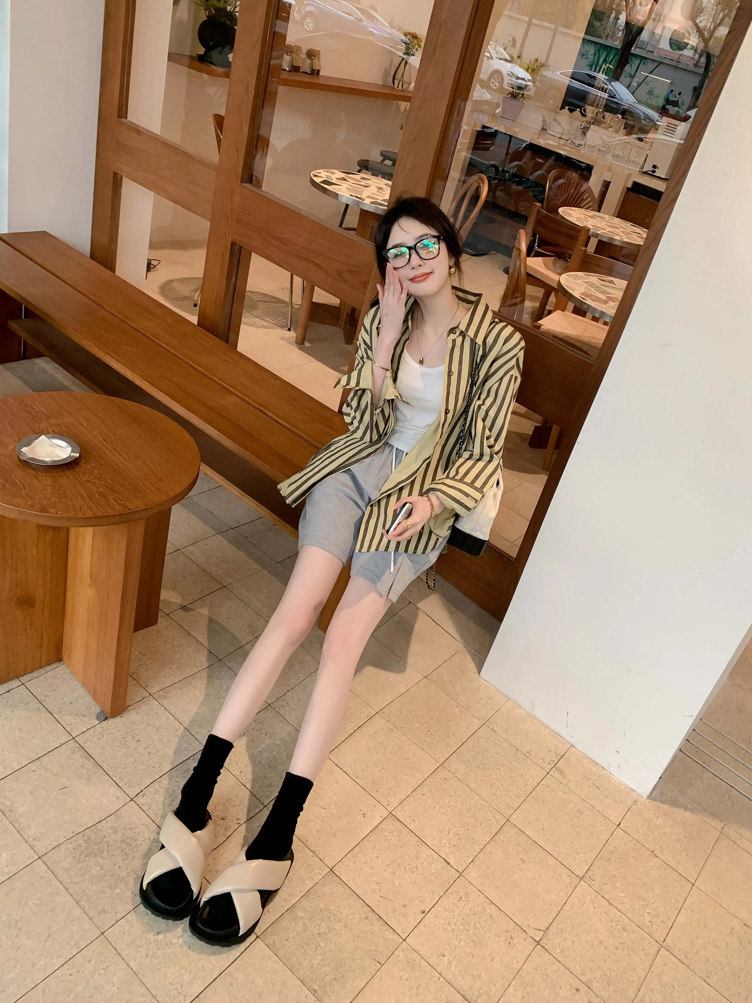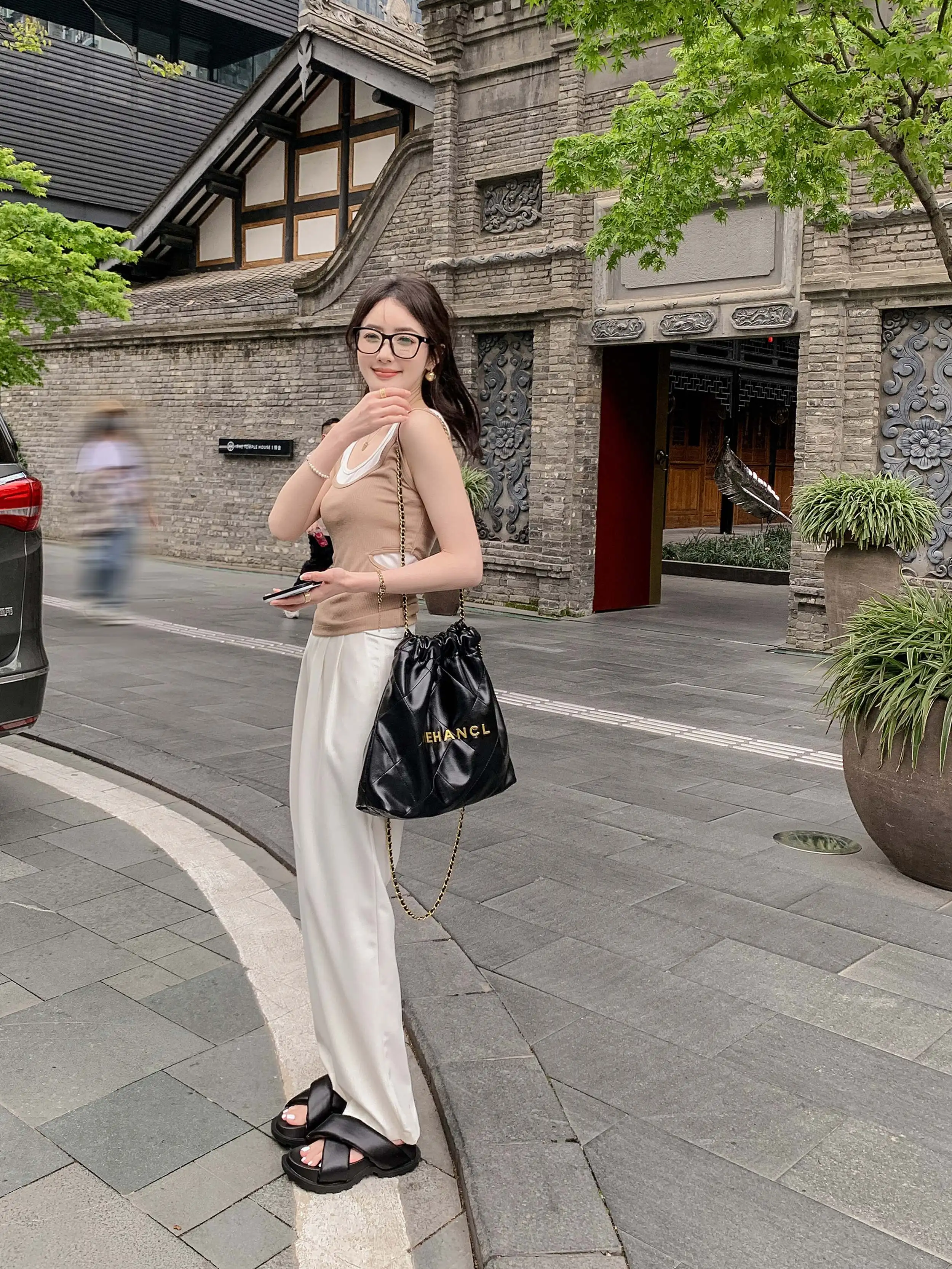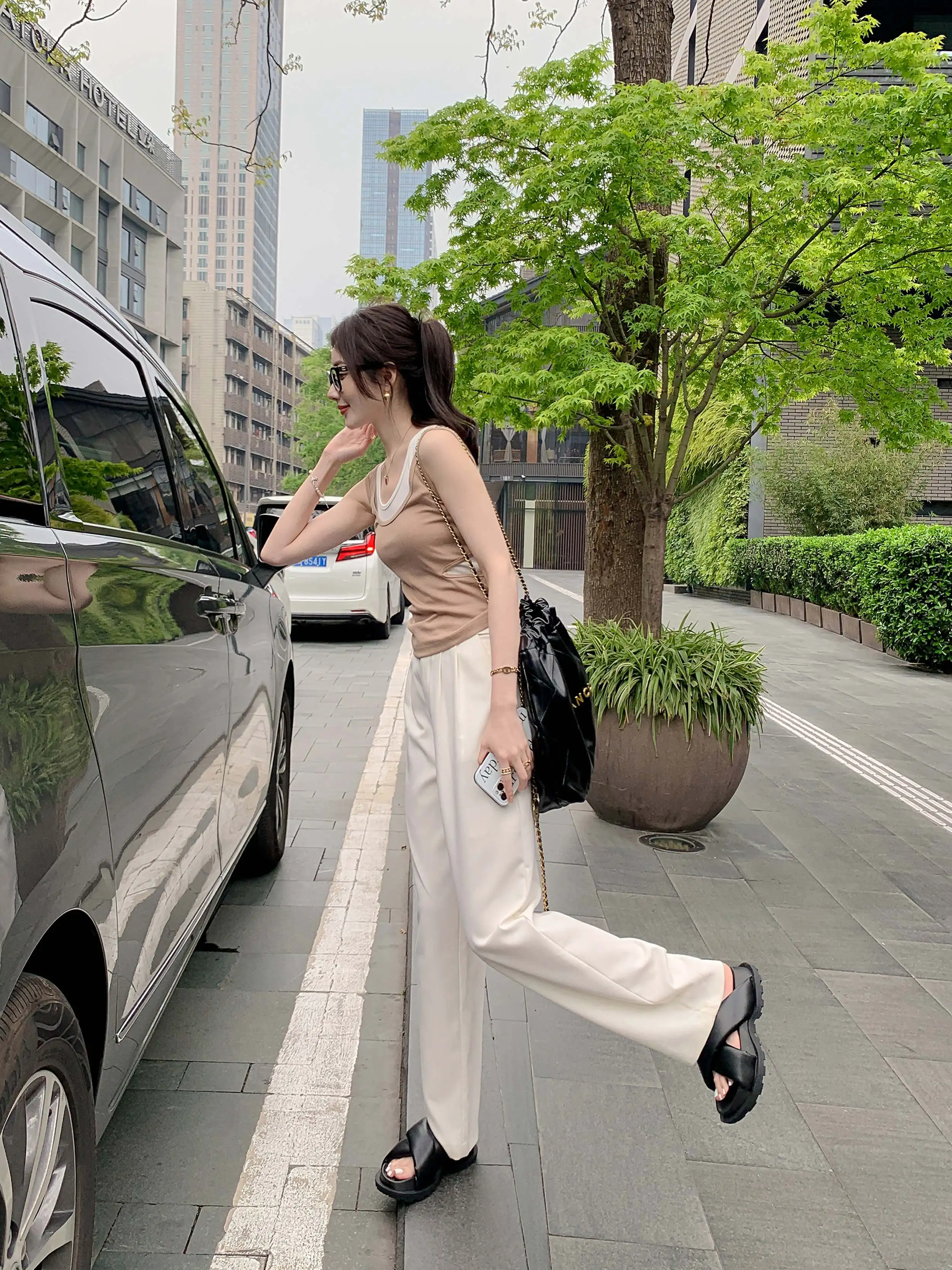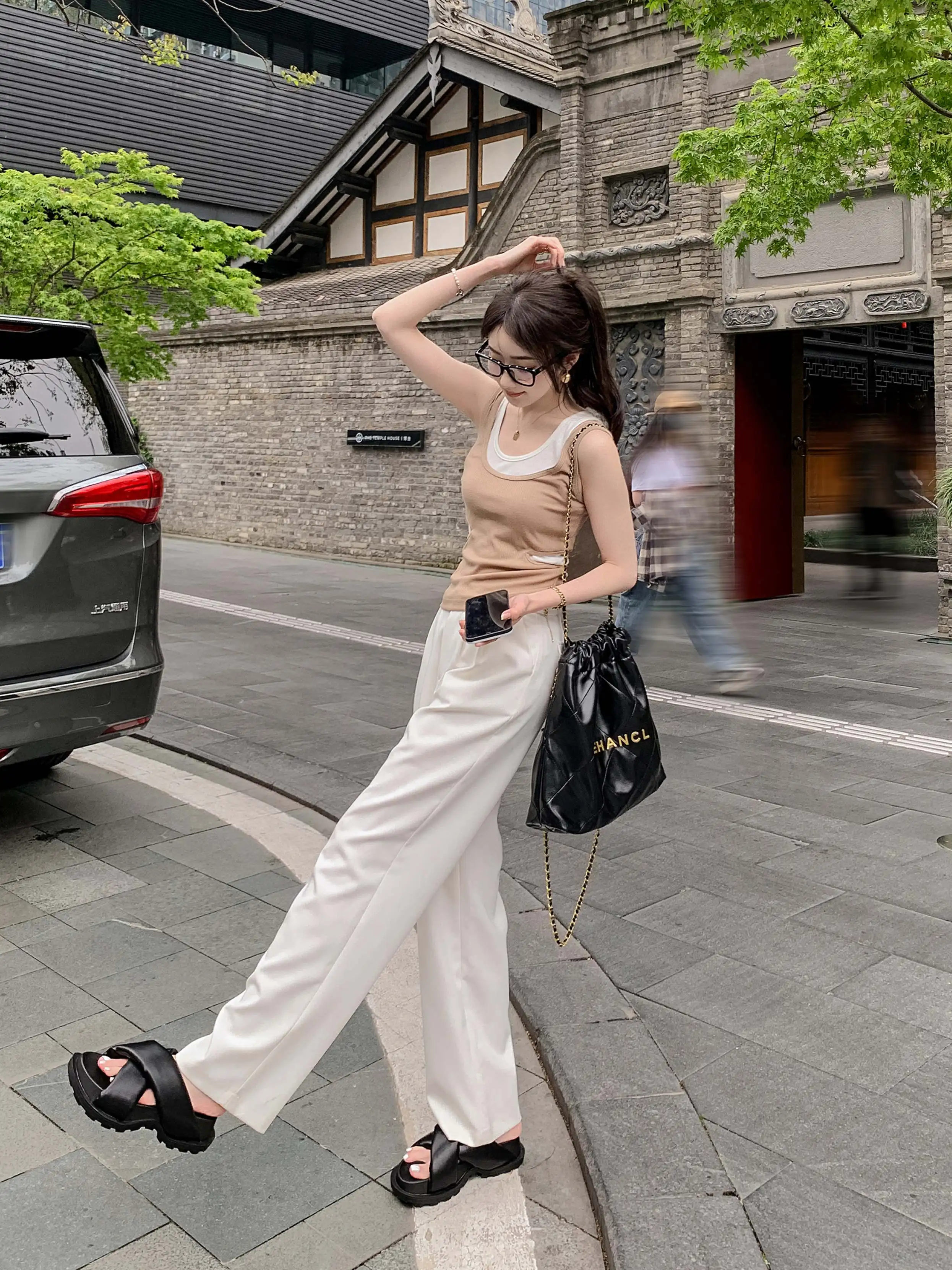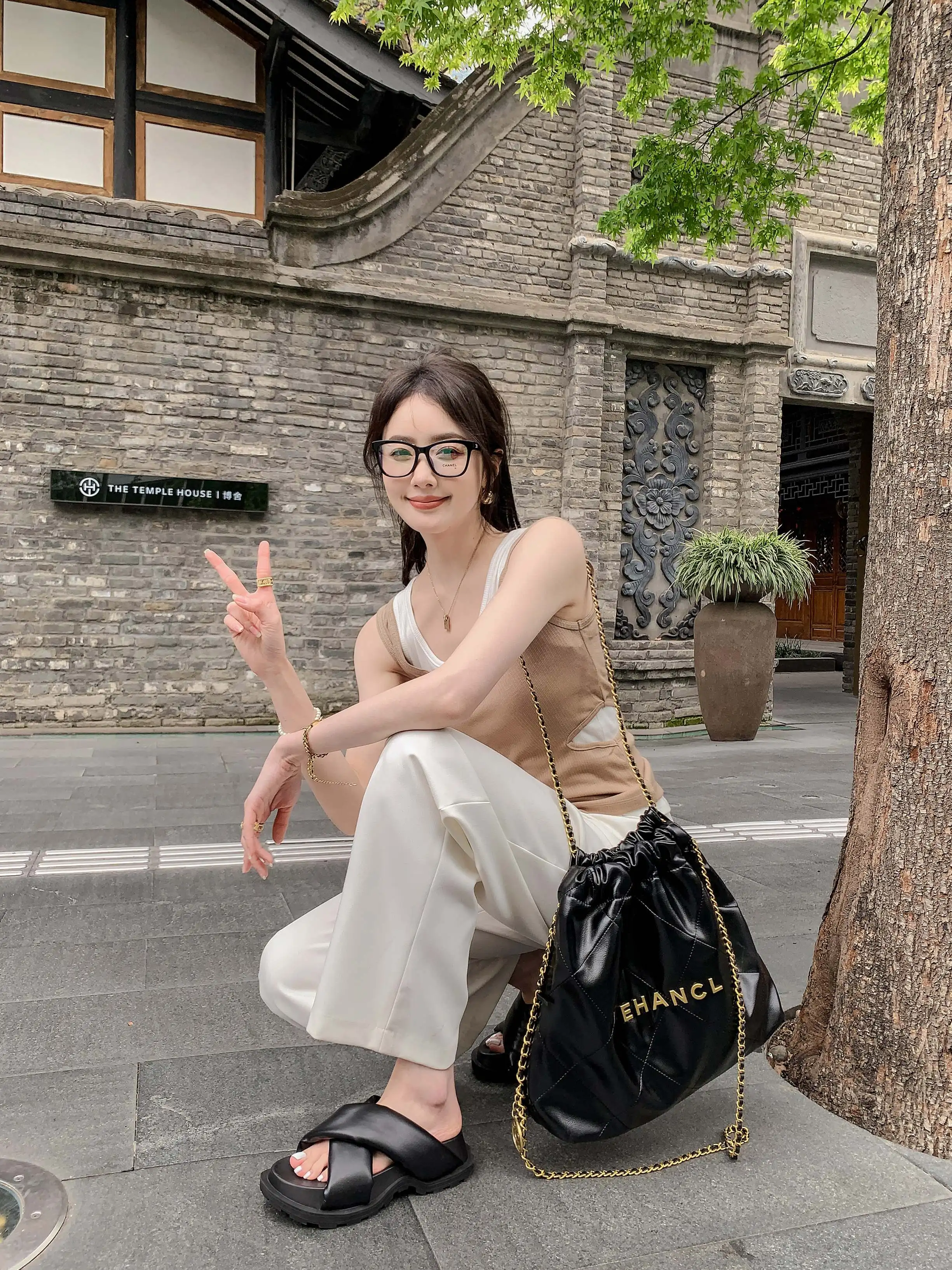 Krazing Pot Fashion Sheep Leather Med Heels Mules Flat Platform Slingback Summer Beach Shoes Dating Women Cozy Outside Slippers