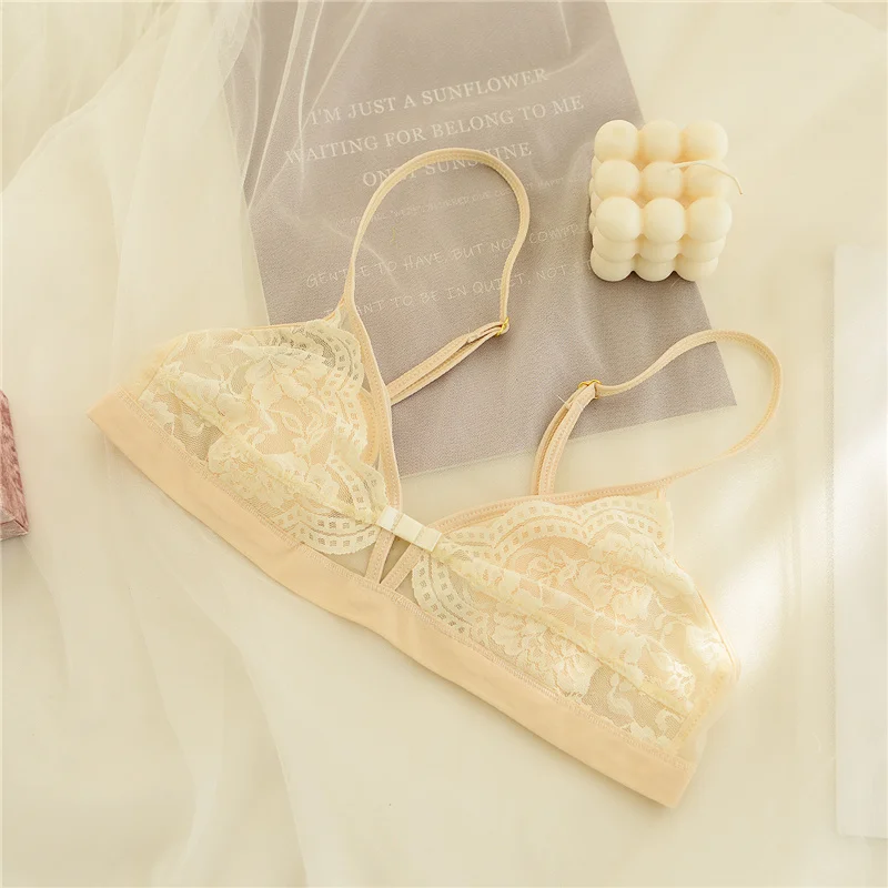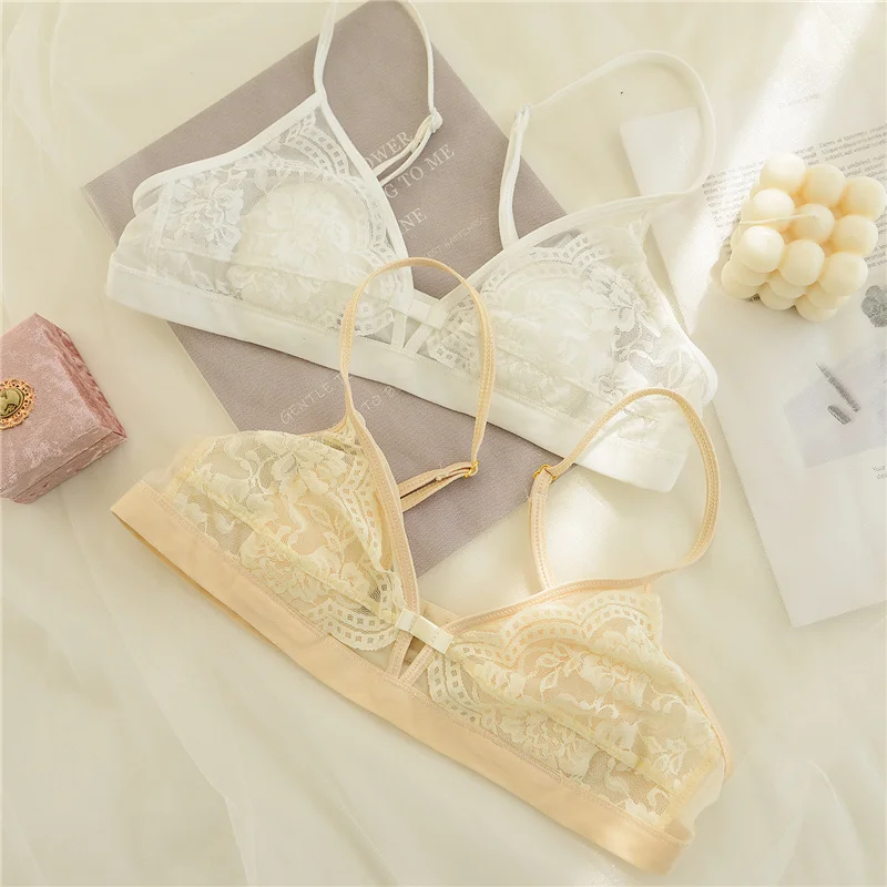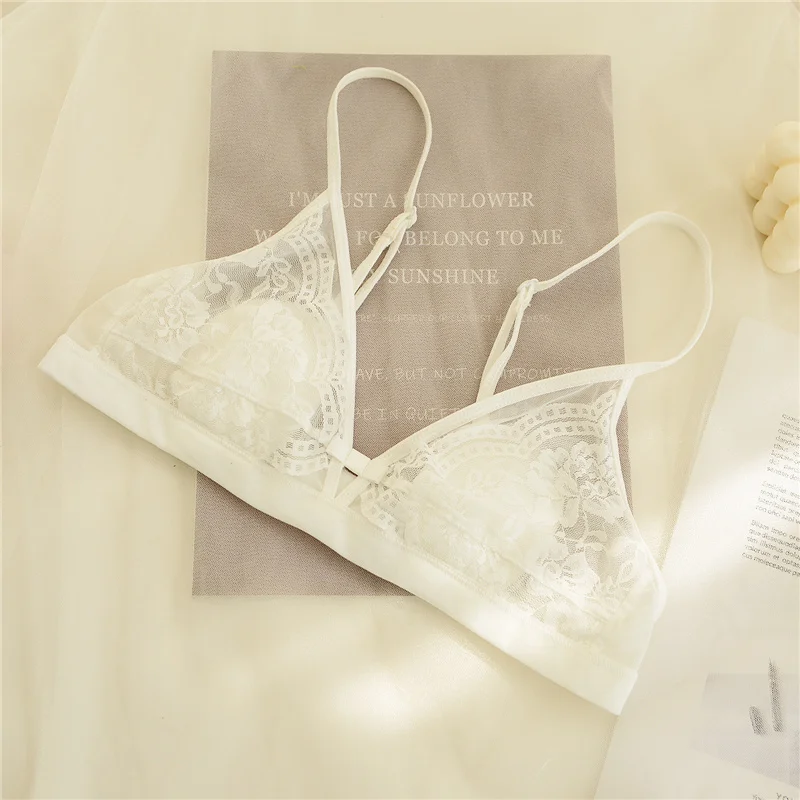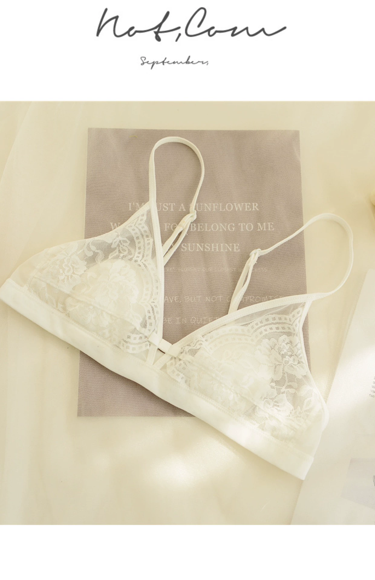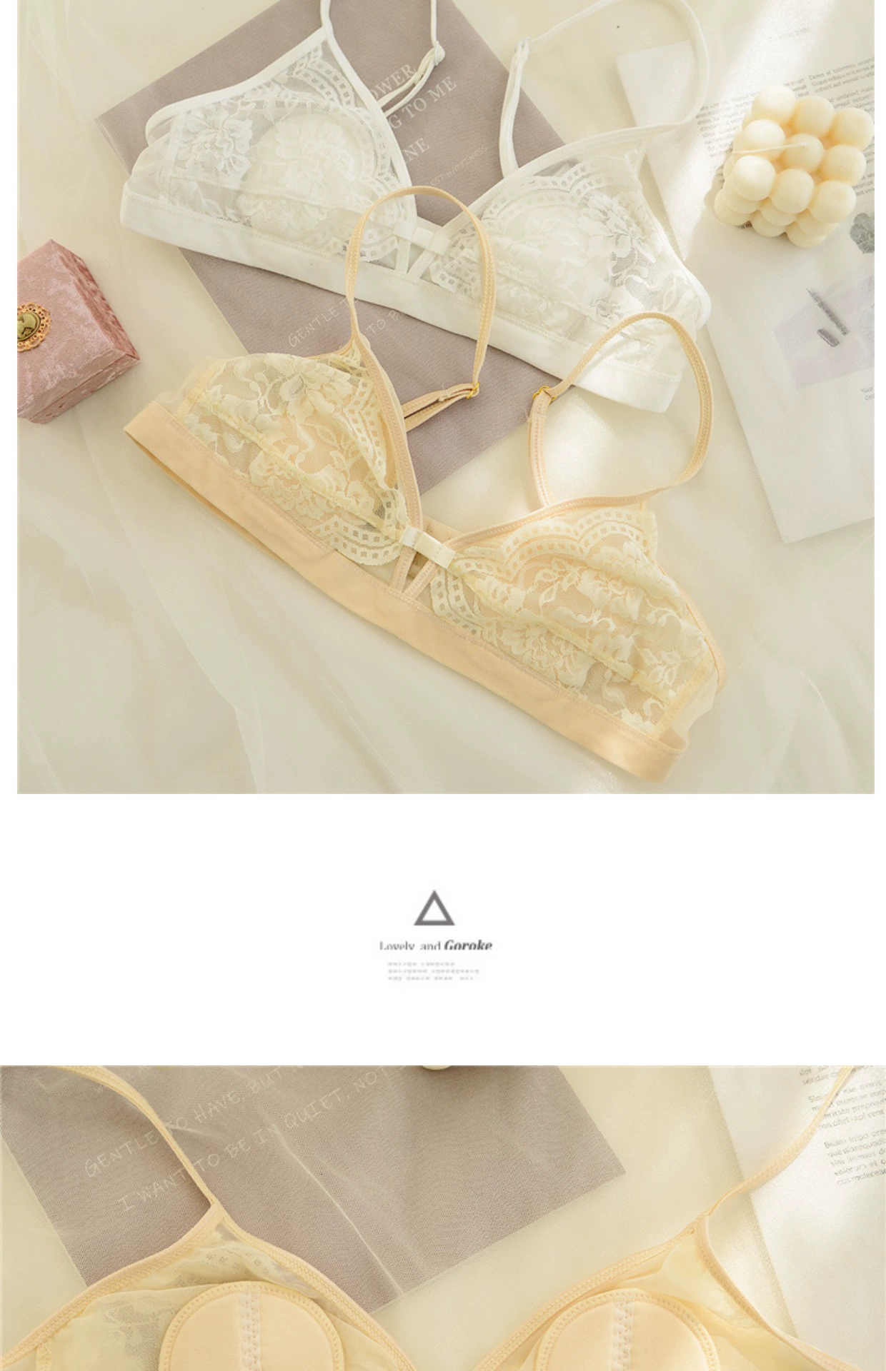 Lace no steel ring lingerie triangle cup big breasts small girl bra thin comfortable underwear summer bralette