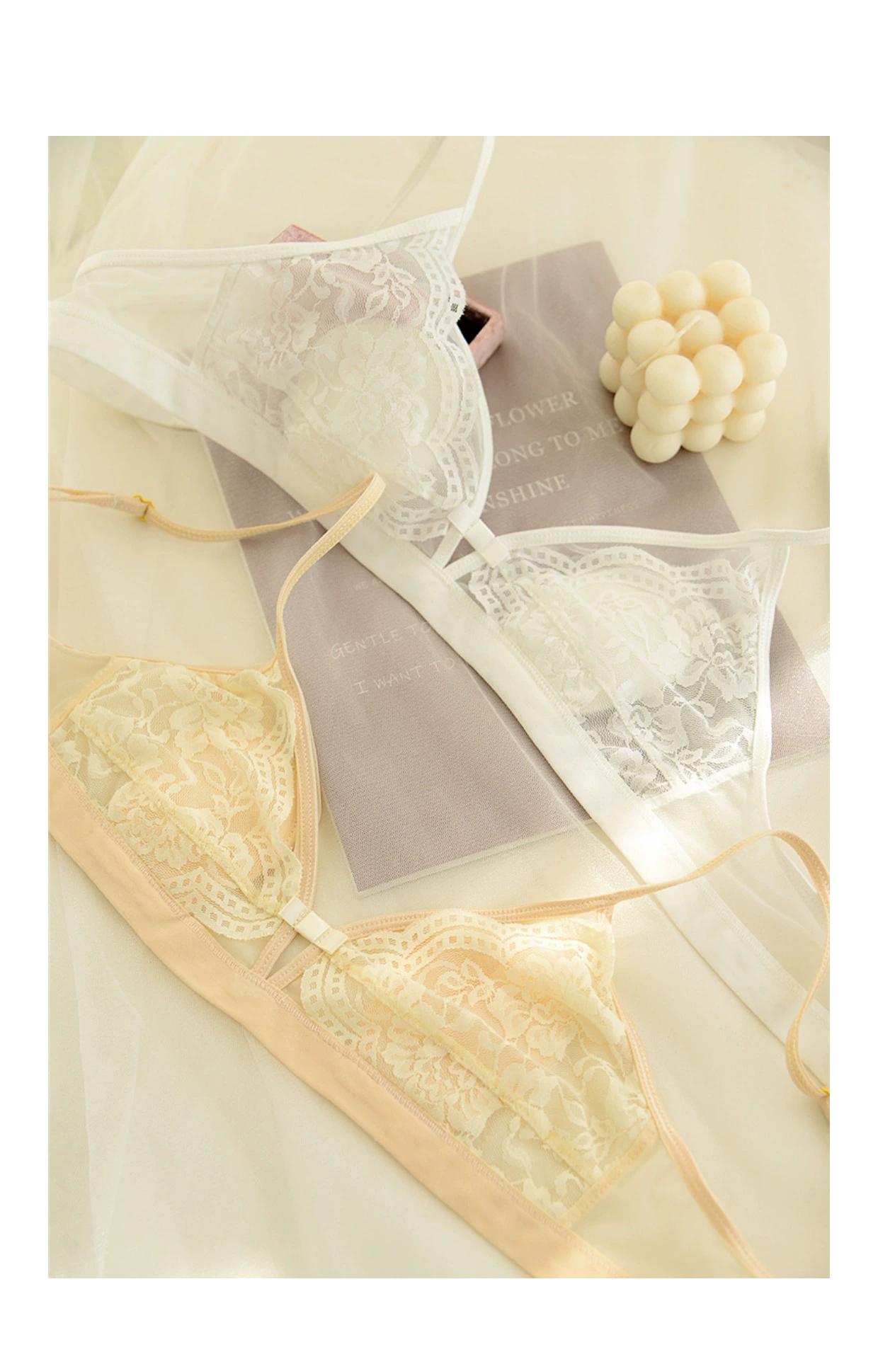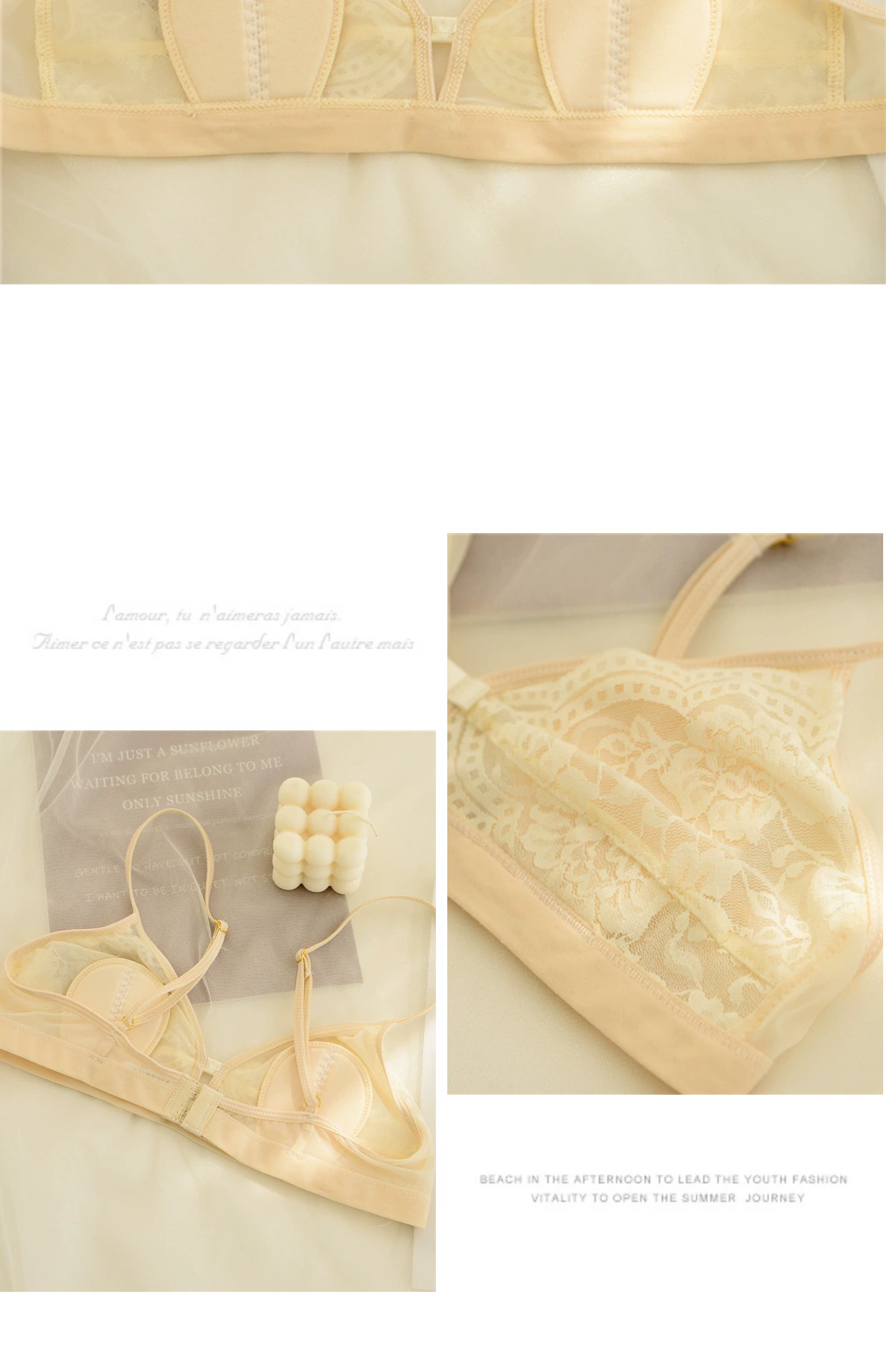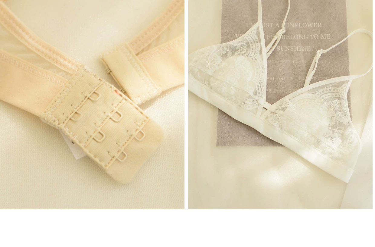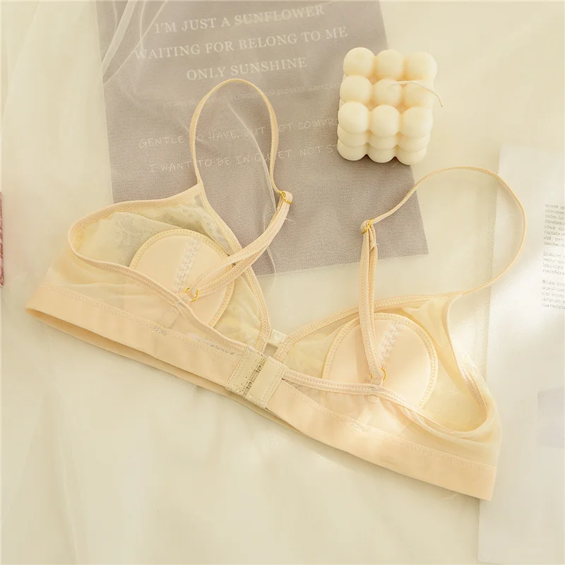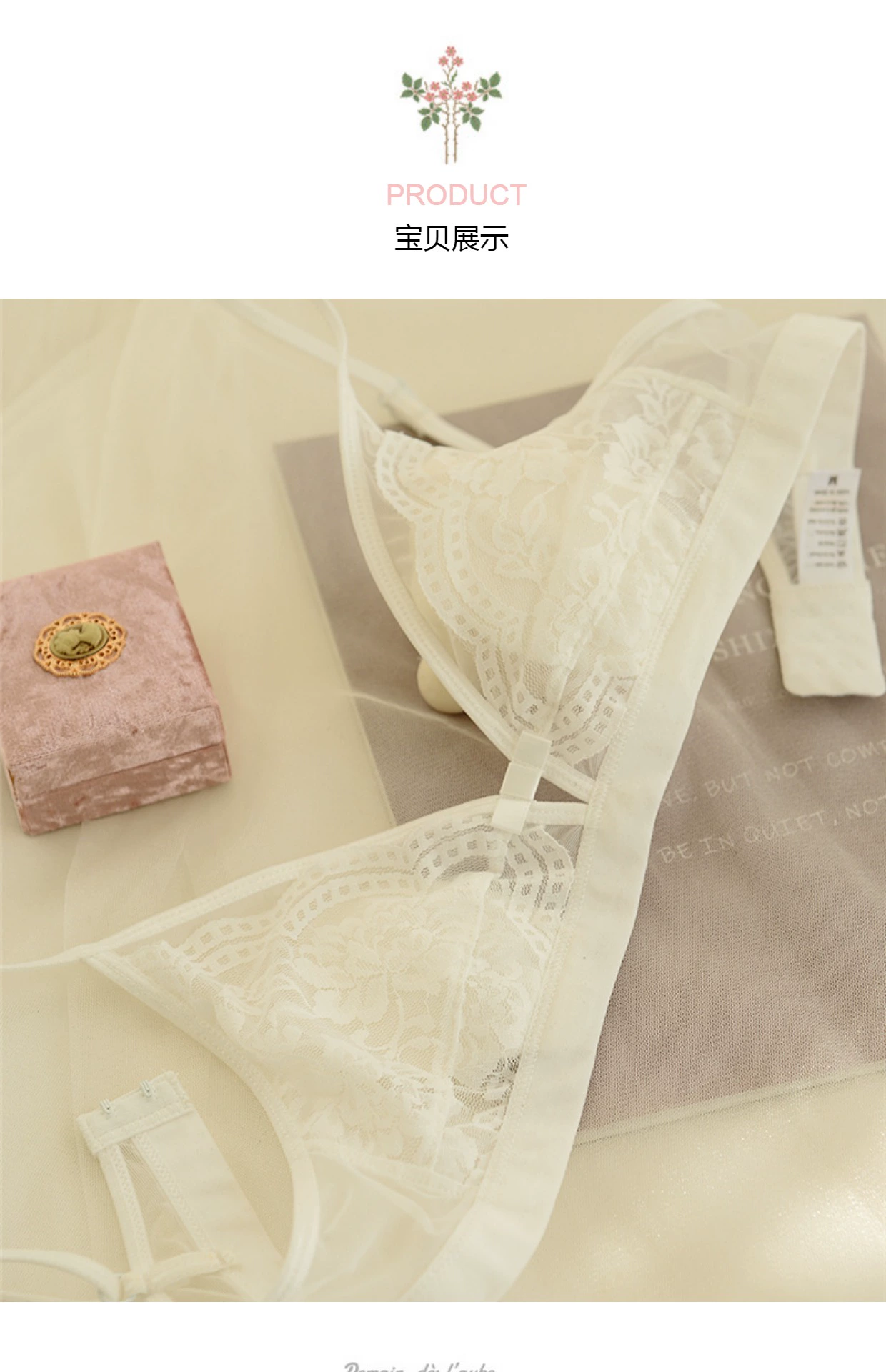 Lace no steel ring lingerie triangle cup big breasts small girl bra thin comfortable underwear summer bralette
