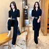 Ladies Solid Jumpsuit Women’s Summer Rompers New Short-Sleeved Waist Was Thin Wide-Leg Pant Jumpsuit Green Drape Sweet