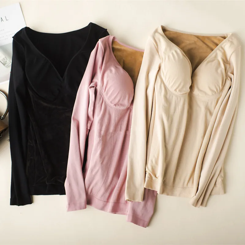 Ladies Winter Warm Underwear Female Thick Long Sleeved Cashmere Modal With Bra Autumn Clothes Thermal Body Sculpting Shapers