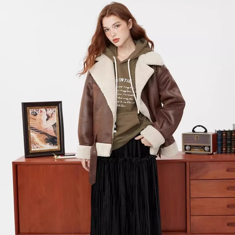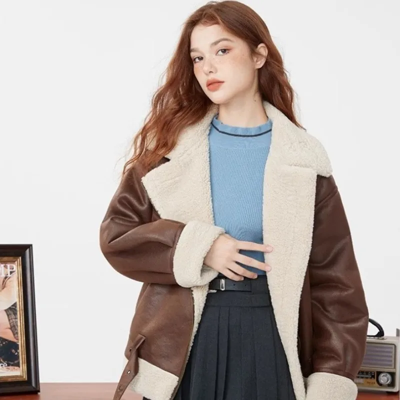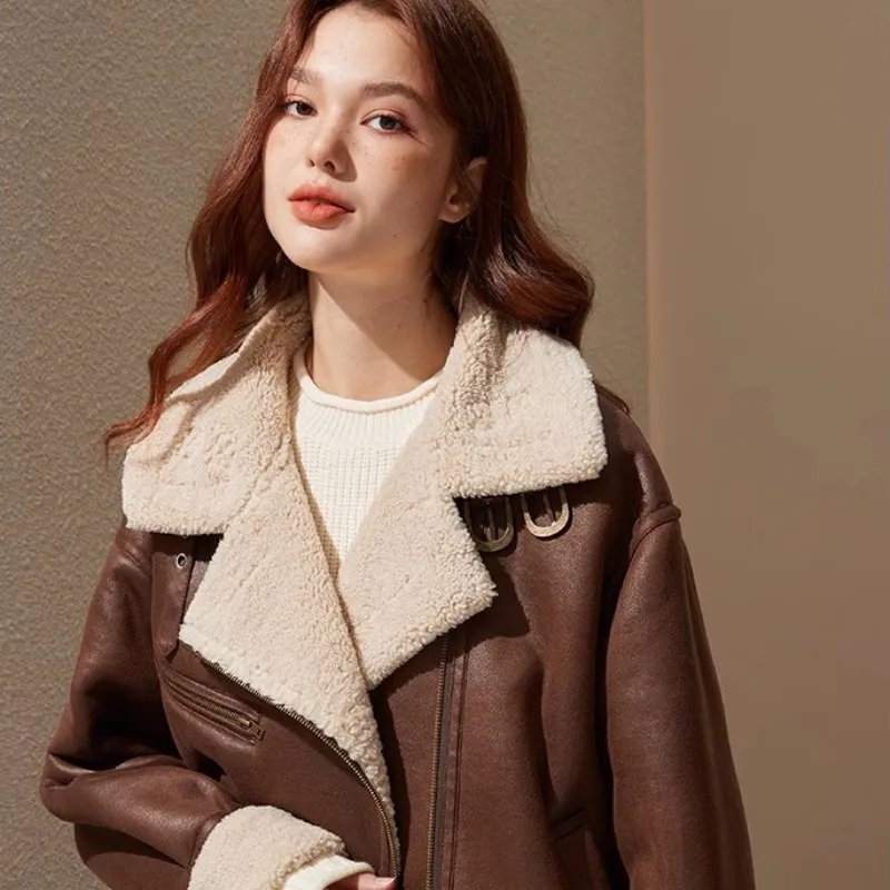 Lamb Fur Coat For Women In 2023 Winter New Fur Integrated Motorcycle Wear Short Loose Plush Cotton Jacket