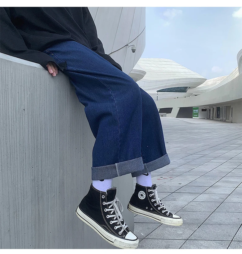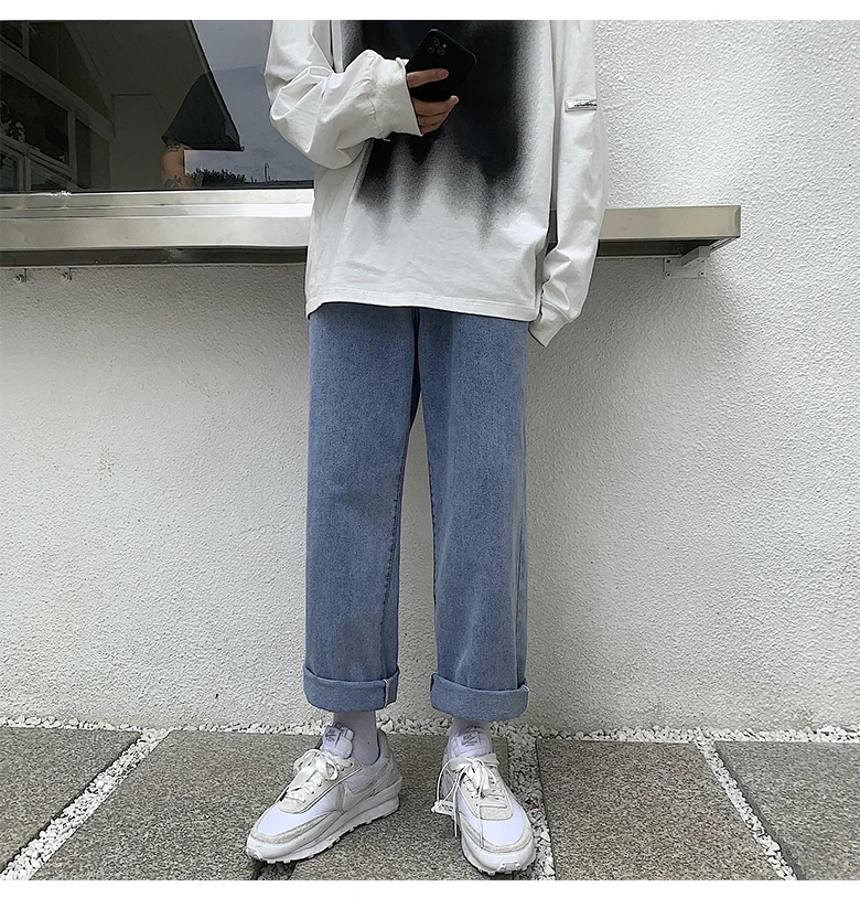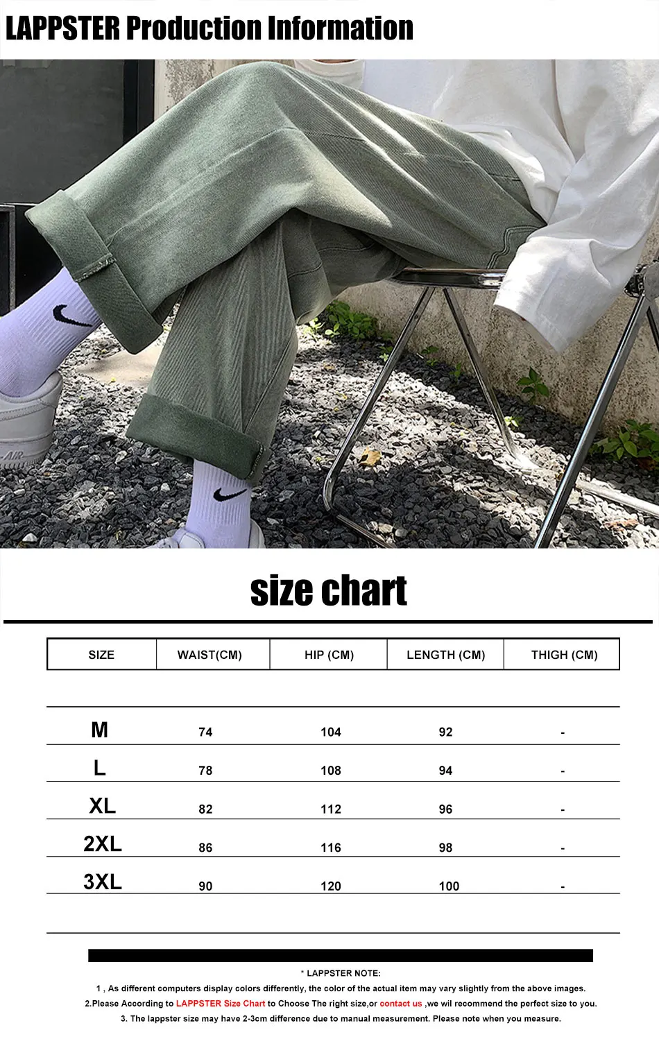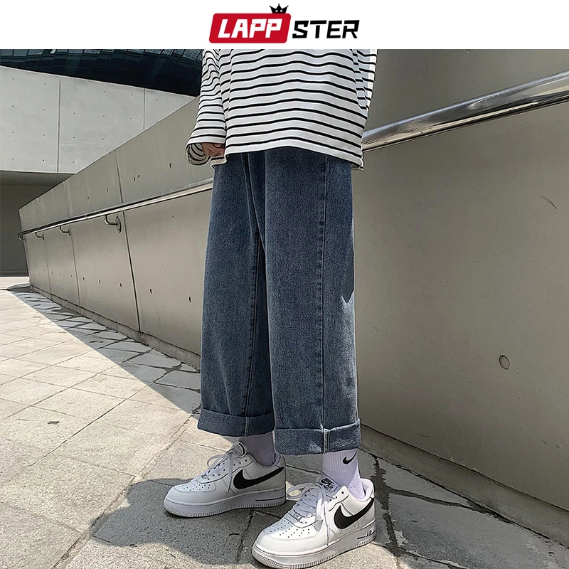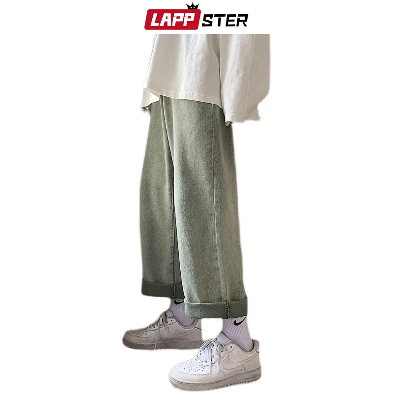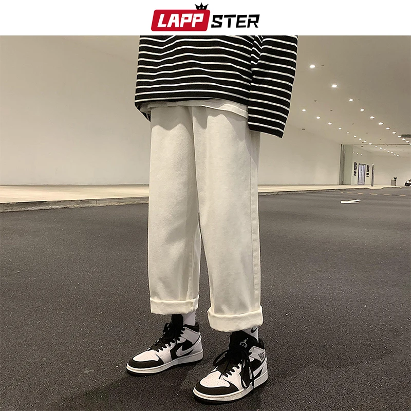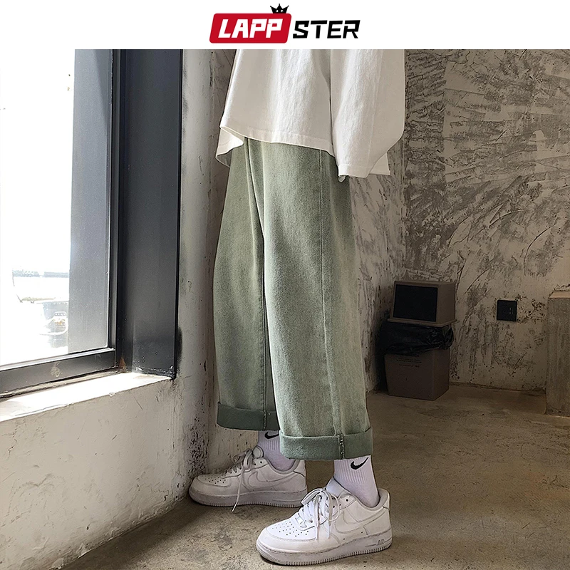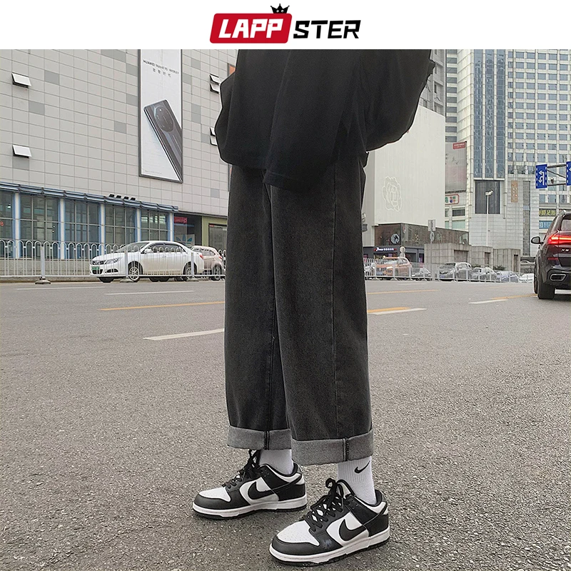 LAPPSTER Men Solid Baggy Jeans Pants 2023 Mens 7 Colors Korean Fashion Harajuku Denim Trousers Male Wide Leg Black Harem Pants