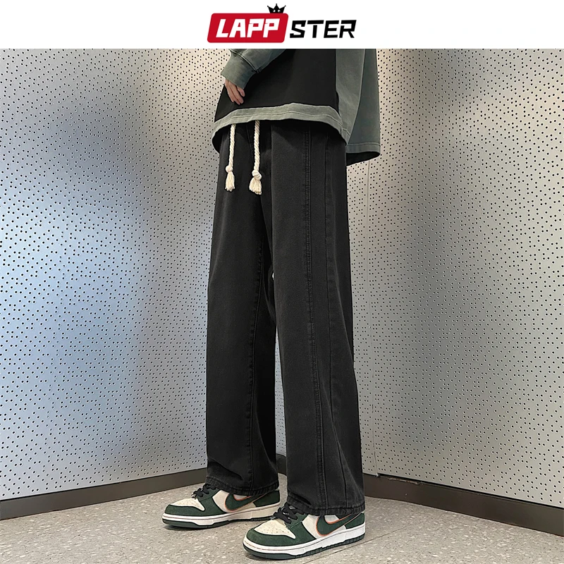 LAPPSTER Patchwork Baggy Jeans Streetwear 2023 Black Jeans 2000s Clothes Y2k Low Rise Jeans Pants Korean Fashions Denim Pants