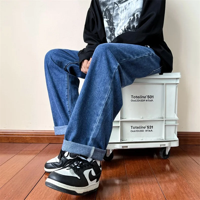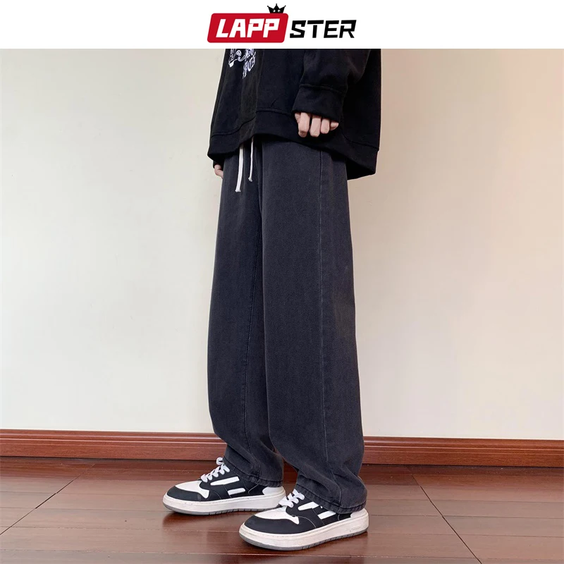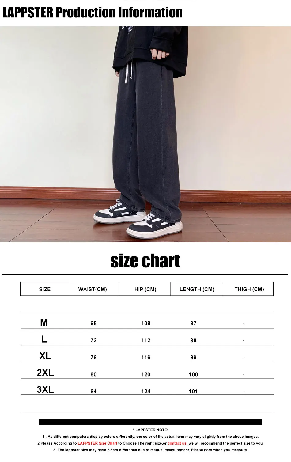LAPPSTER Streetwear Wide Leg Elastic Jeans Pants 2023 Baggy Casual Graphic Denim Trousers High Waist Korean Harajuku Balck Jeans