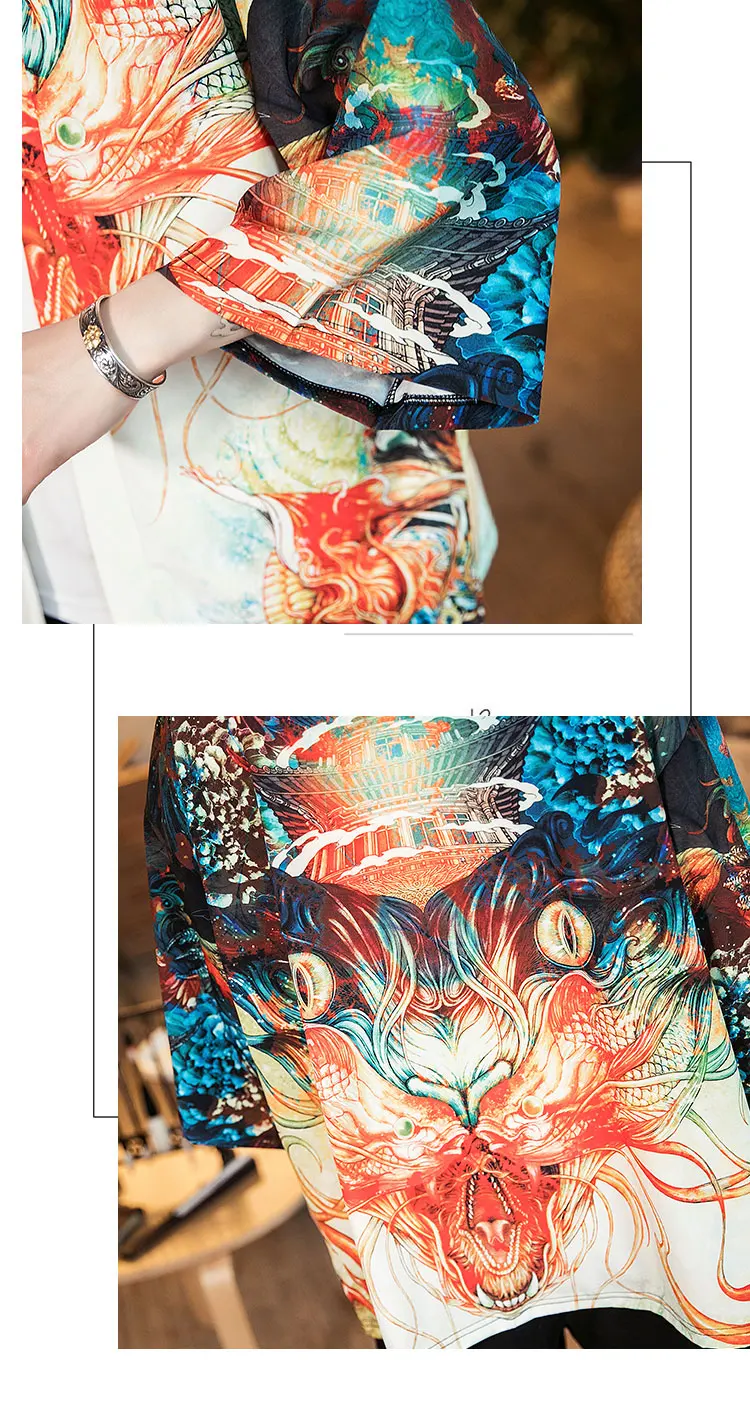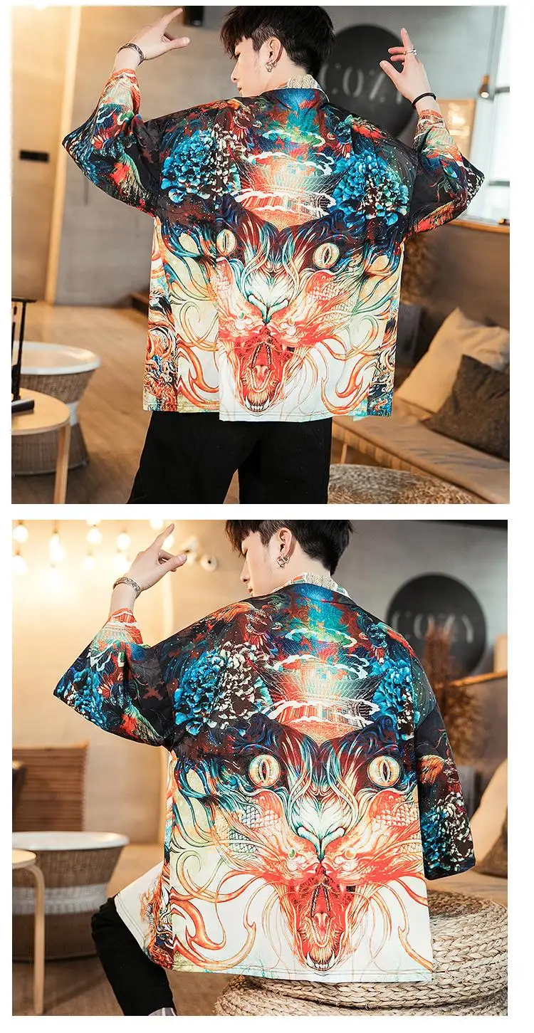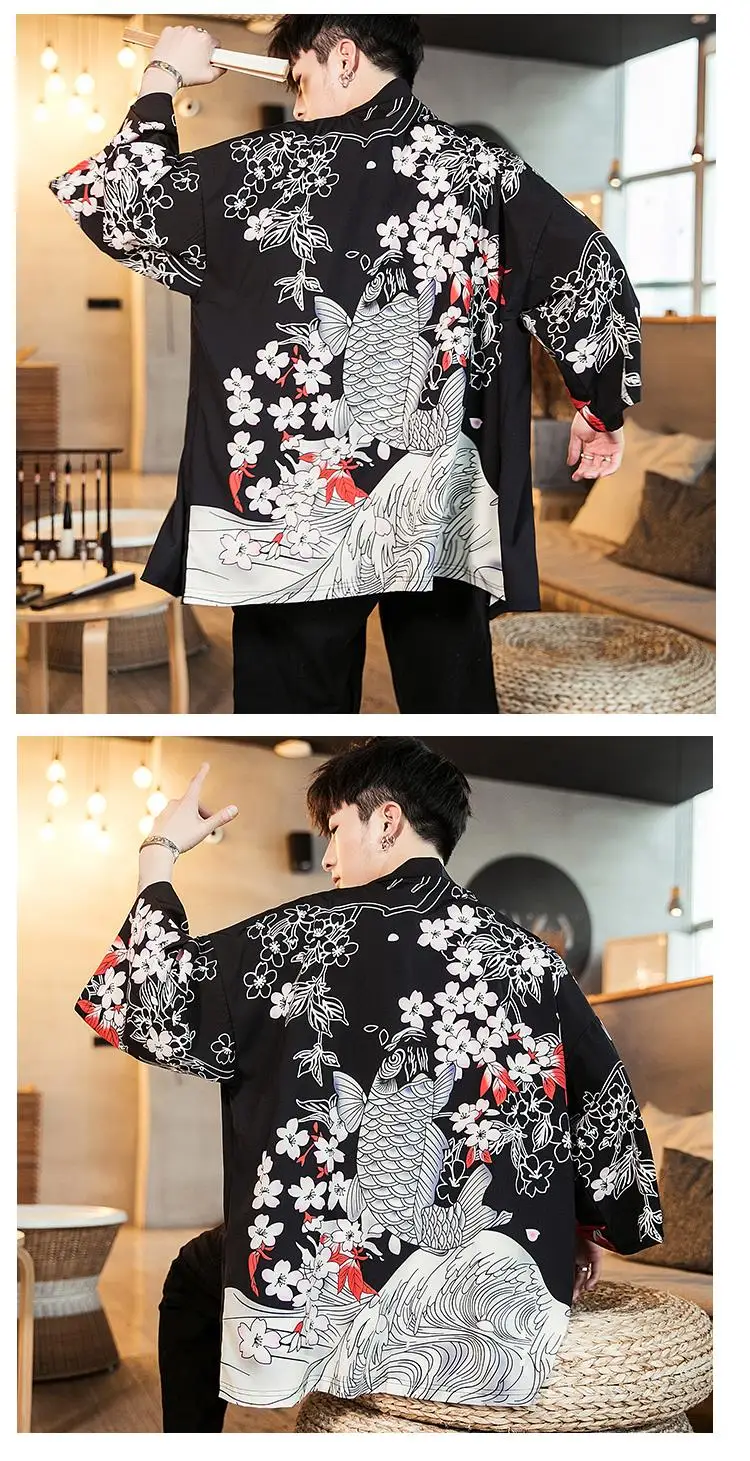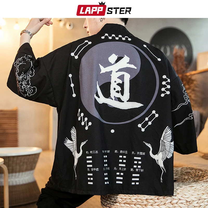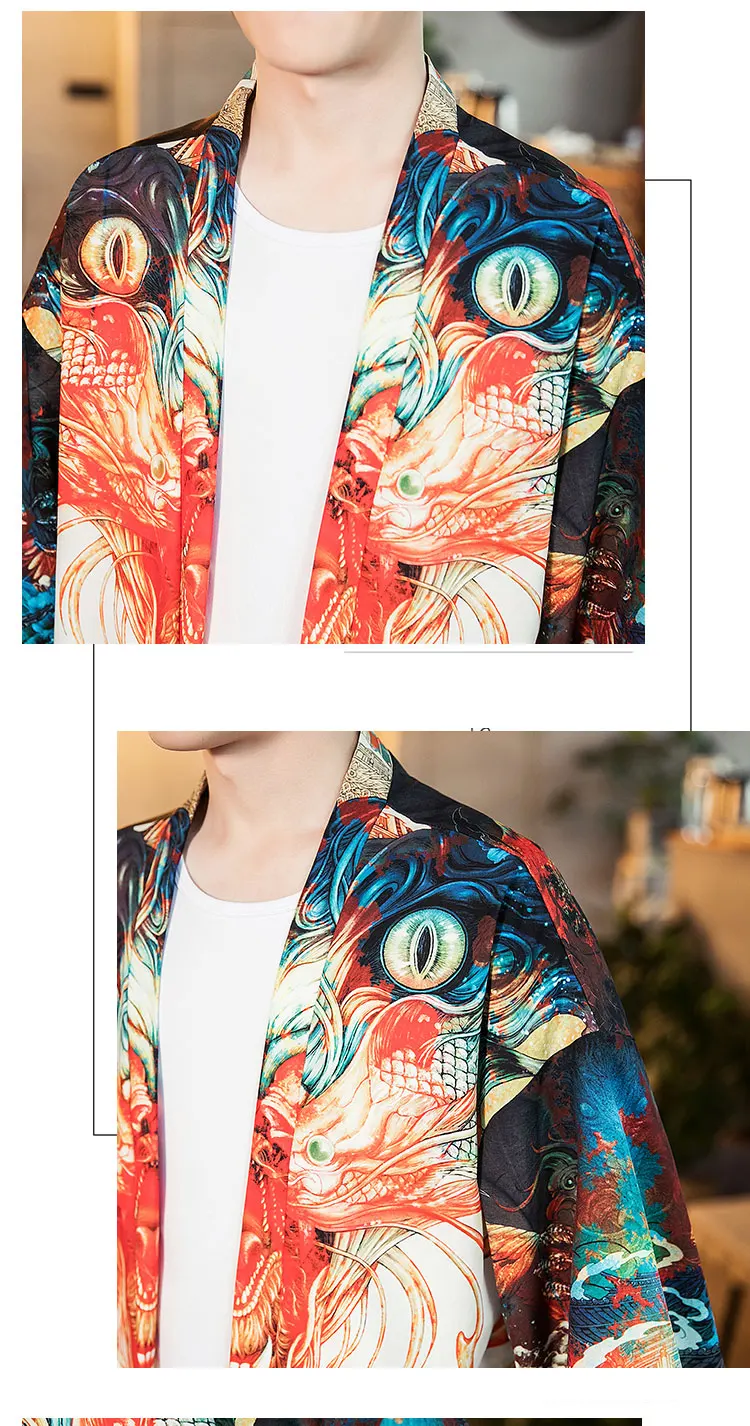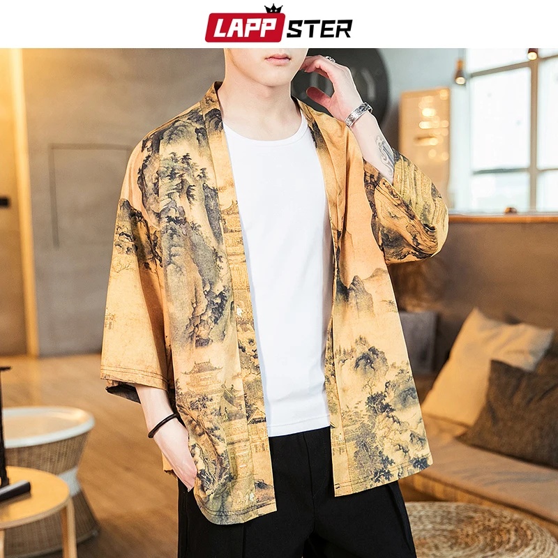 LAPPSTER Summer Kimono Jacket Fish 2023 Men Colorful Japanese Streetwear Wind Breaker Hip Hop Cardigan Spring Jacket Open Stitch