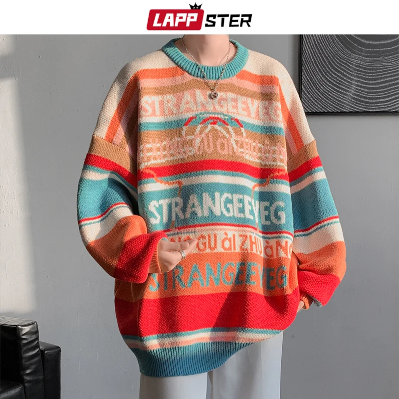 LAPPSTER Winter Designer Korean Fashions Striped Sweaters Y2k Streetwear Oversized Pullovers Harajuku Vintage Luxury Sweater