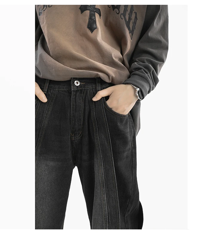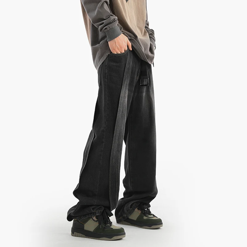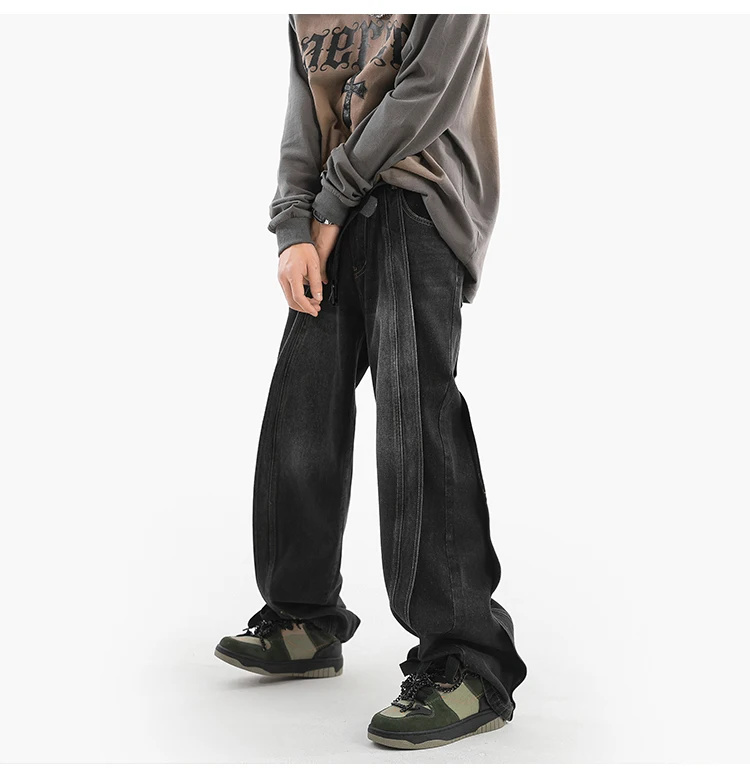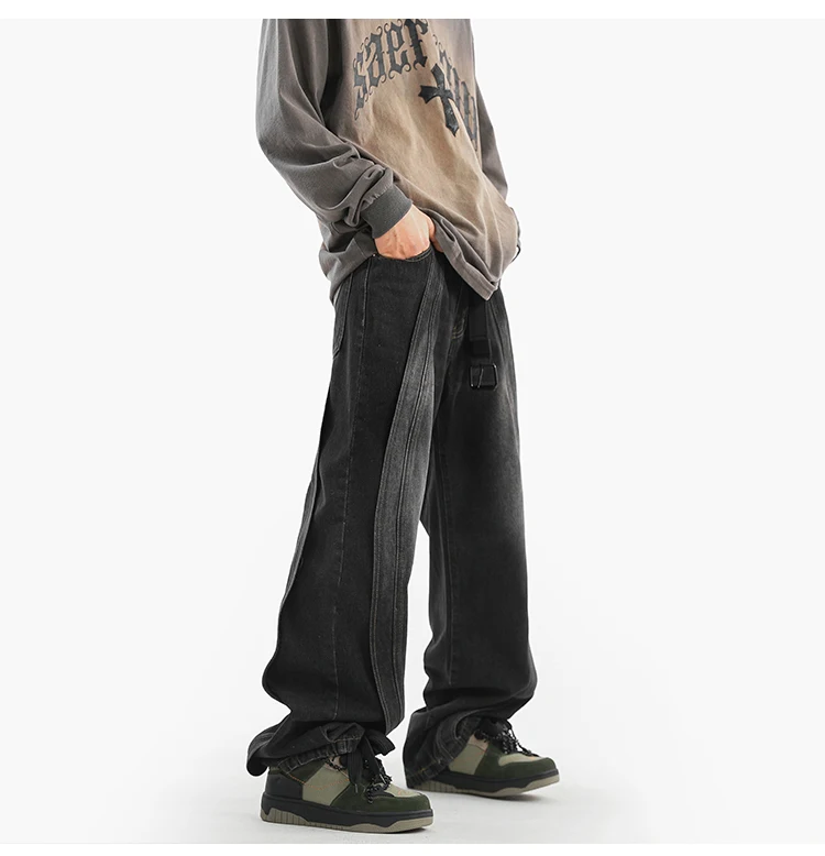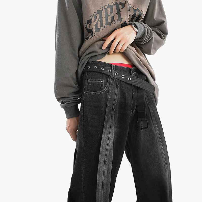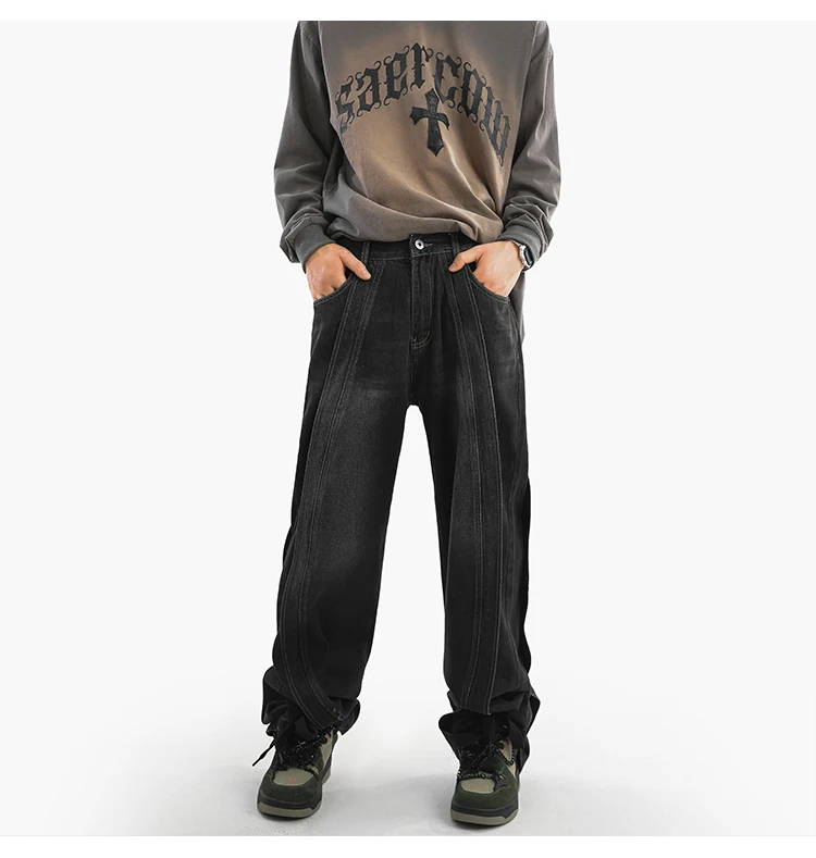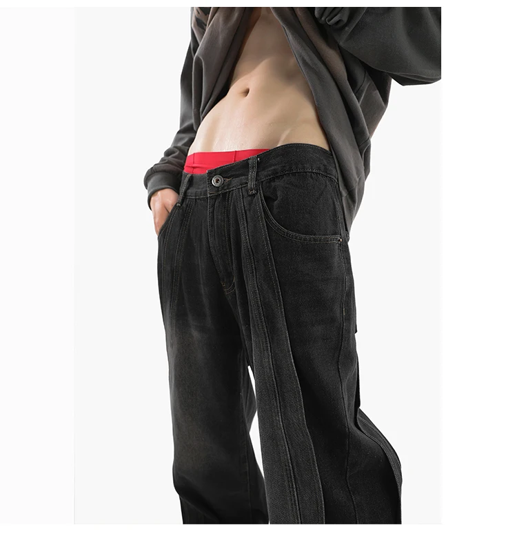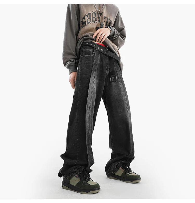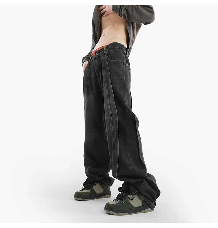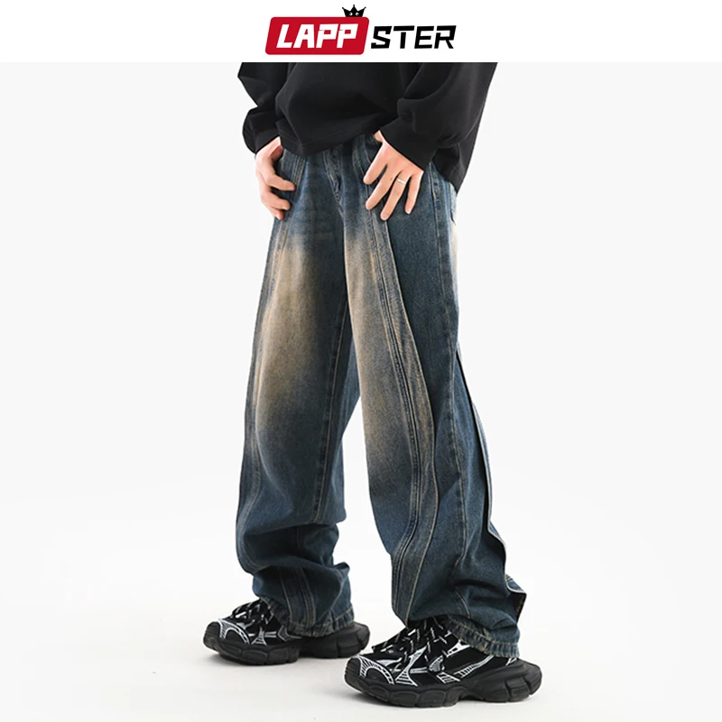 LAPPSTER Y2k Patchwork Black Stacked Jeans New Low Rise Korean Fashion Cargo Jeans Harajuku Streetwear Hip Hop Baggy Denim Pants