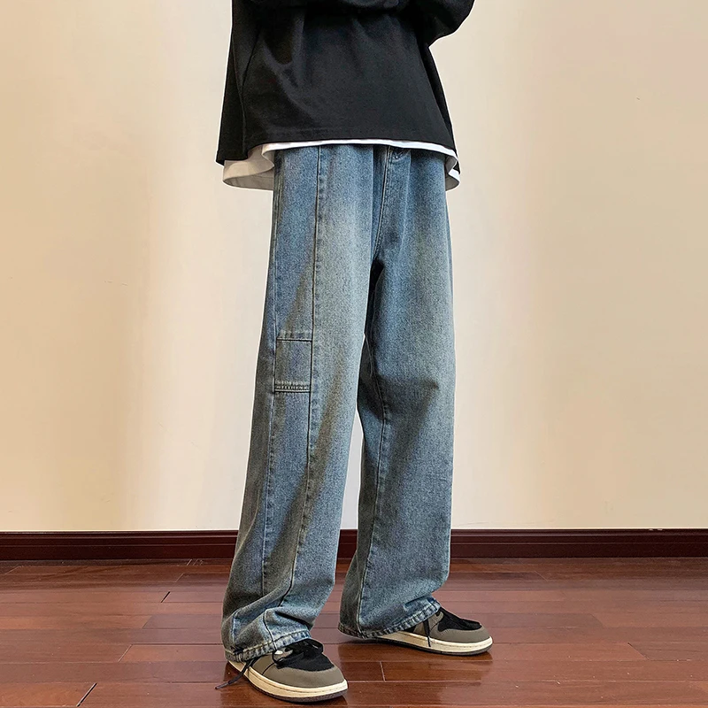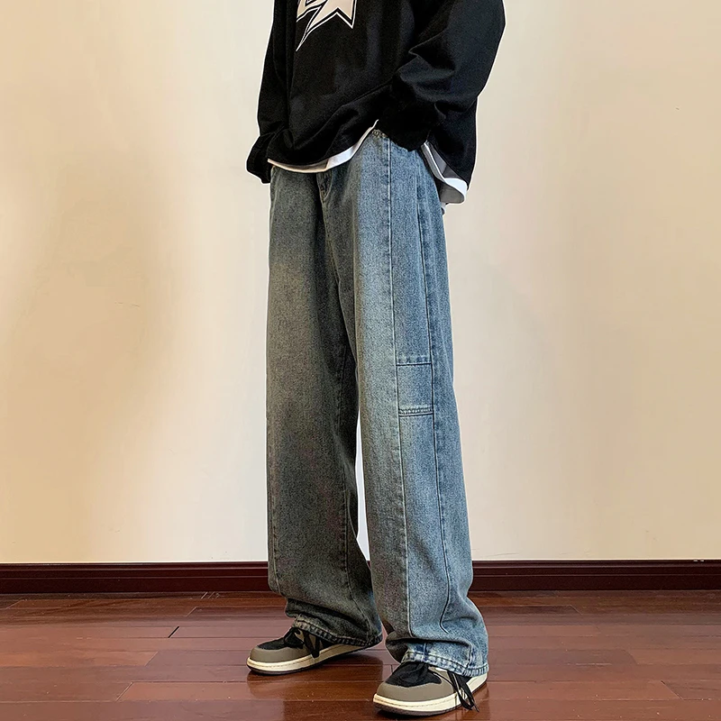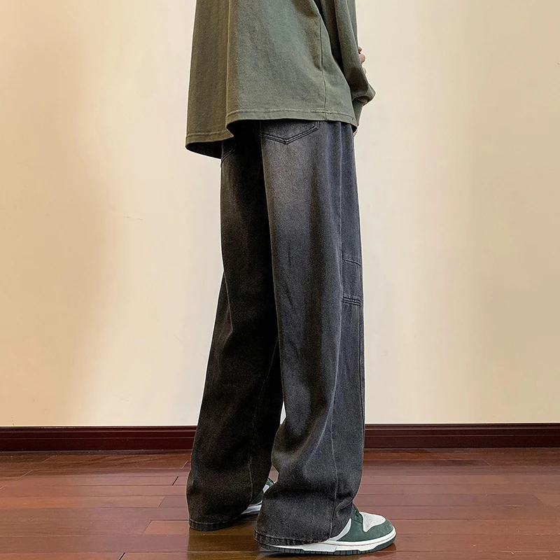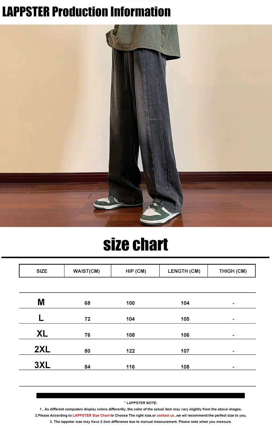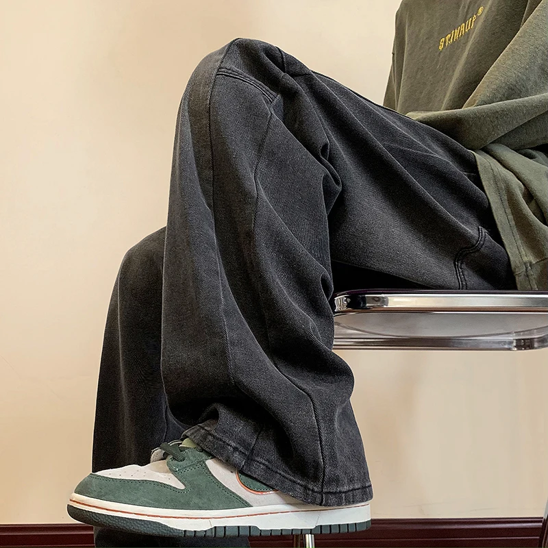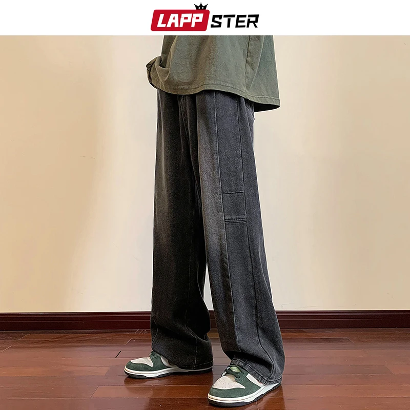 LAPPSTER Y2k Streetwear Jeans Pants 2023 Mens Black Hip Hop Baggy Stacked Jeans Male Korean Wide Leg Straight Denim Pants Ins