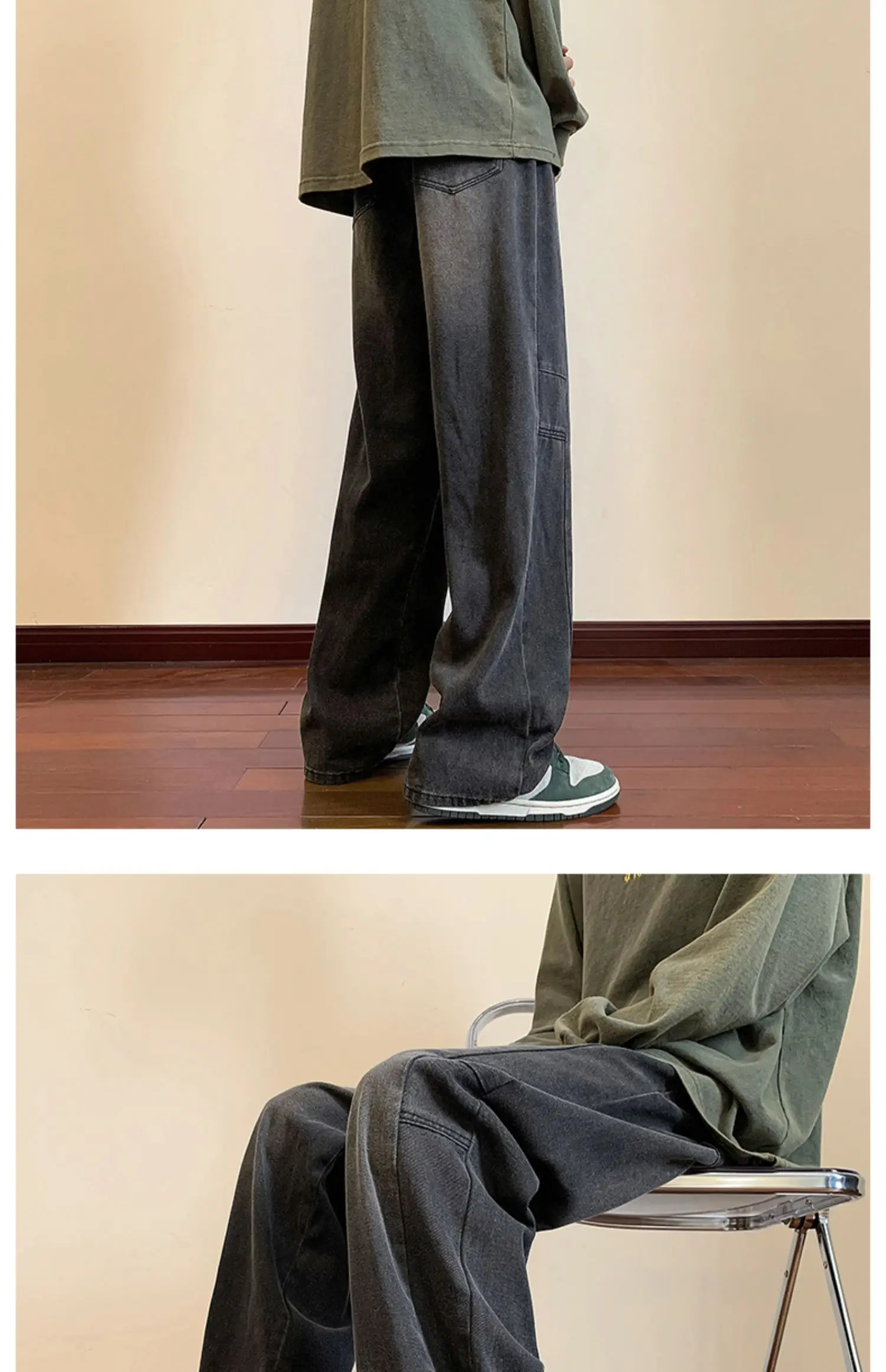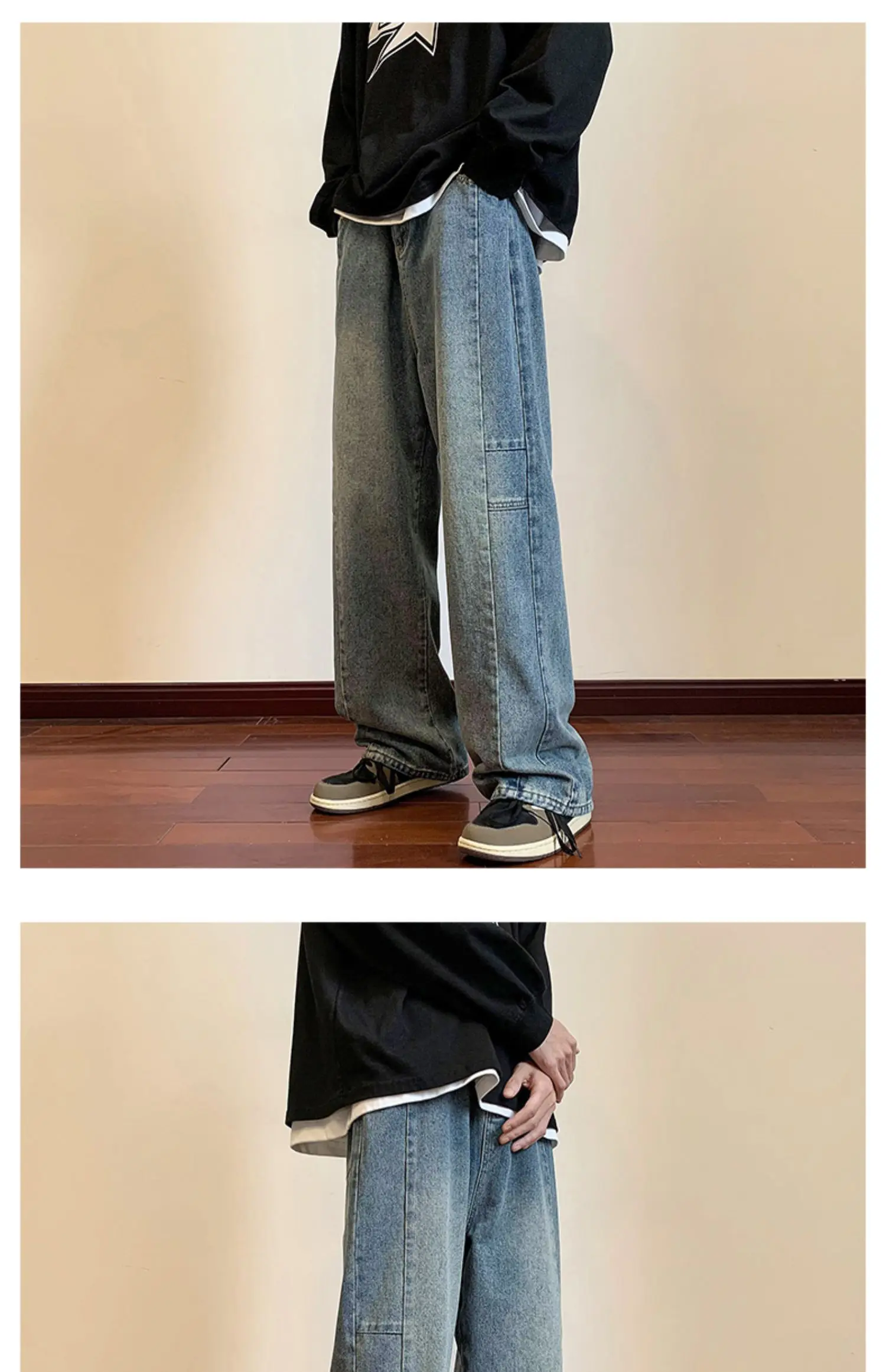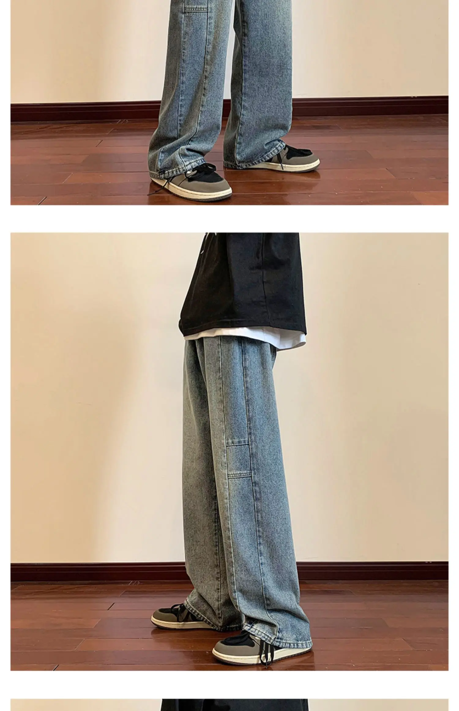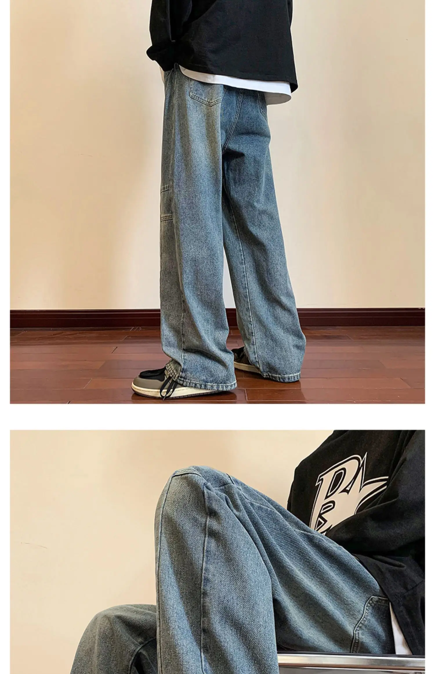 LAPPSTER Y2k Streetwear Jeans Pants 2023 Mens Black Hip Hop Baggy Stacked Jeans Male Korean Wide Leg Straight Denim Pants Ins