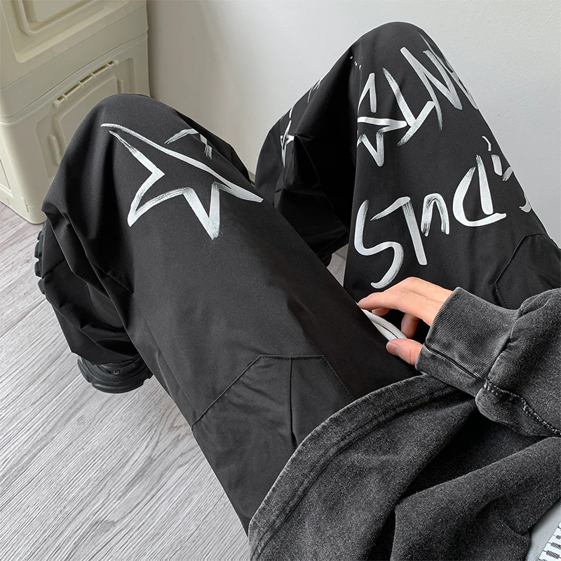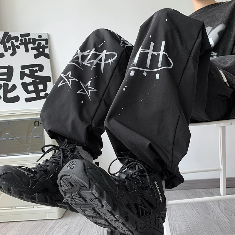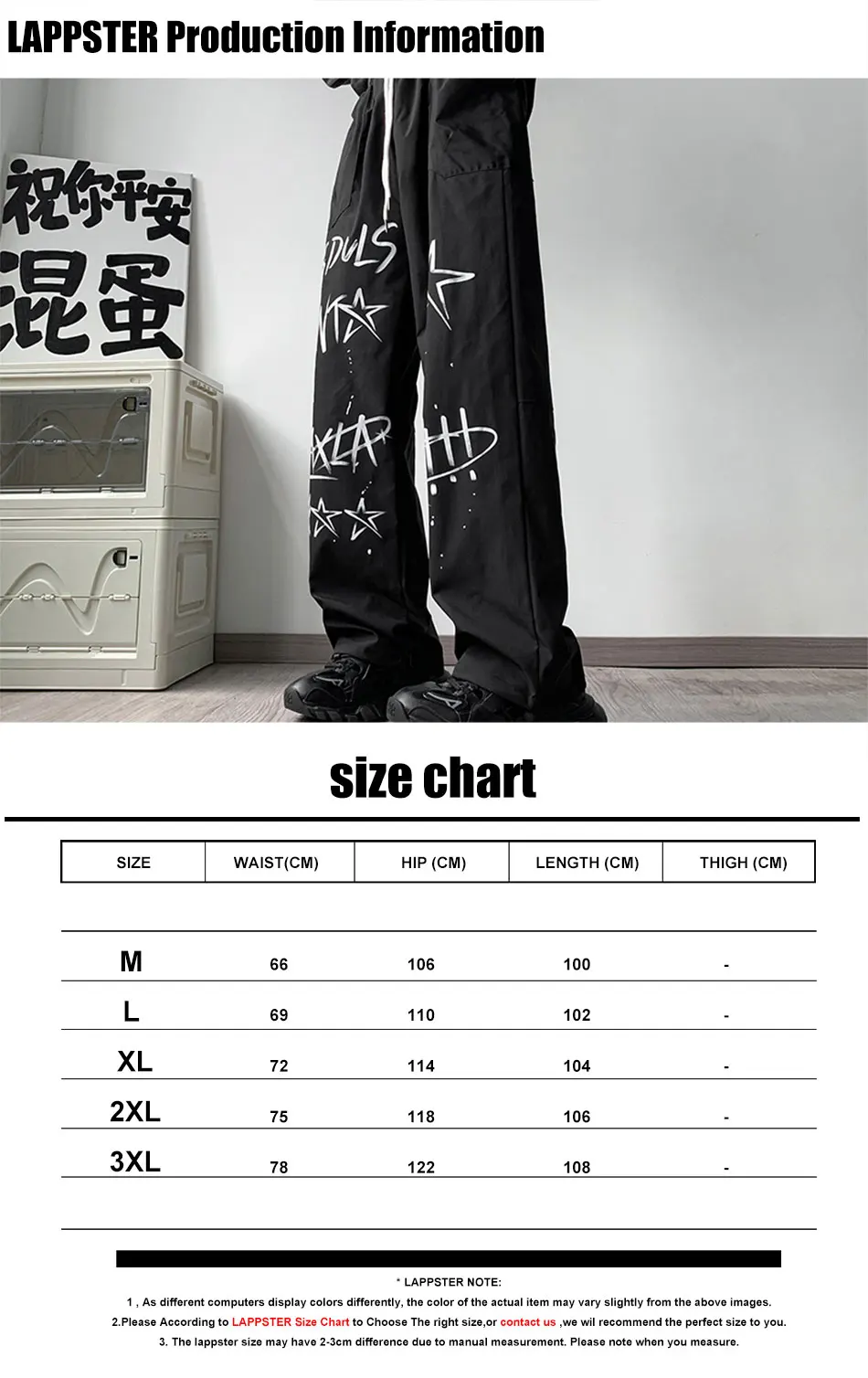 LAPPSTER Y2k Streetwear Letter Joggers Pants Black Hip Hop Korean Fashions Baggy Sweatpants Casual Vintage Wide Leg Harem Pants