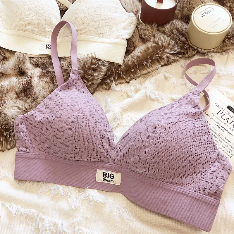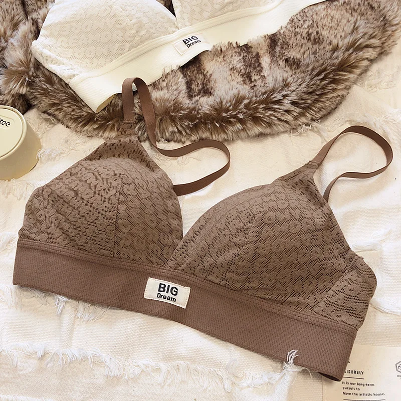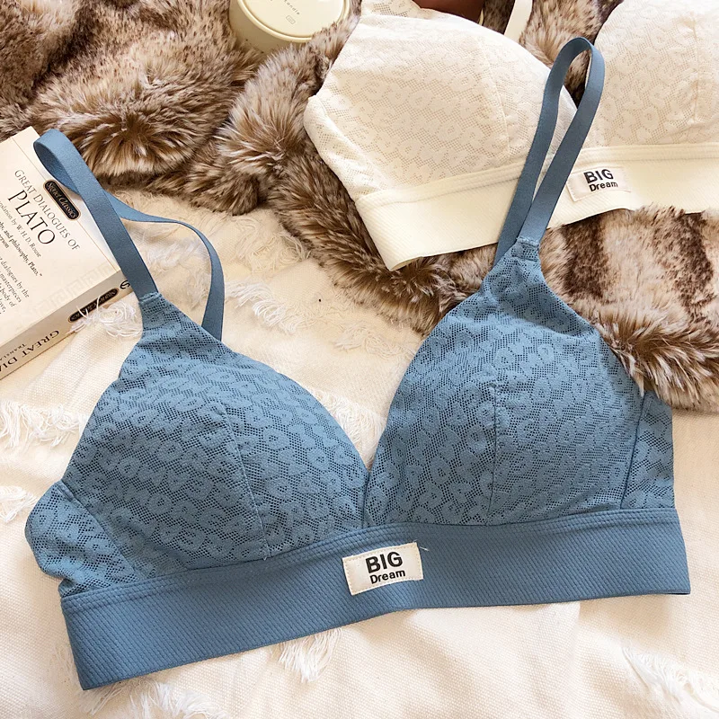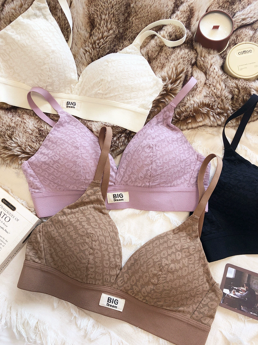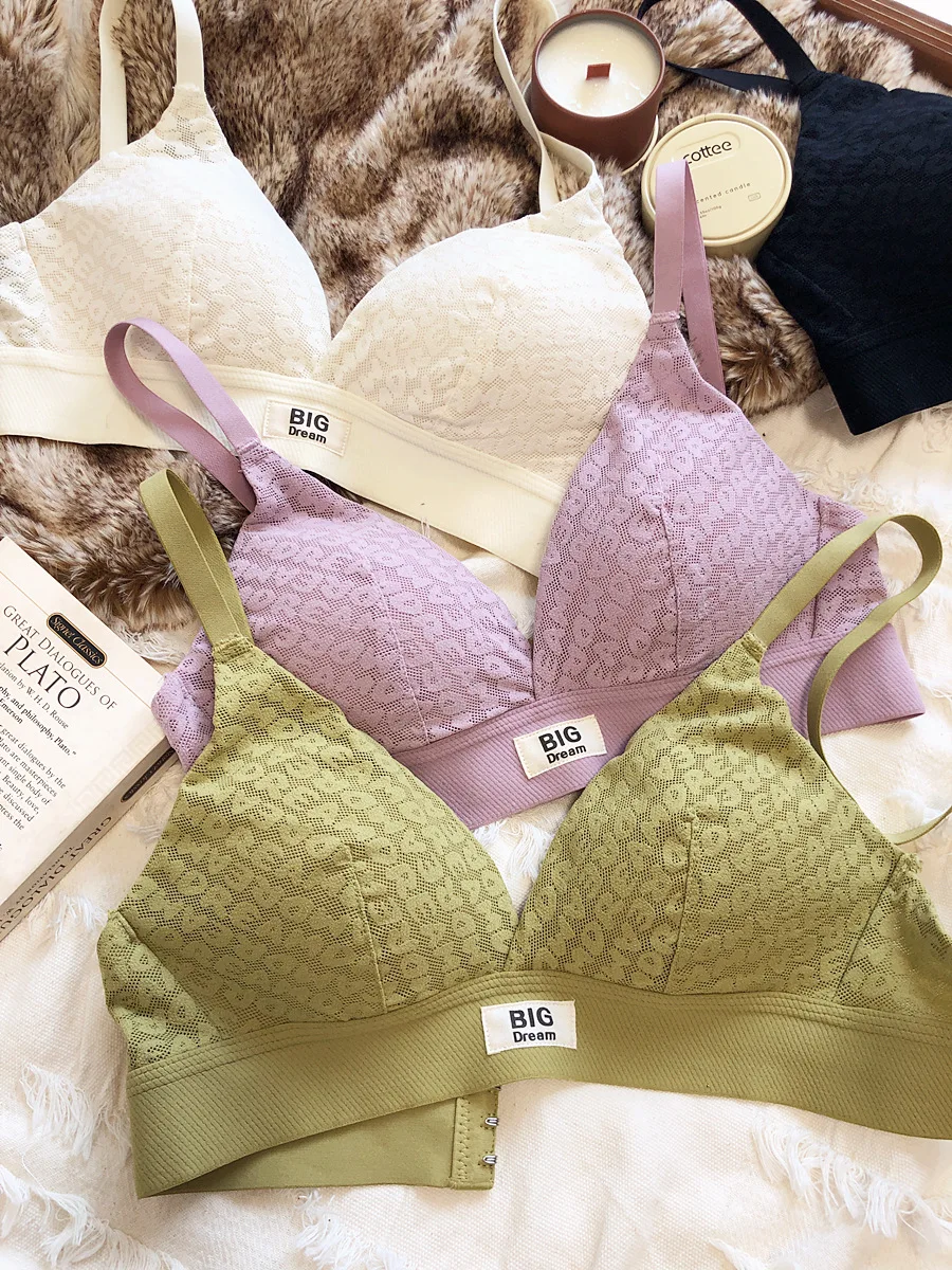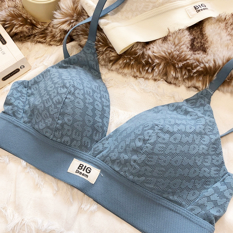 Large underwear letter pattern lingerie simple and comfortable mesh thin bra without steel ring triangle cup girls bras