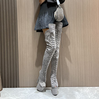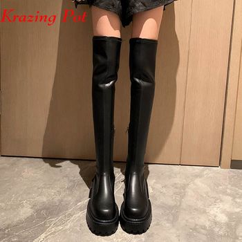 Latex Extreme High Heels Sexy Fetish Boots Black Platform Knee High Booties Round Toe Nice Black Party Shoes Women US Size 5-15
